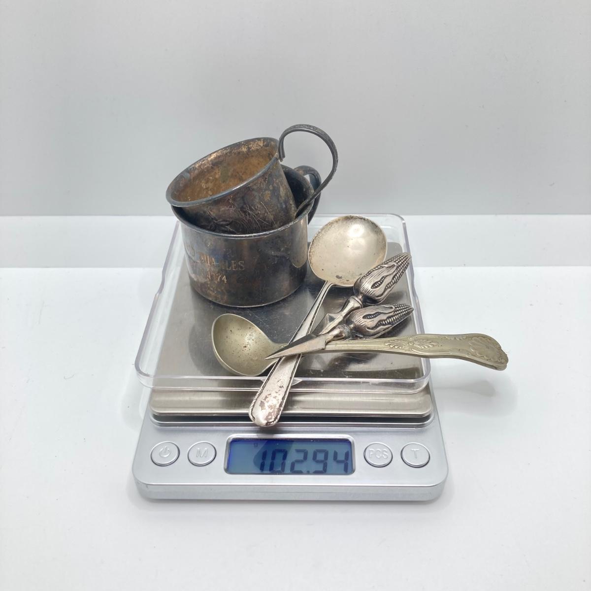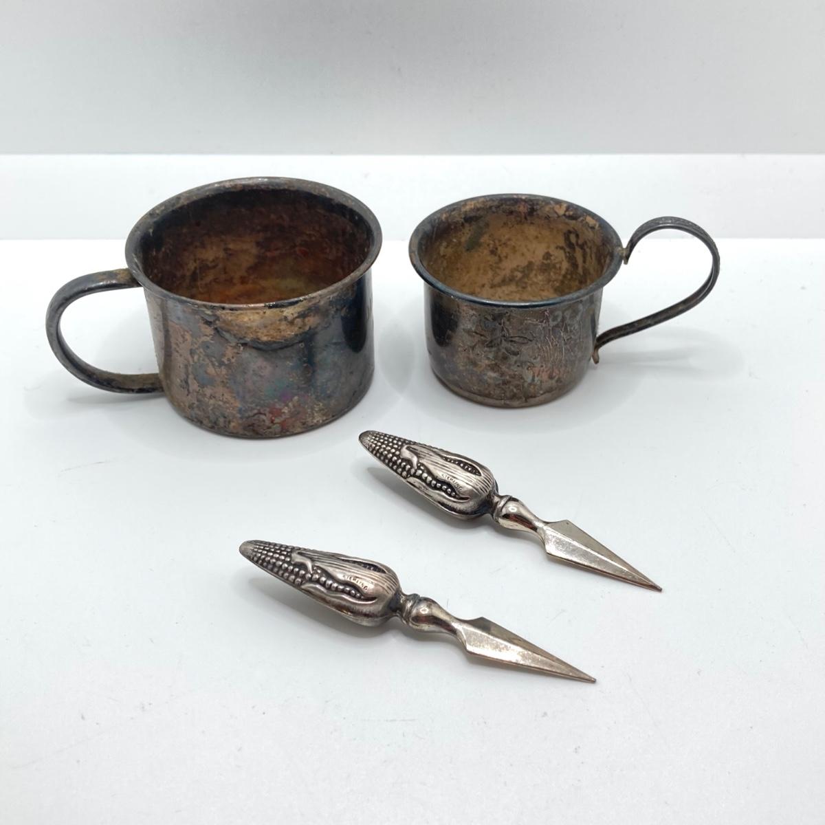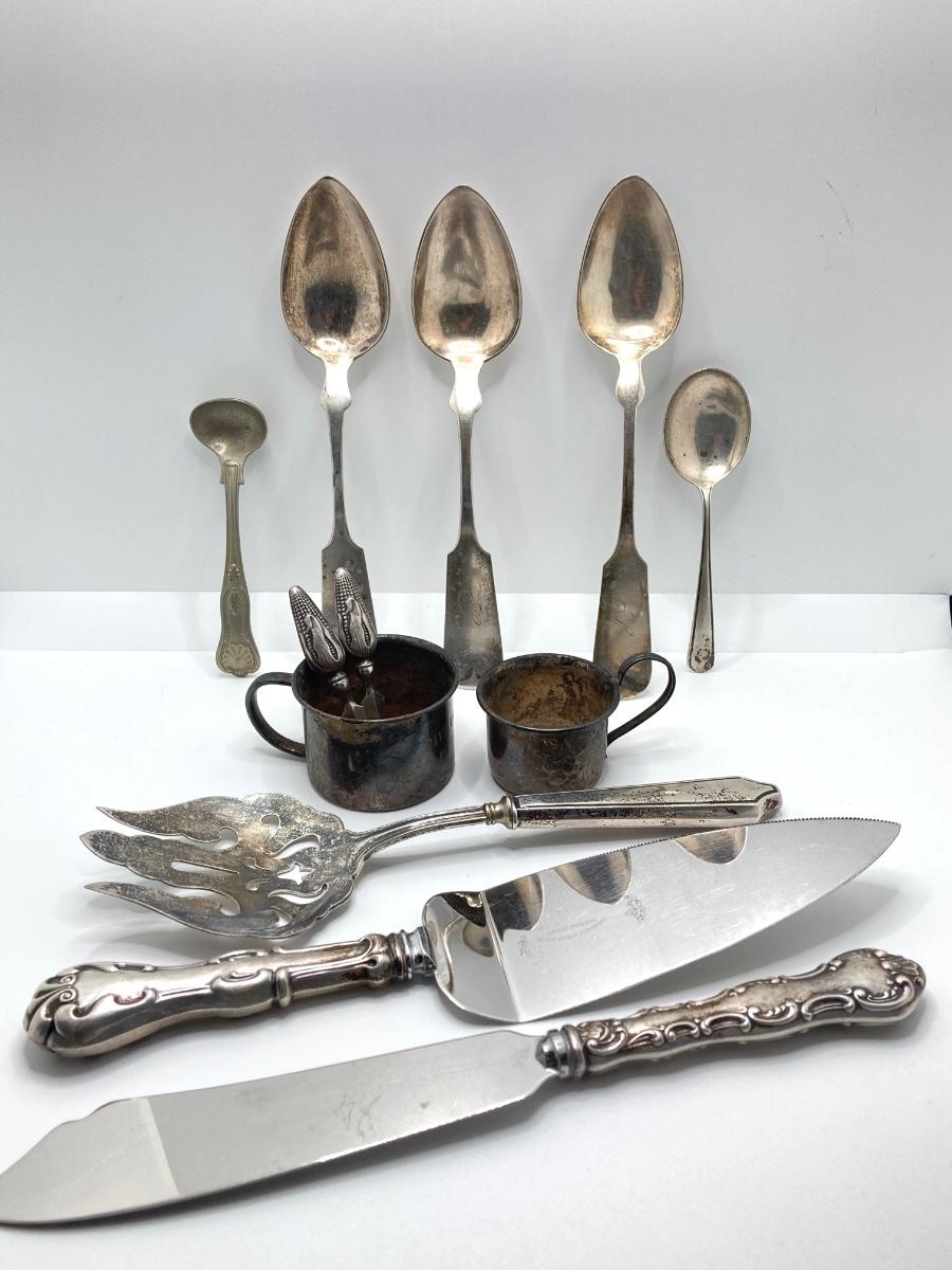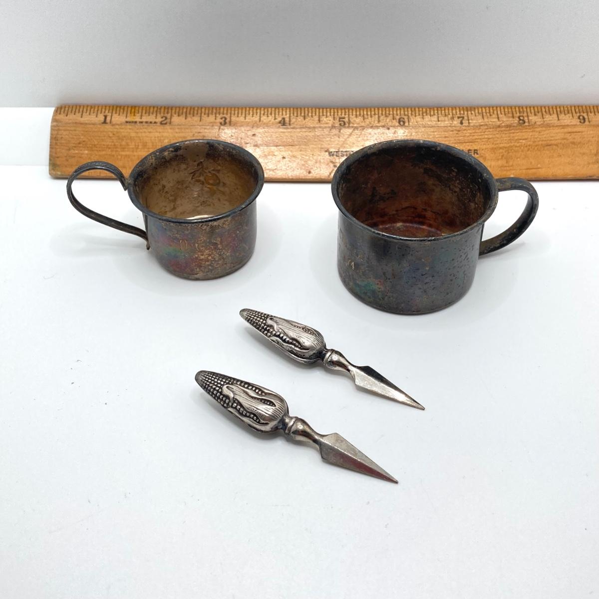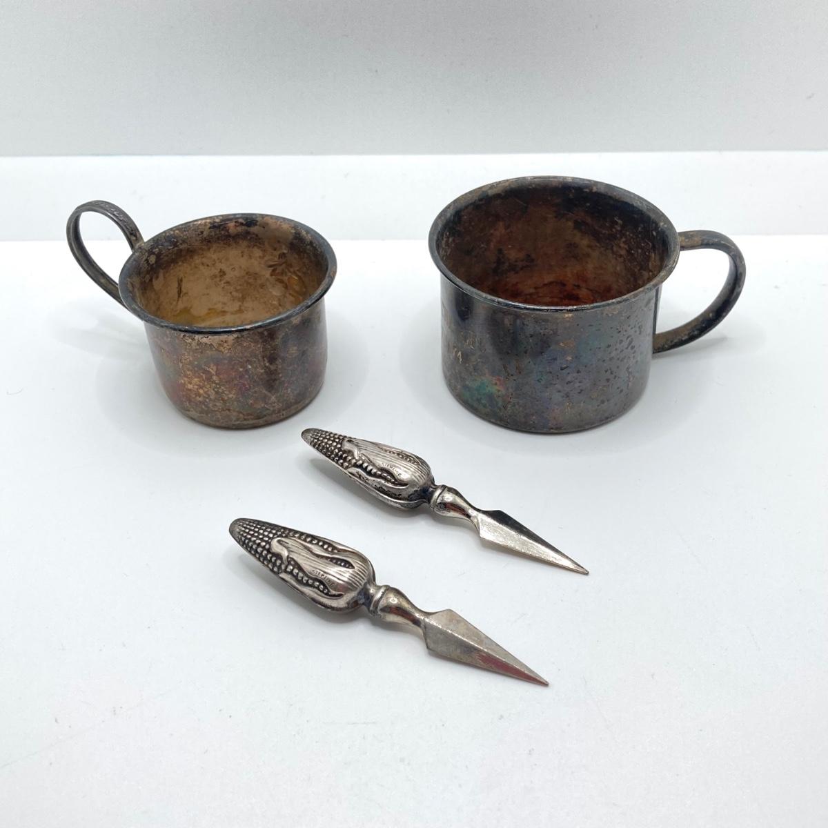 LOT 182: Large Collection of Vintage Sterling - Children's Cups, Spoons, Corn Cob Holders and Sterling Handled Serving Utensils
