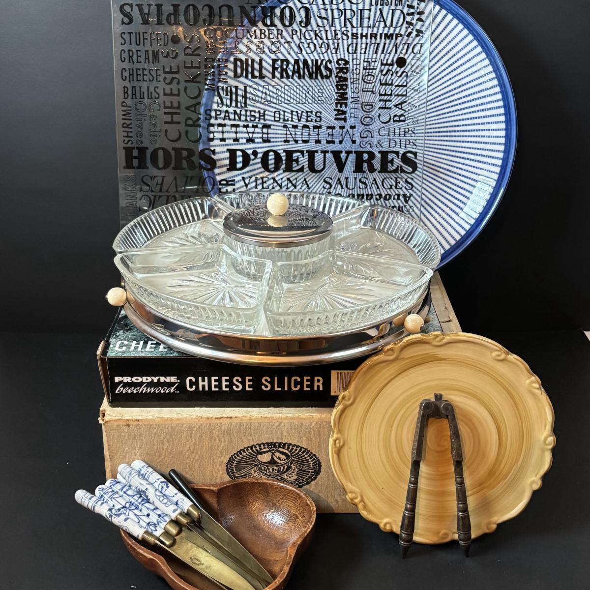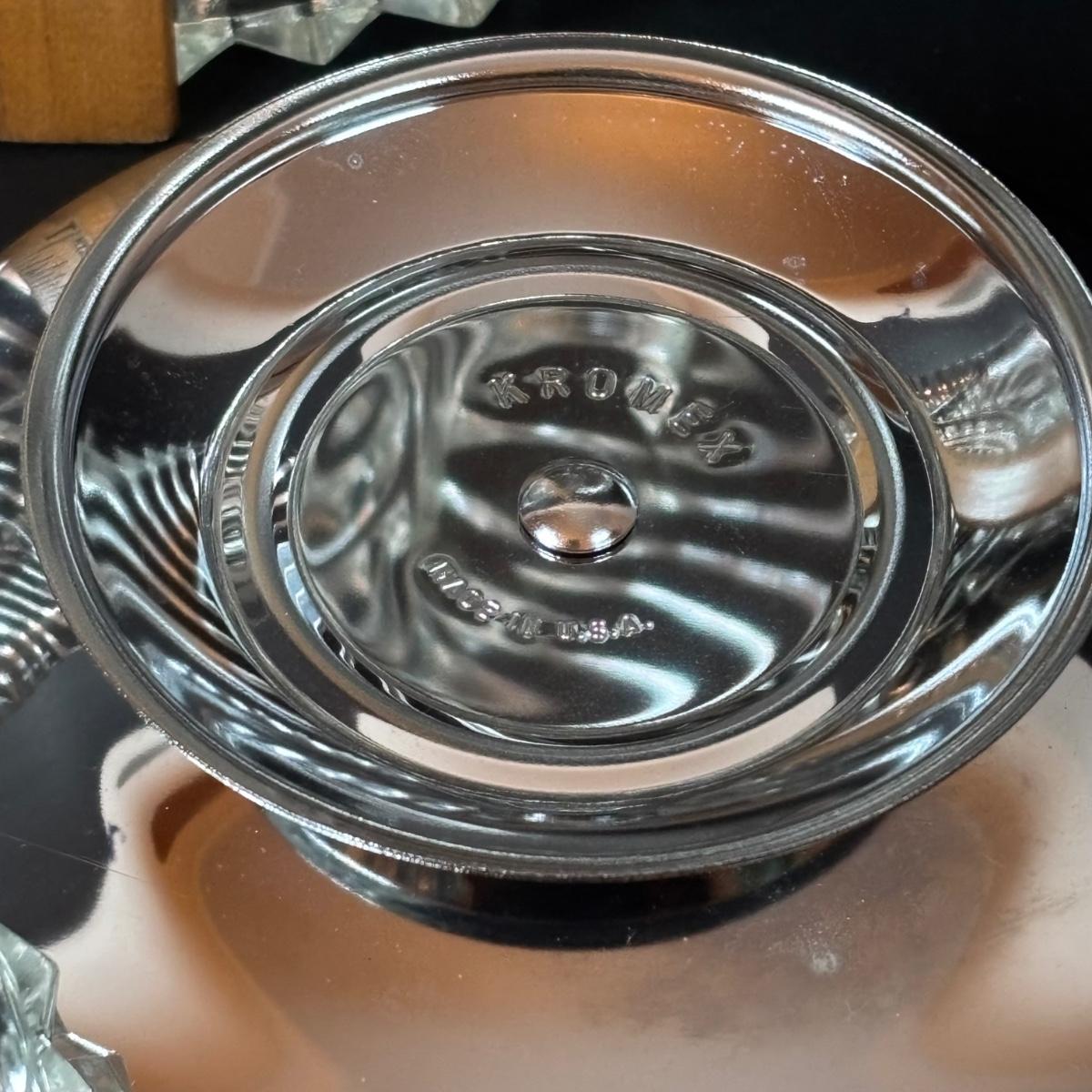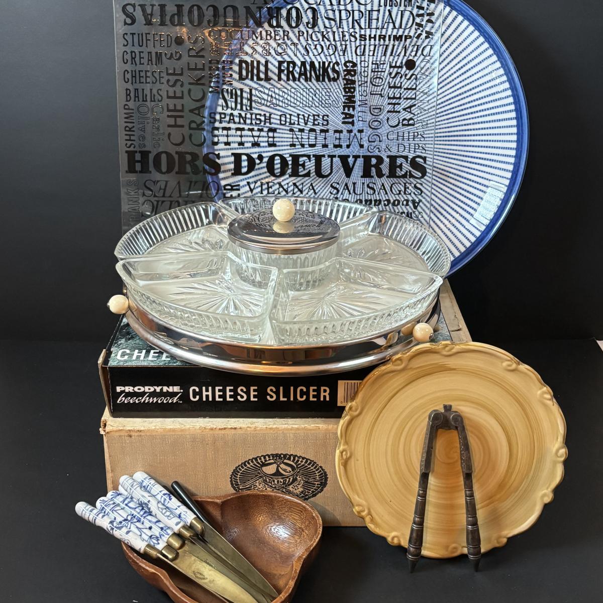 LOT 195: MCM Lazy Susans (1 Kromex), Bronze & Porcelain Fruit Knives, Germany, Antique Nutcracker & More