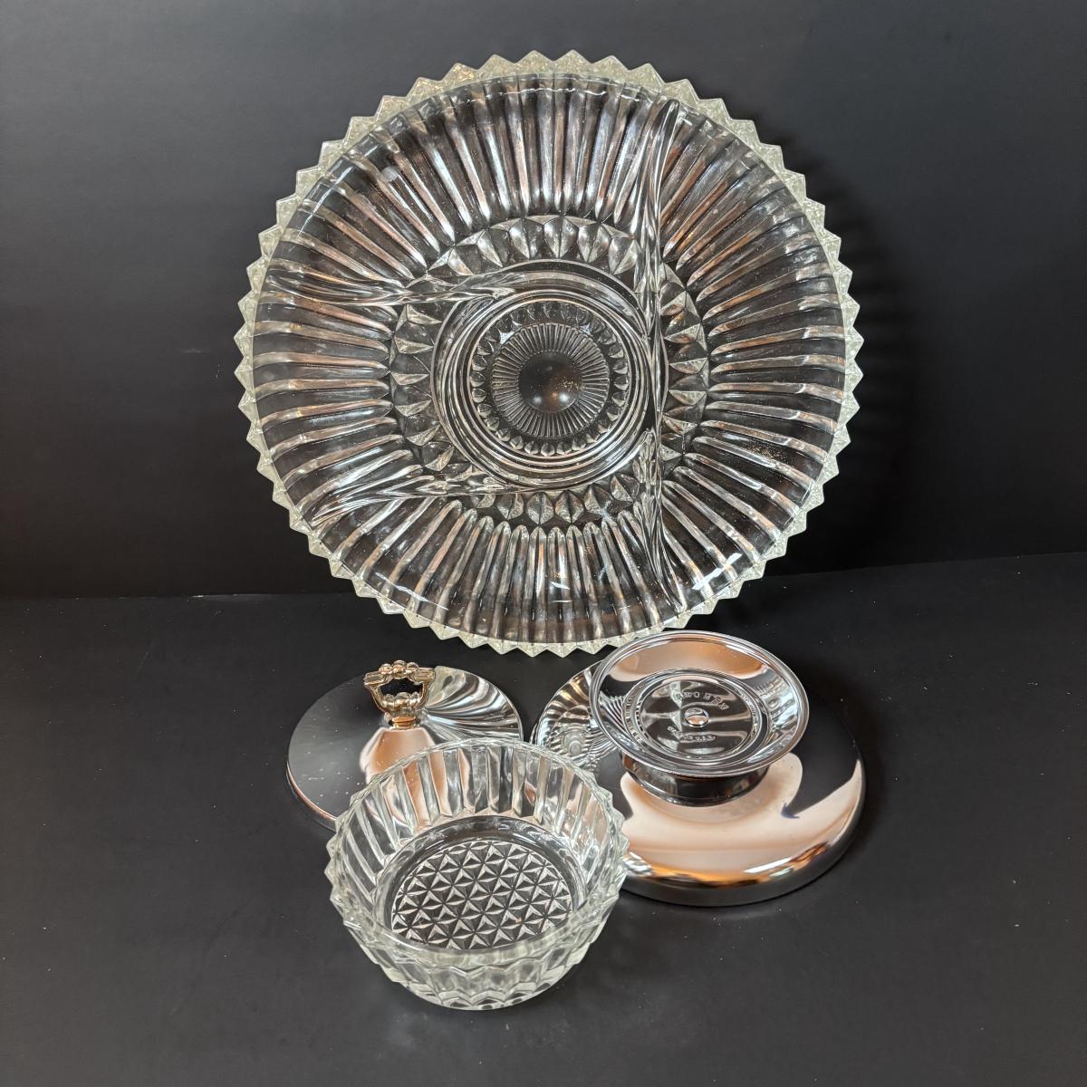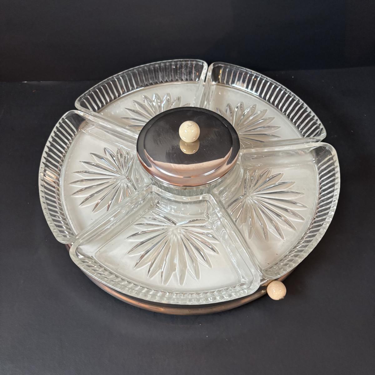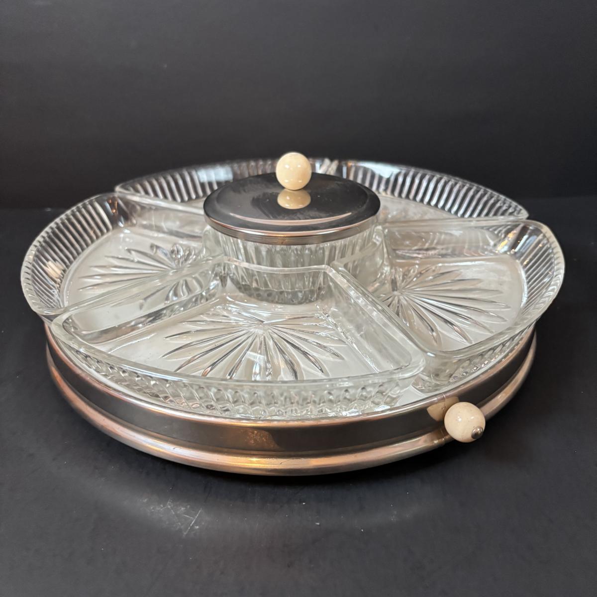 LOT 195: MCM Lazy Susans (1 Kromex), Bronze & Porcelain Fruit Knives, Germany, Antique Nutcracker & More