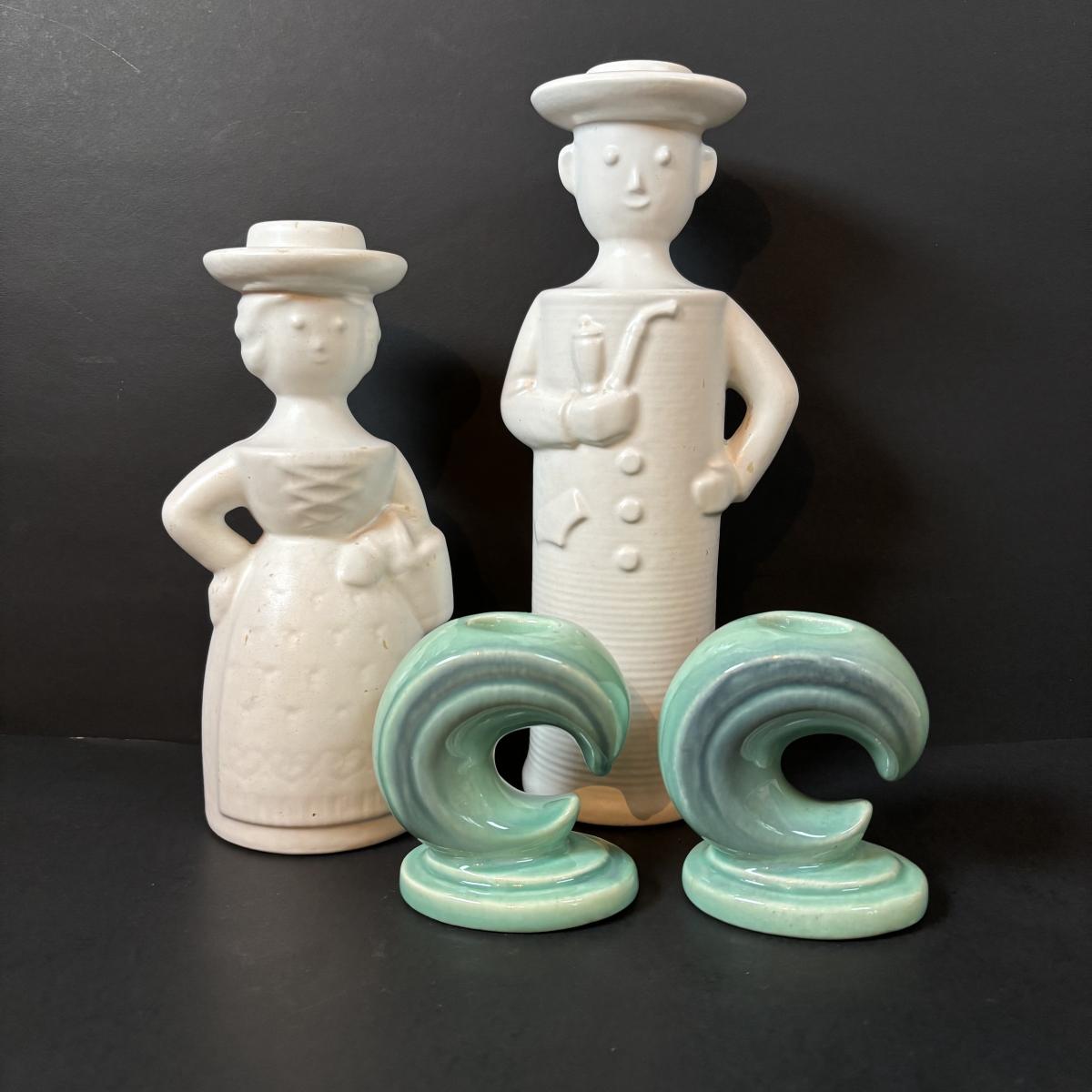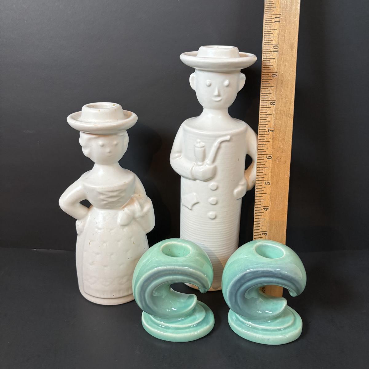 LOT 197: Steuler Keramik Art Pottery Figural Candle Holders & Haeger Style Ceramic Candle Holders