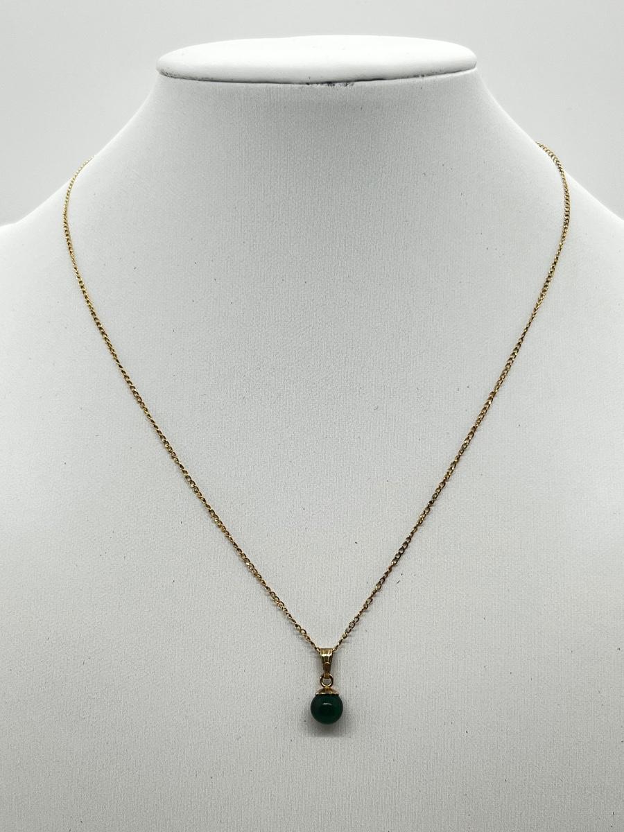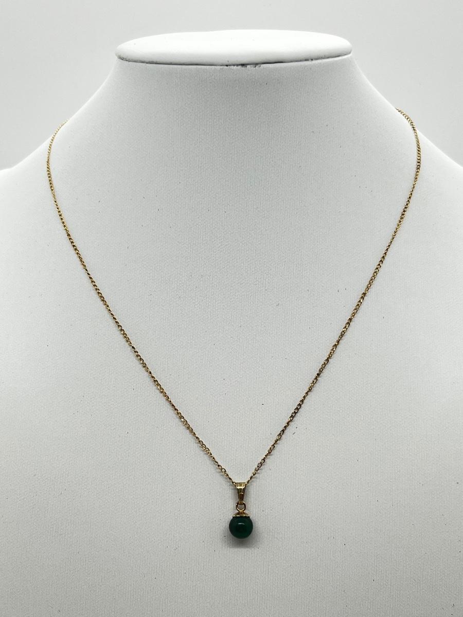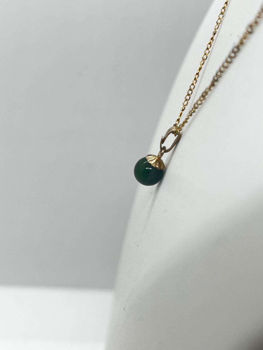 LOT 20: Gold Filled Fine Chain and Jade Drop Pendant Necklace - 1/20 12K Gold Filled