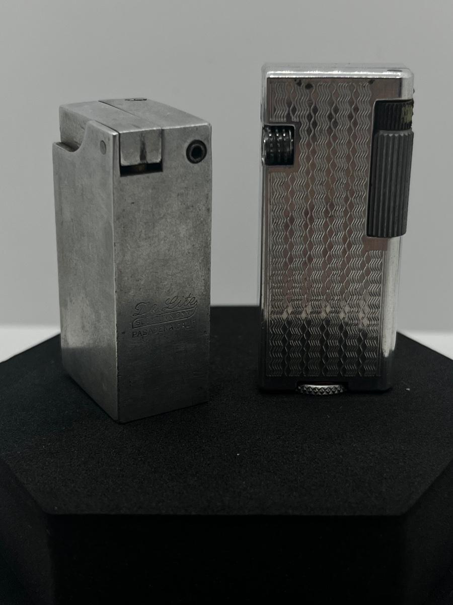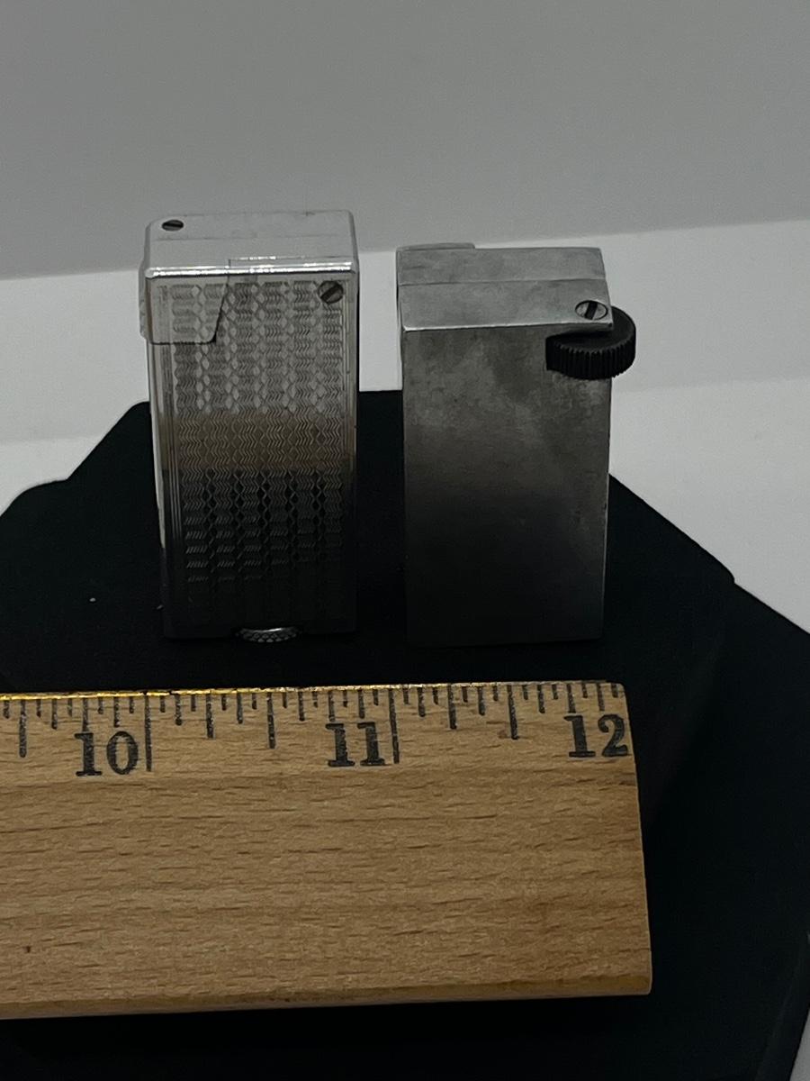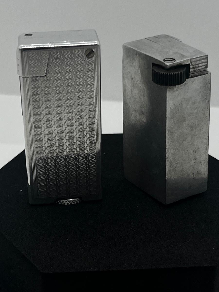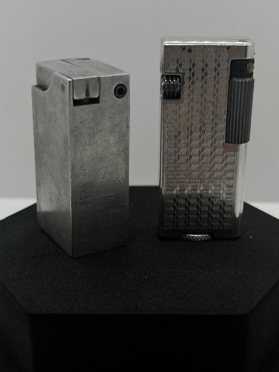 LOT 31: 1950's Japan Textured Aluminum Block Lighter and WWII Era Aluminum De-Lite Block Lift Arm Lighter