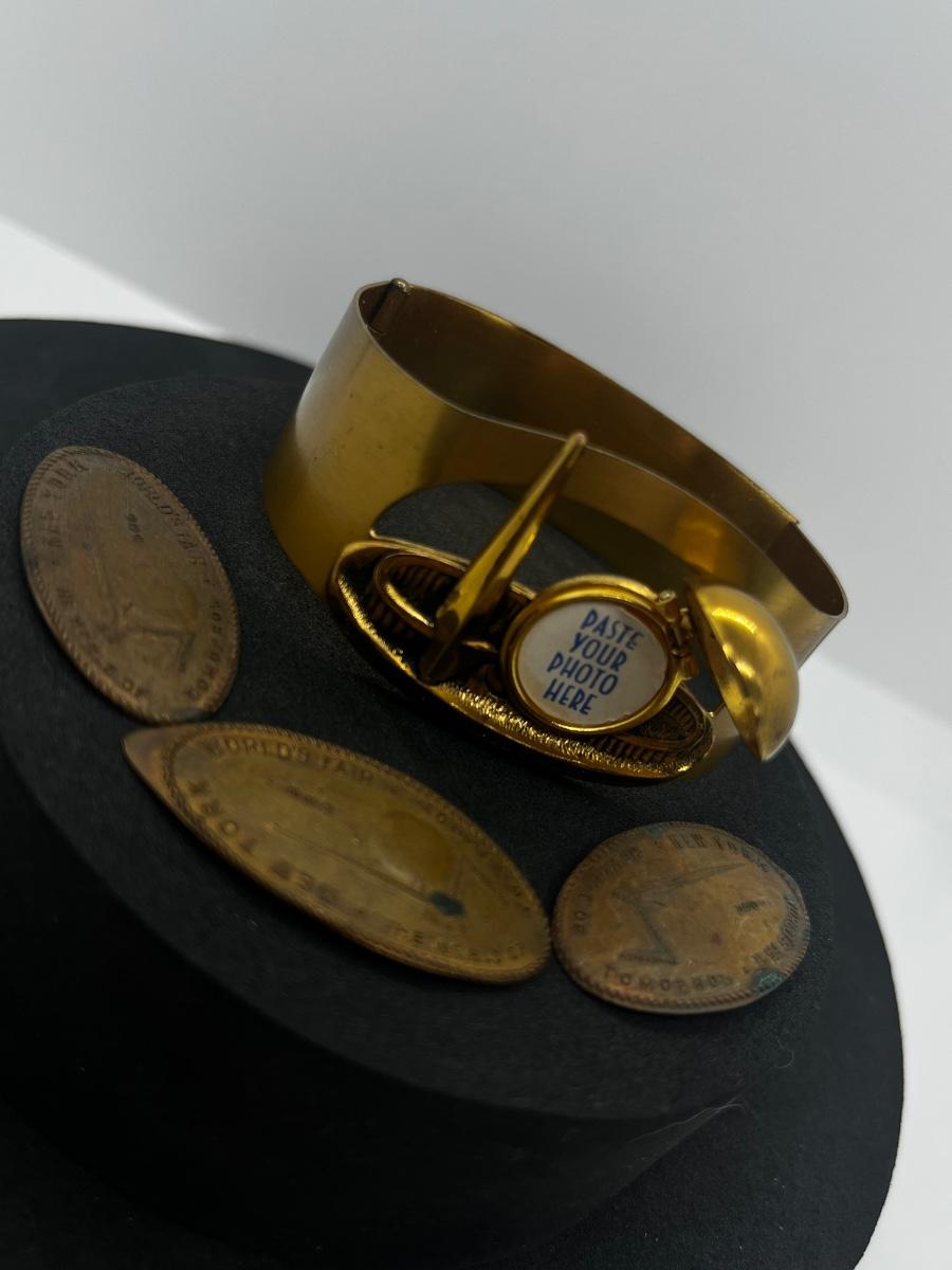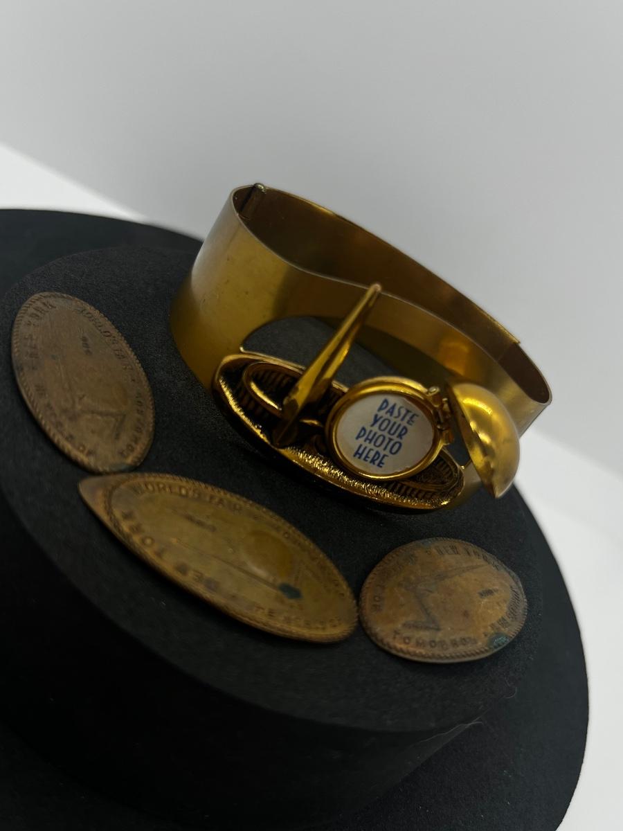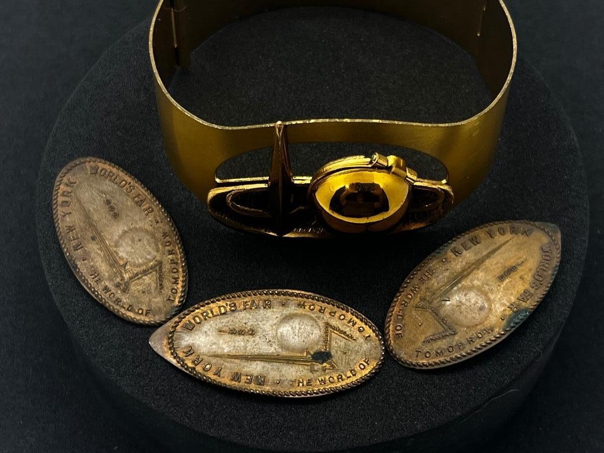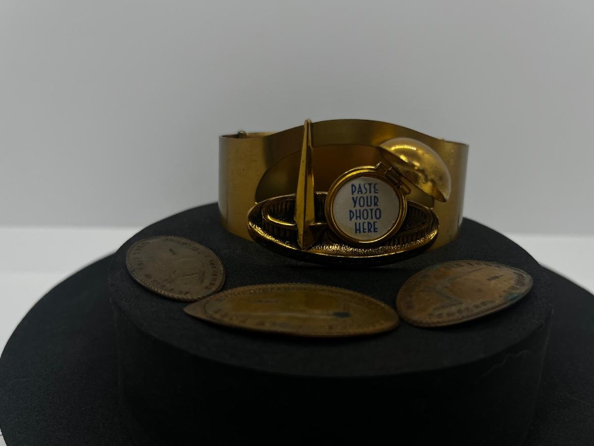 LOT 33: New York World's Fair Lot: Cuff Photo Bracelet and Pressed Pennies