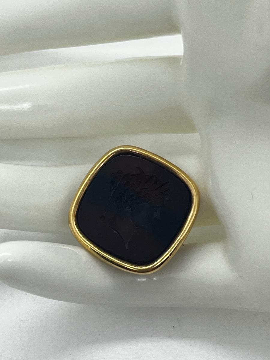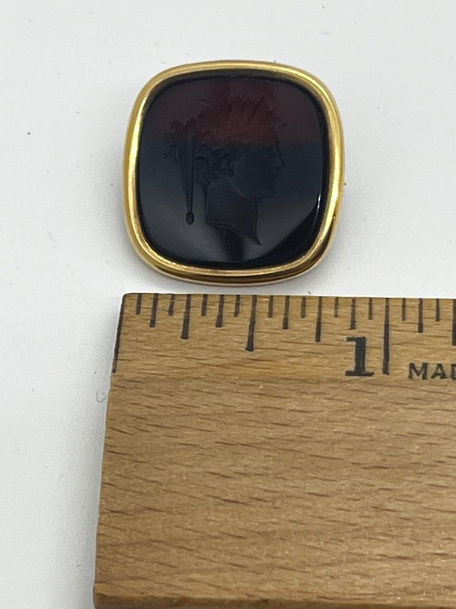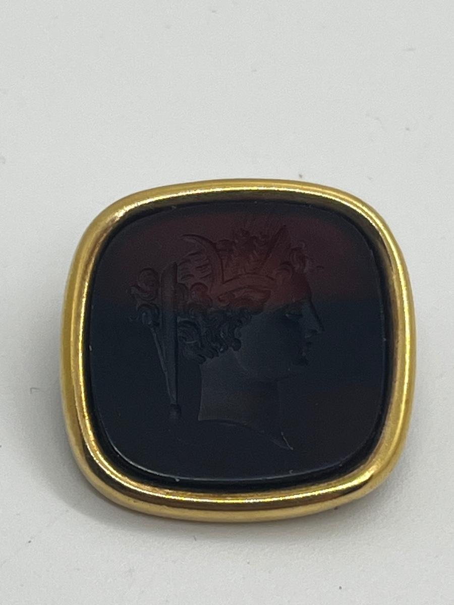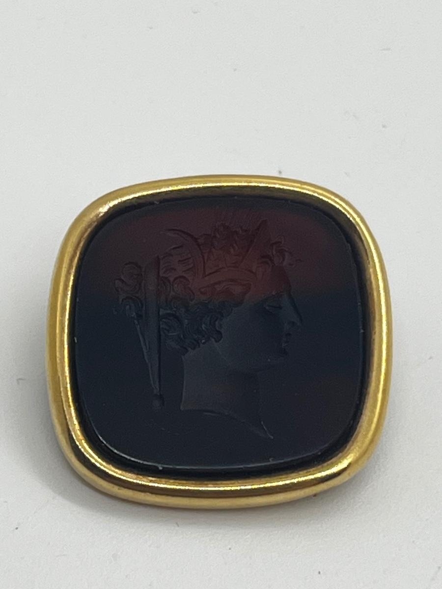 LOT 41: 10K Yellow Gold Antique Carnelian Itaglio of Athena Pin - 4.6 GTW
