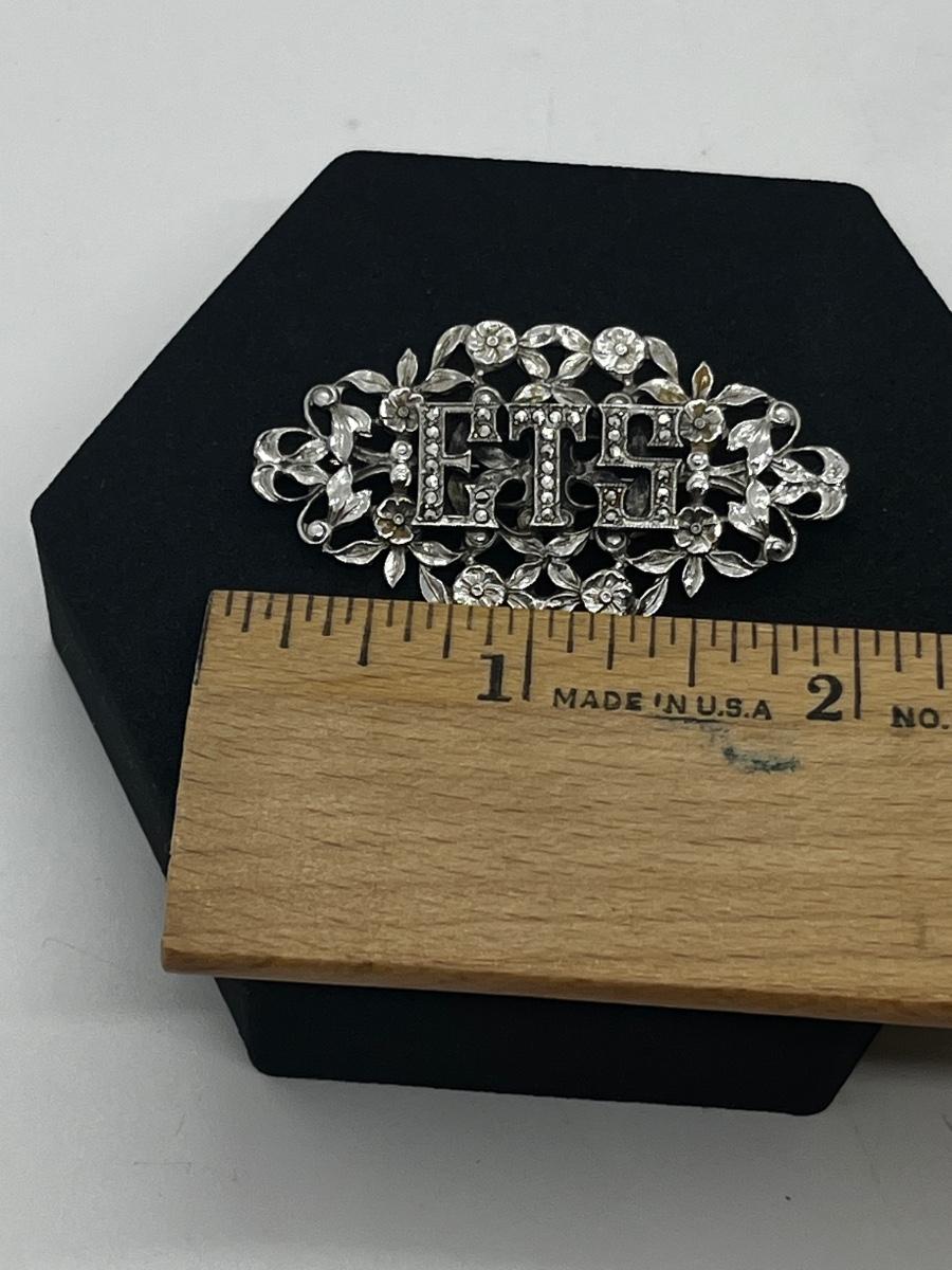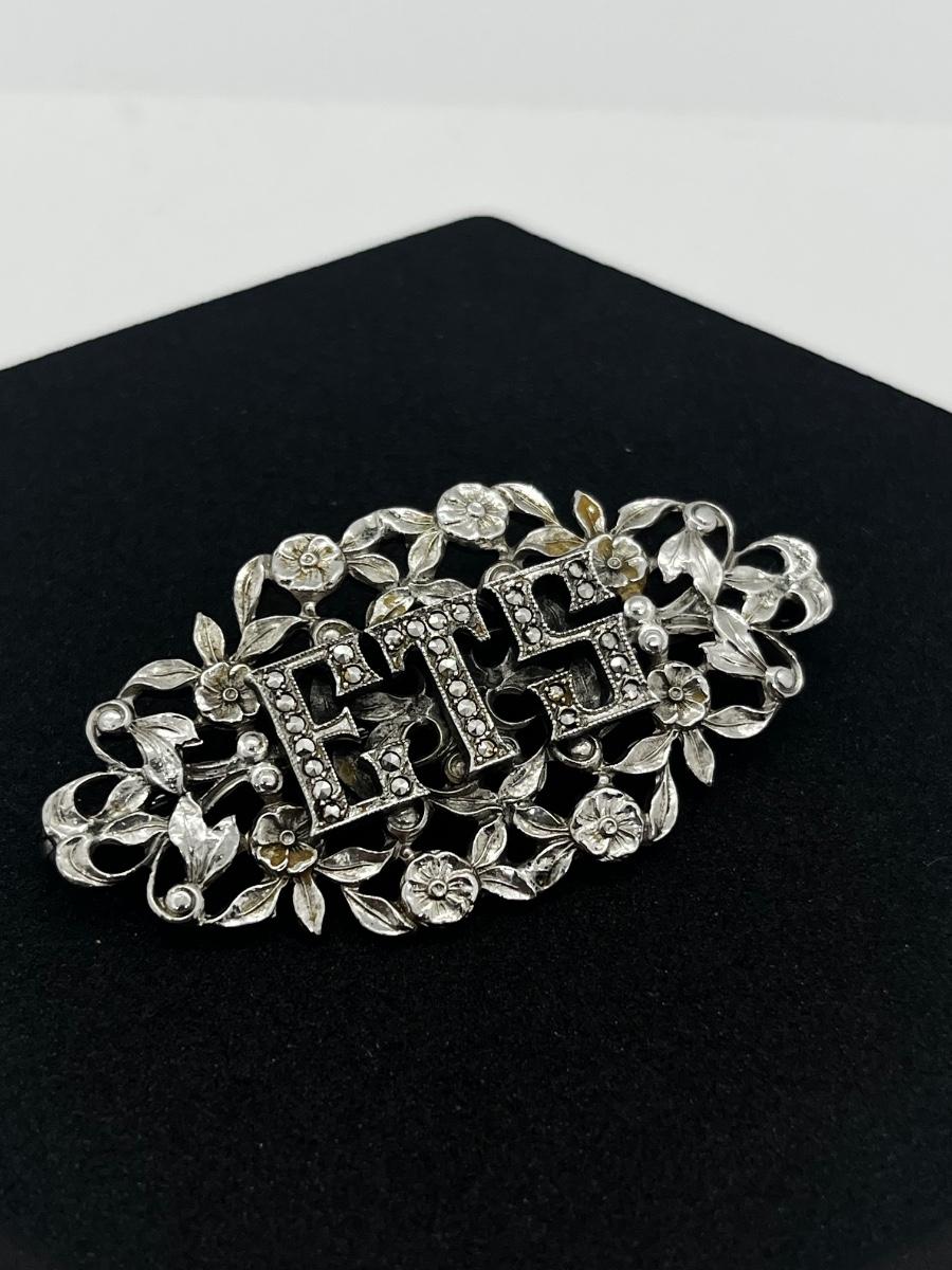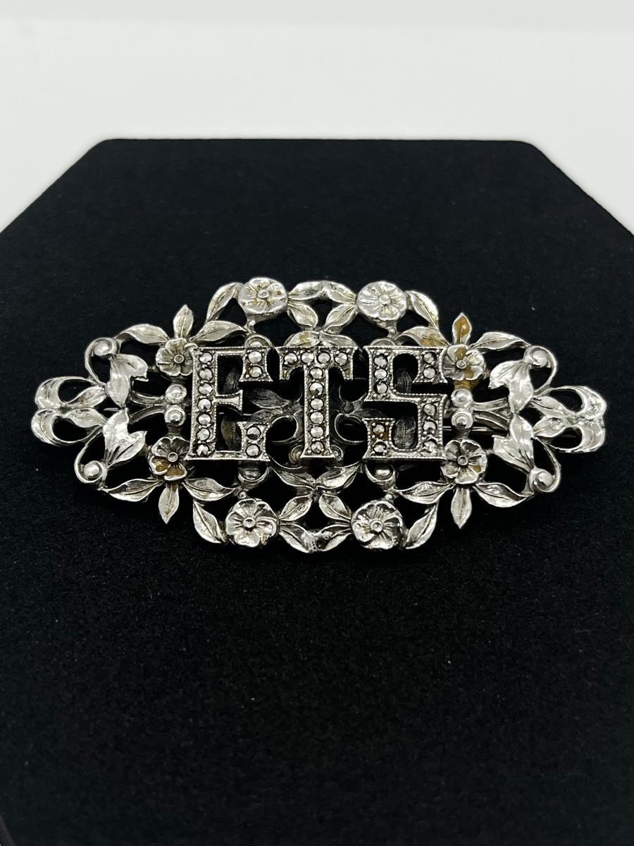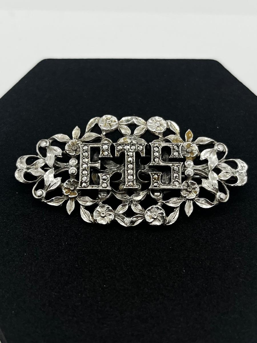 LOT 45: Vintage Art Deco Sterling and Marcasite "ETS" Pin/Brooch - 9 GTW
