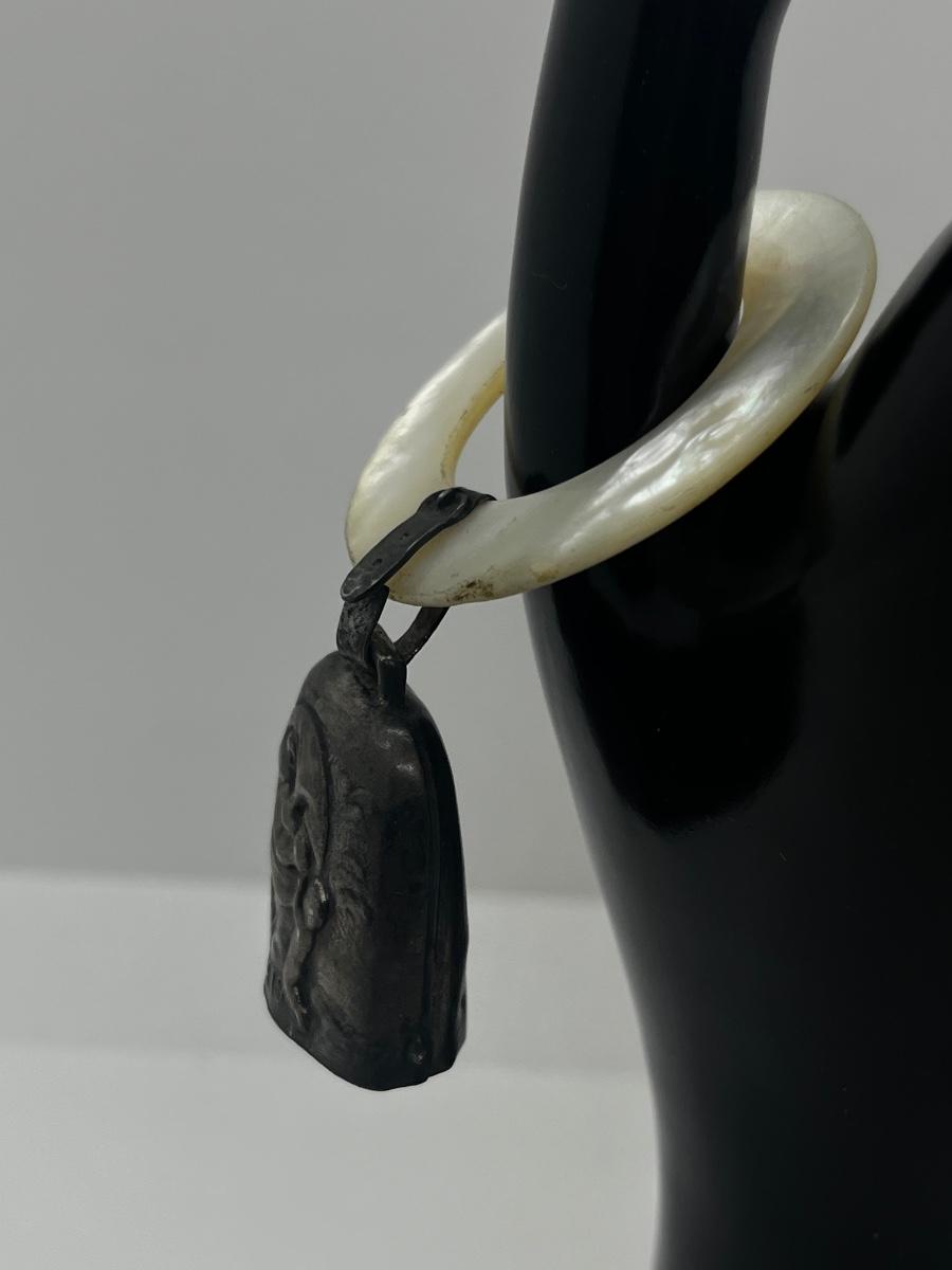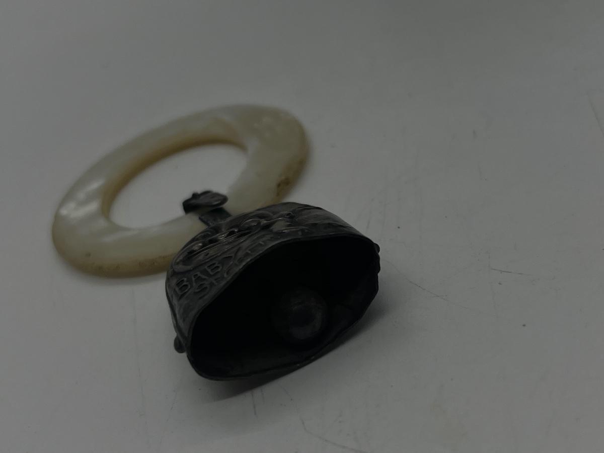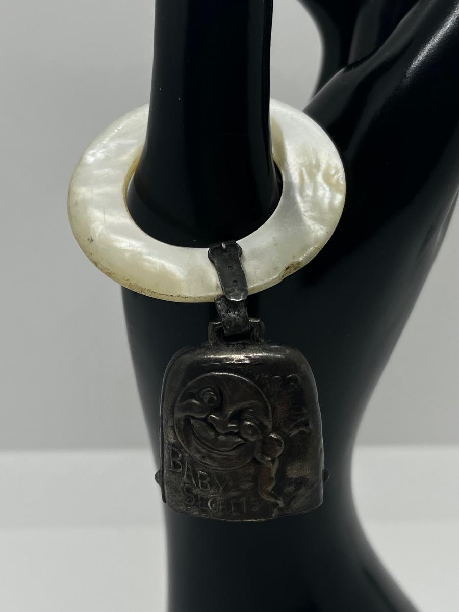LOT 46: Vintage/Antique Sterling Silver and Mother of Pearl "Baby Secrets" Rattle and Teether