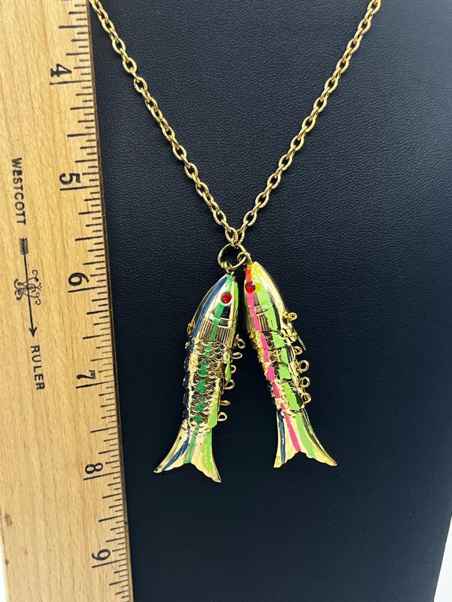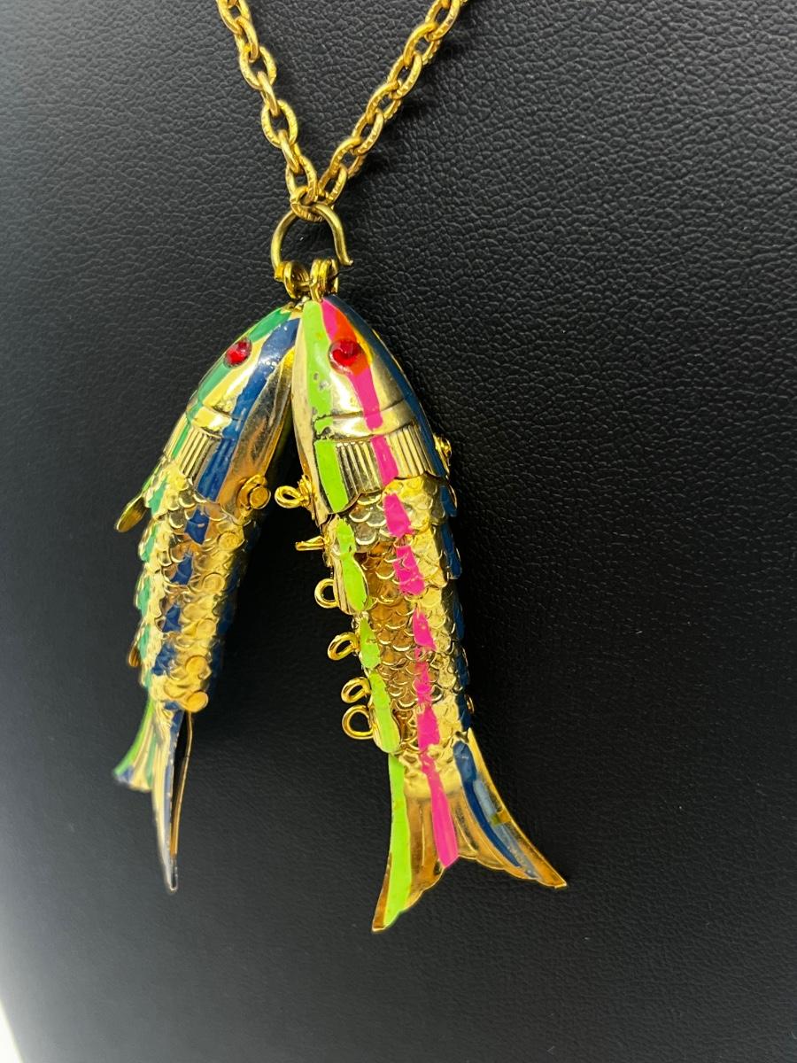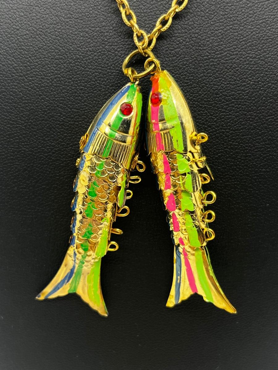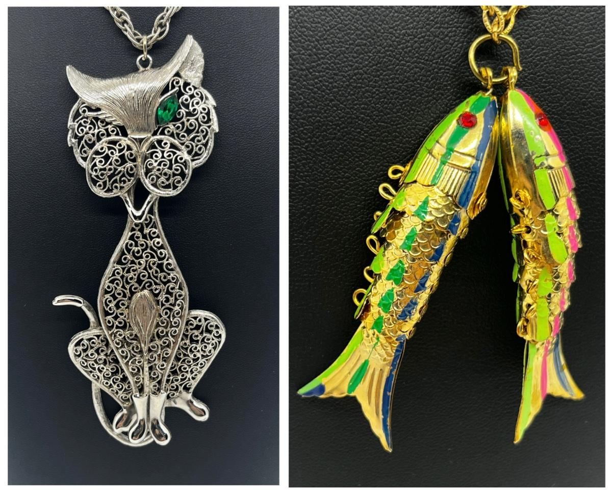 LOT 49: Amazing Statement Necklaces! Articulated Winking Cat on 22' Chain and 2 Articulated Fish on 24" Chain