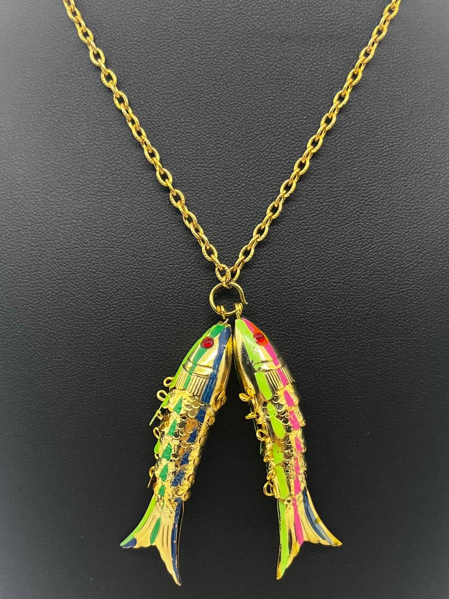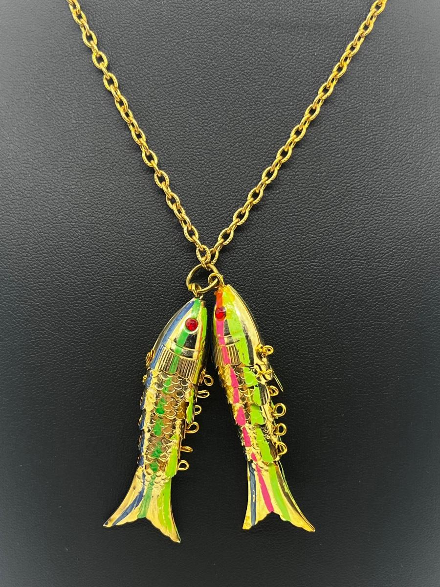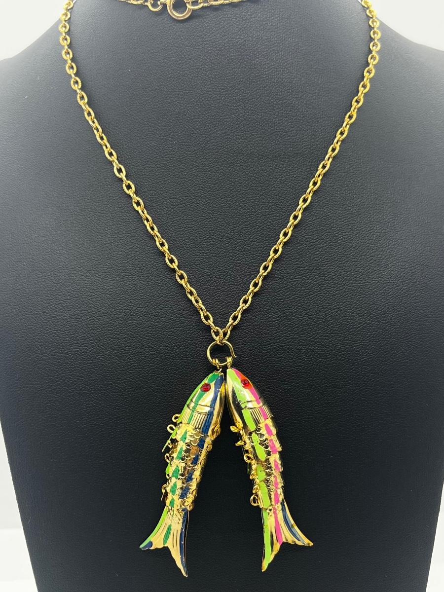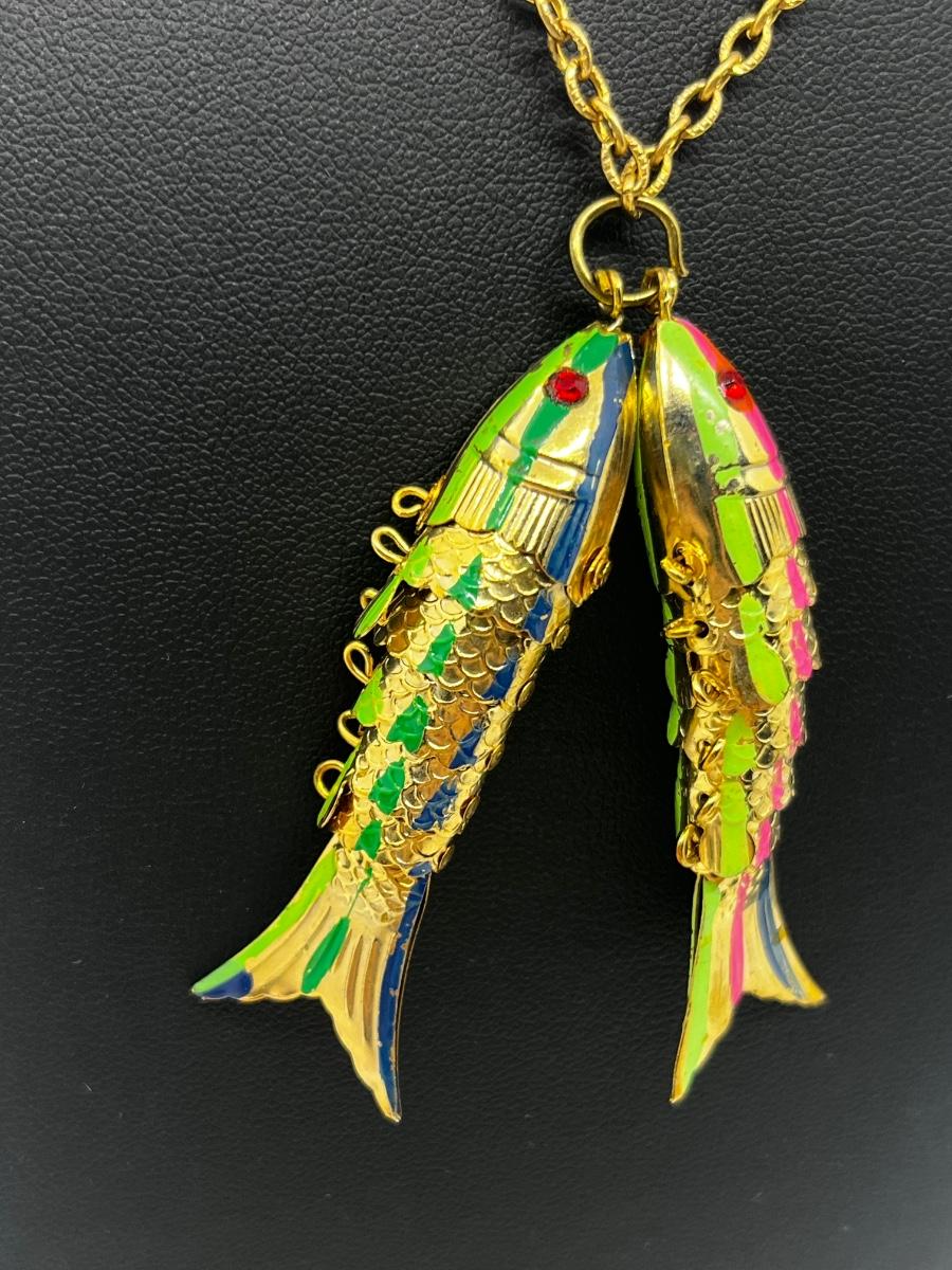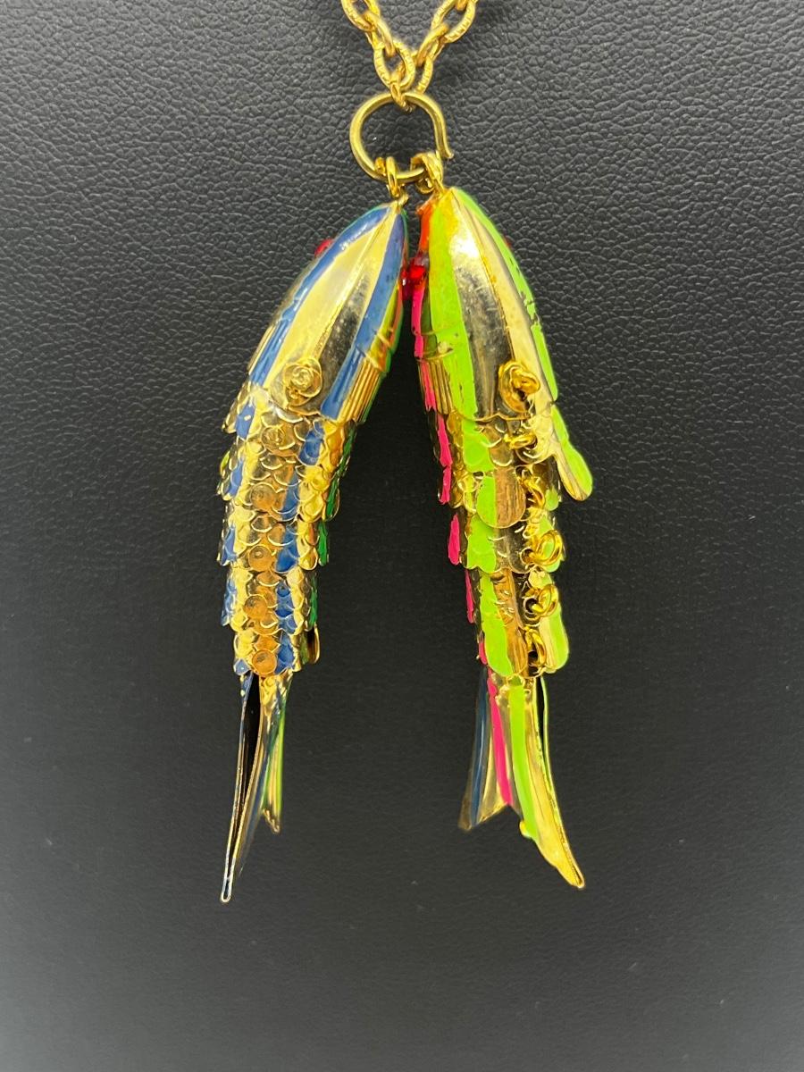 LOT 49: Amazing Statement Necklaces! Articulated Winking Cat on 22' Chain and 2 Articulated Fish on 24" Chain
