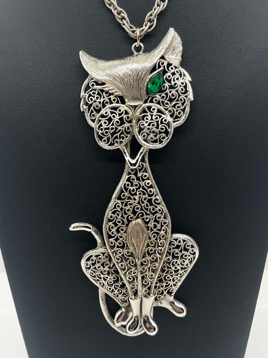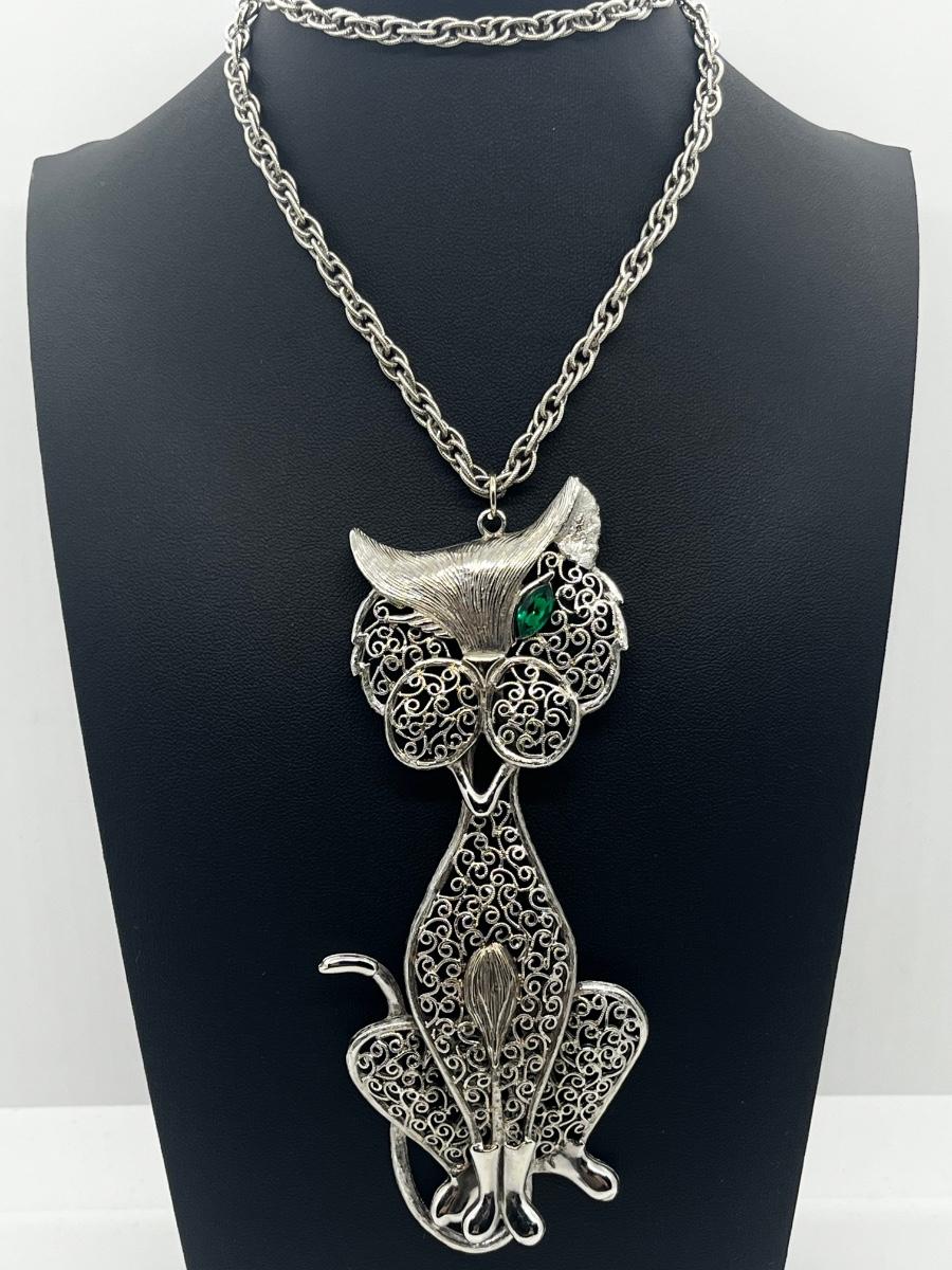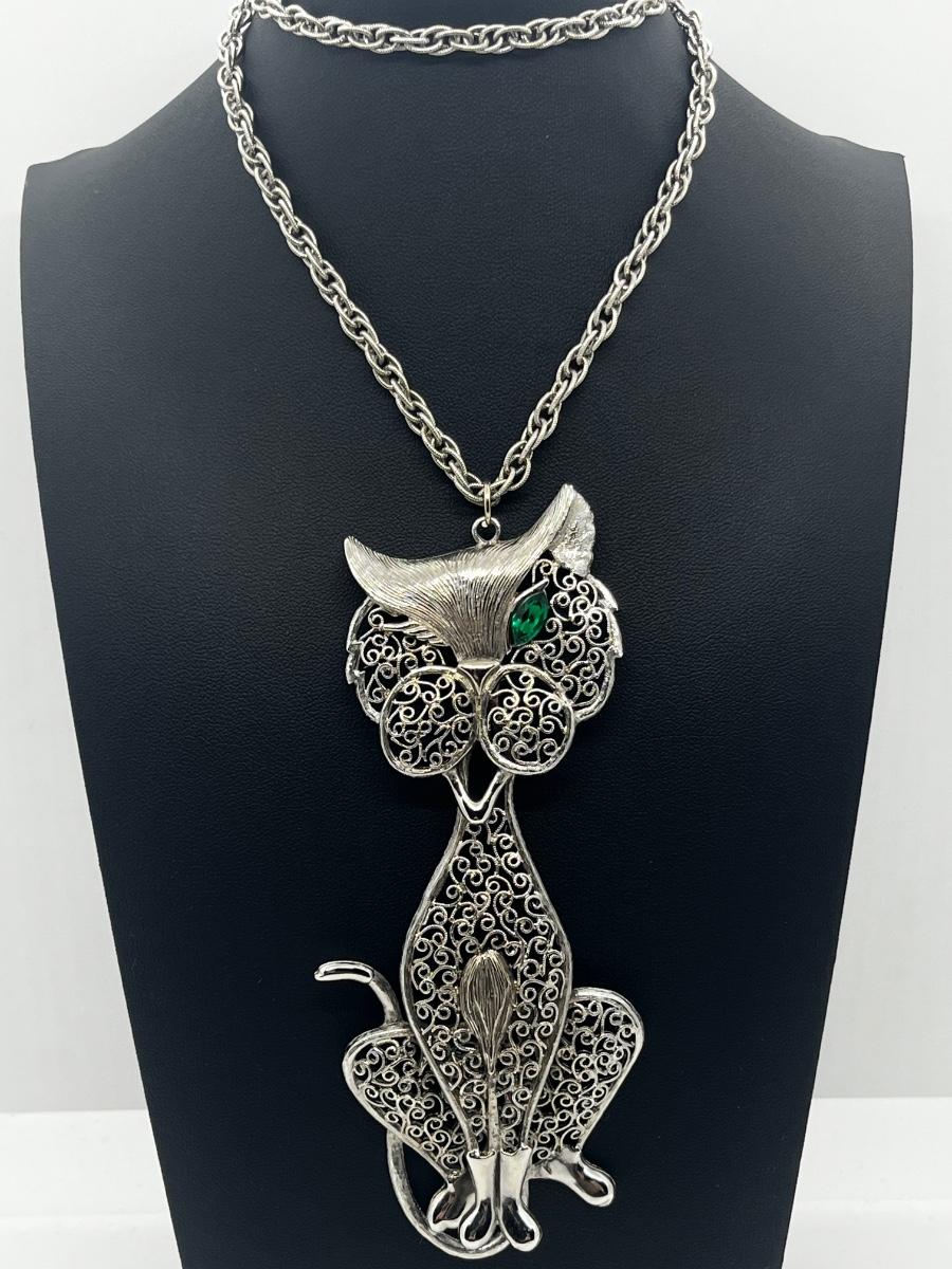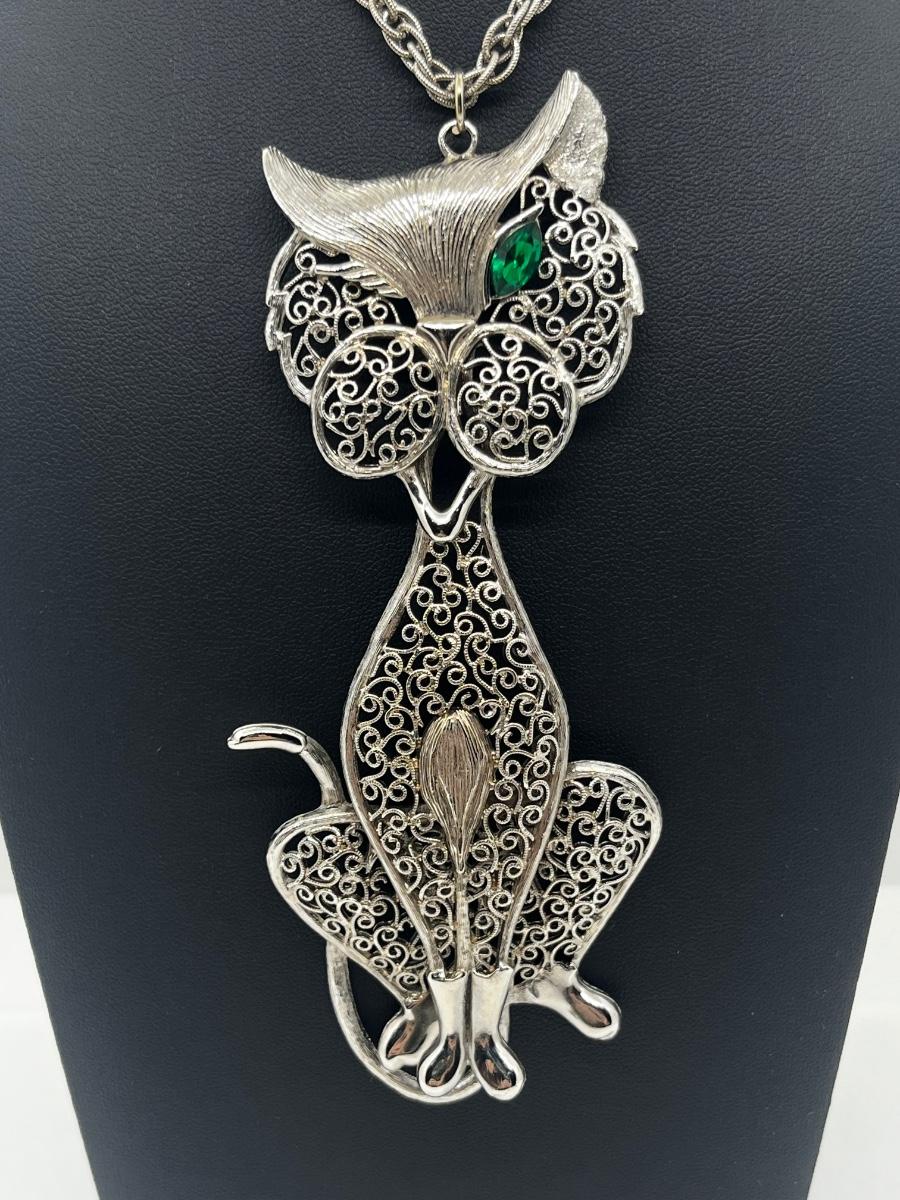 LOT 49: Amazing Statement Necklaces! Articulated Winking Cat on 22' Chain and 2 Articulated Fish on 24" Chain