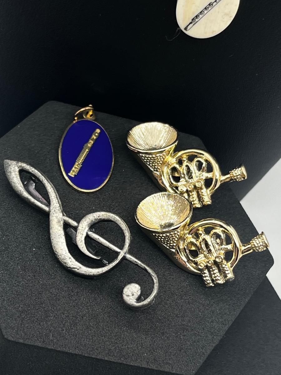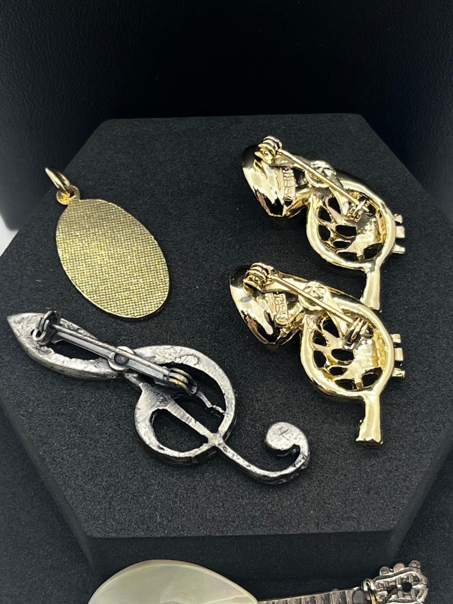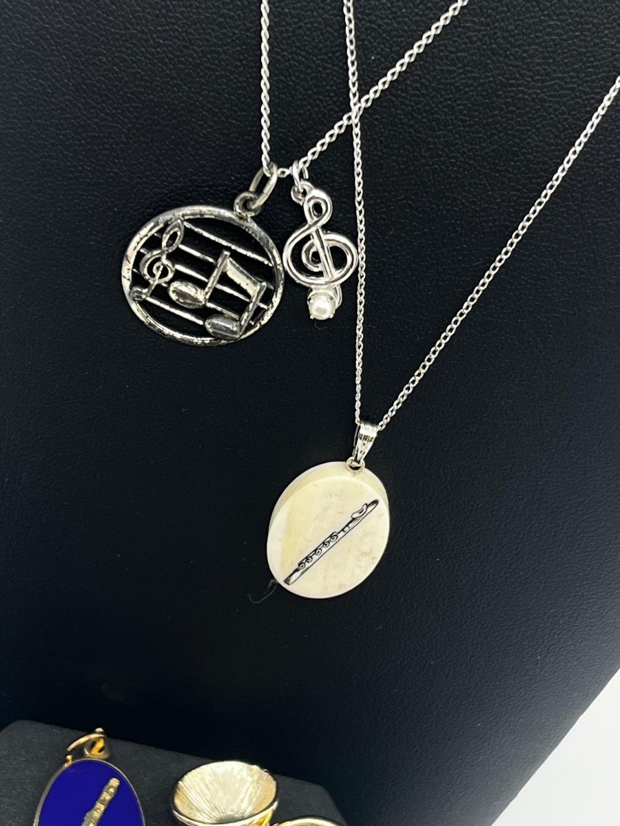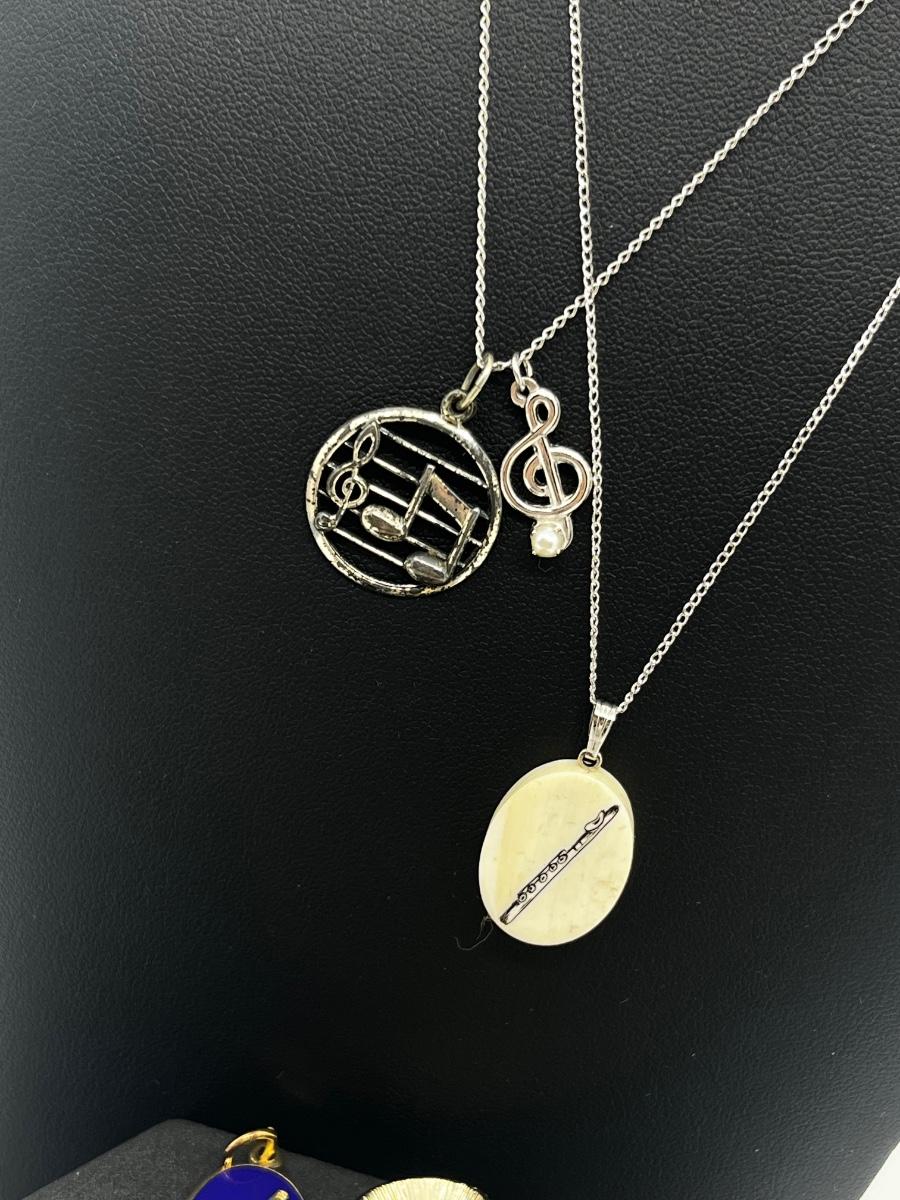 LOT 50: Musical Instrument Themed Costume Jewelry and More - Mother of Pearl Mandolin, Sterling Pendants and Sterling Chains