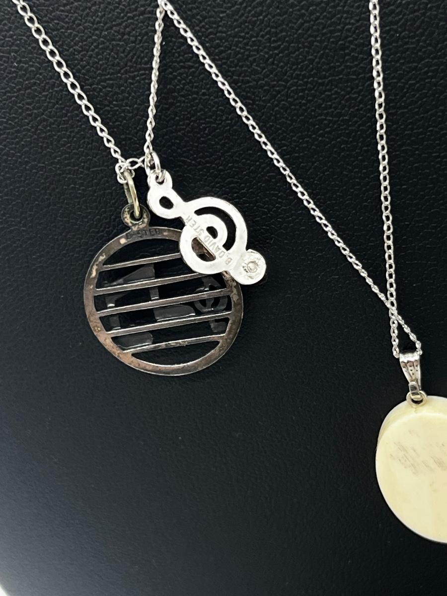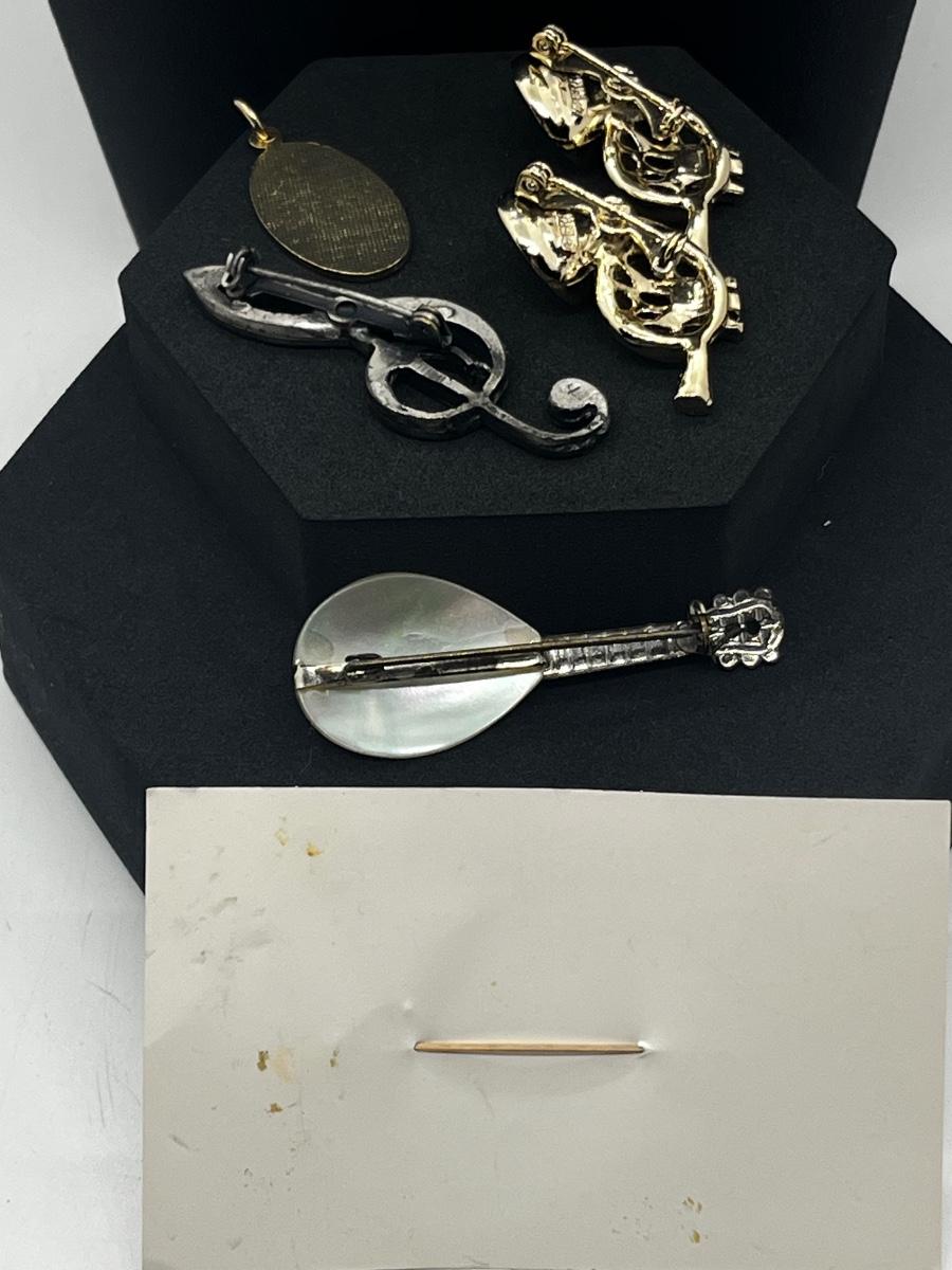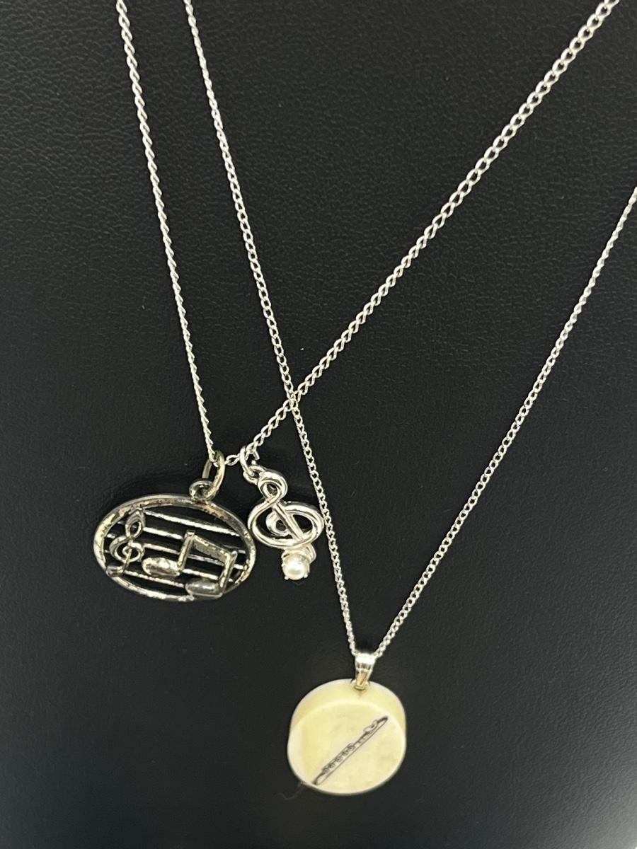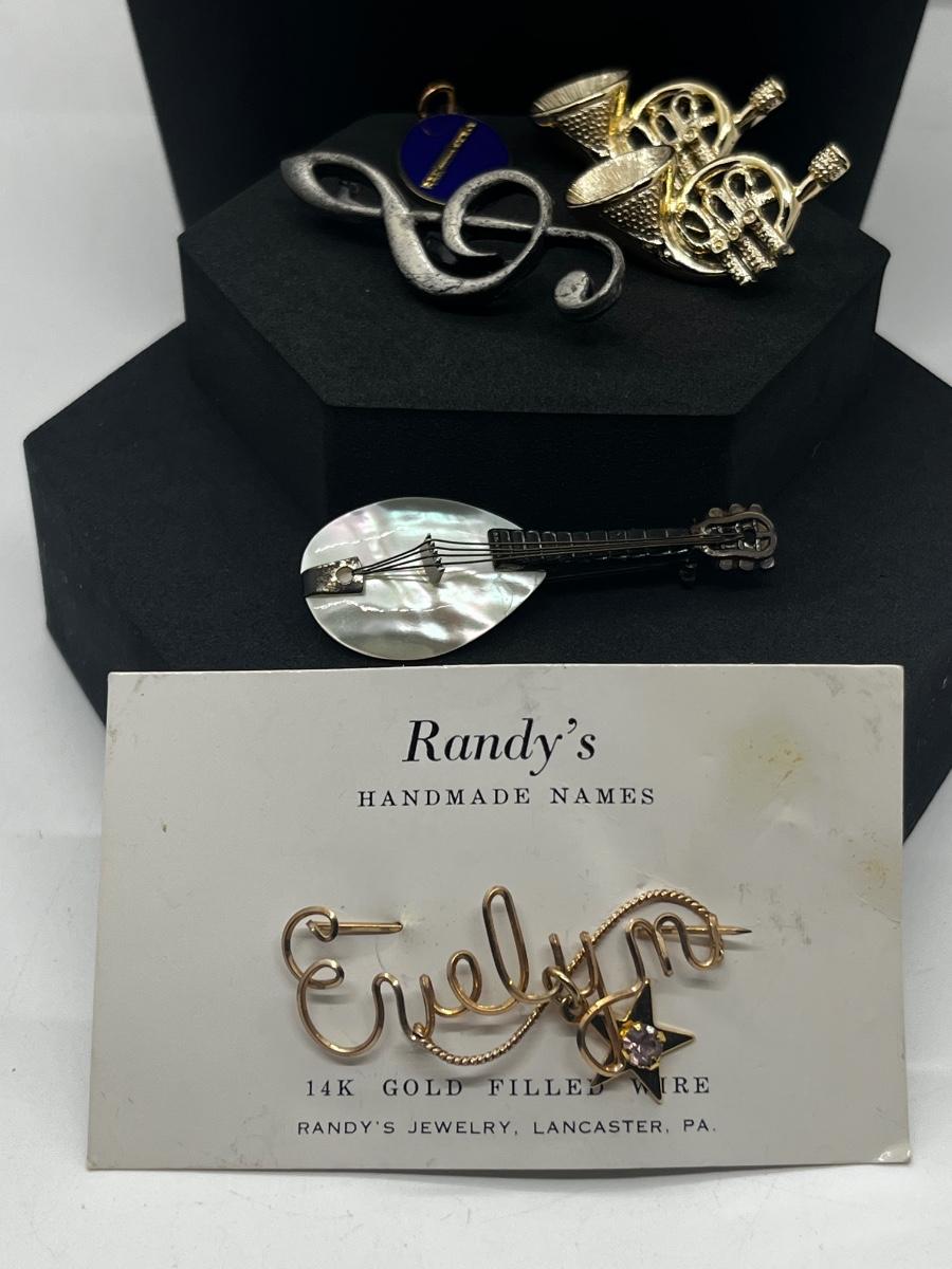 LOT 50: Musical Instrument Themed Costume Jewelry and More - Mother of Pearl Mandolin, Sterling Pendants and Sterling Chains
