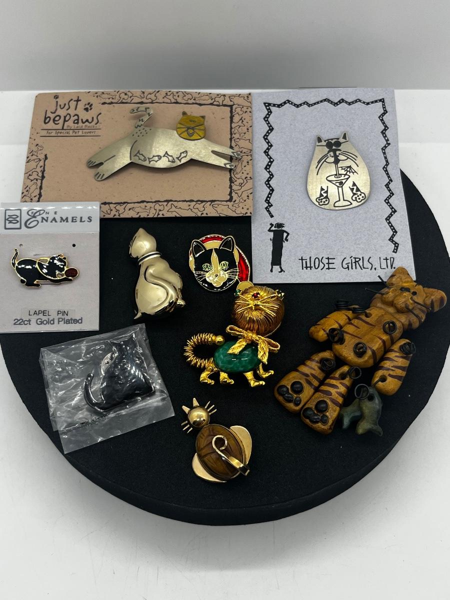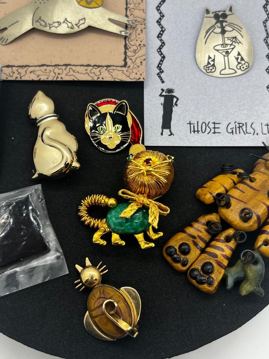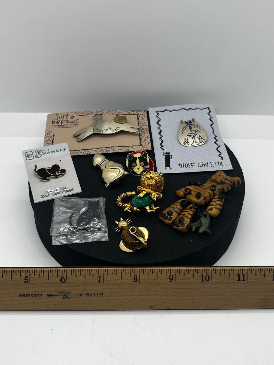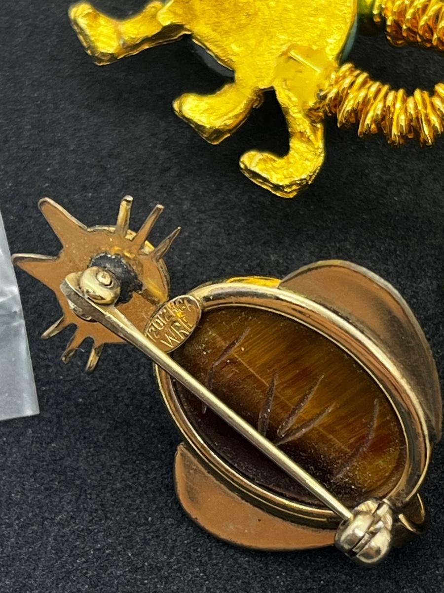 LOT 52: Vintage Cat Pin Lot - 1/20 12K GF Tigers Eye Scarab Cat Pin and More