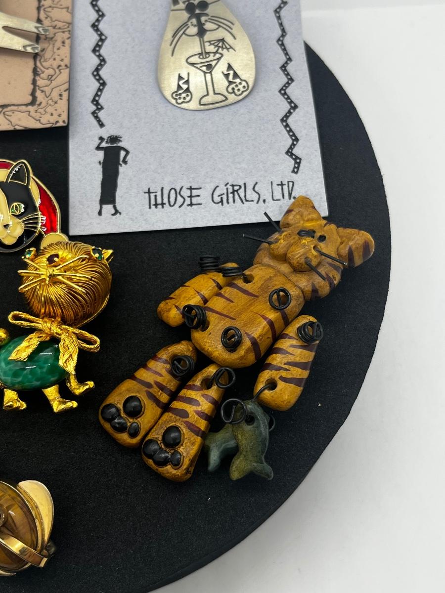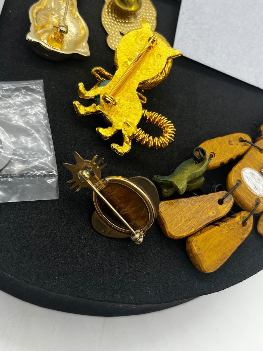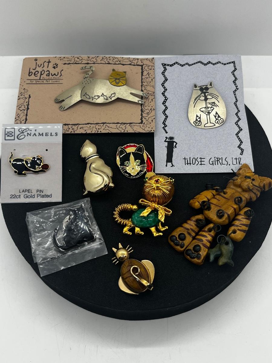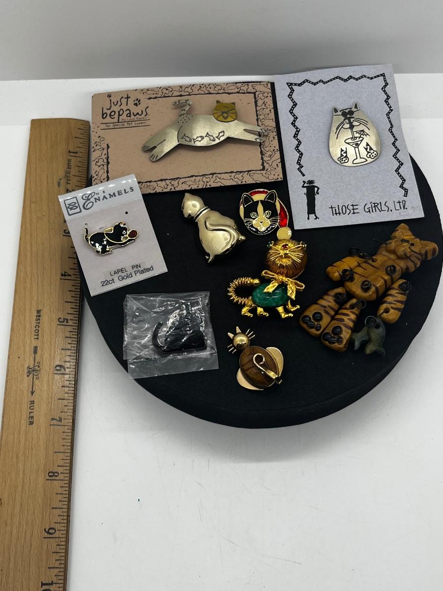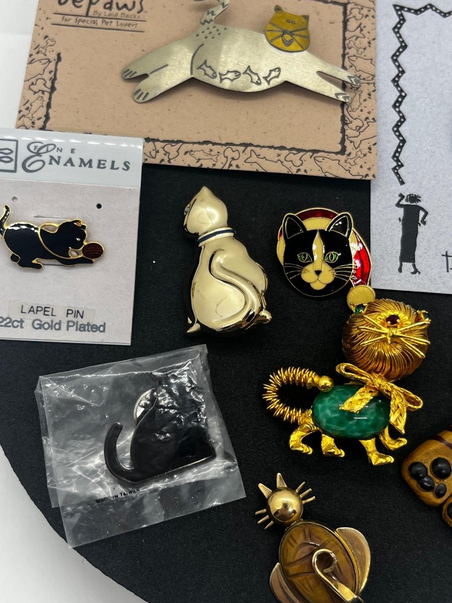 LOT 52: Vintage Cat Pin Lot - 1/20 12K GF Tigers Eye Scarab Cat Pin and More