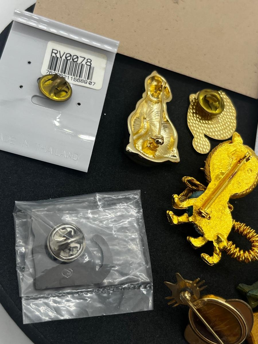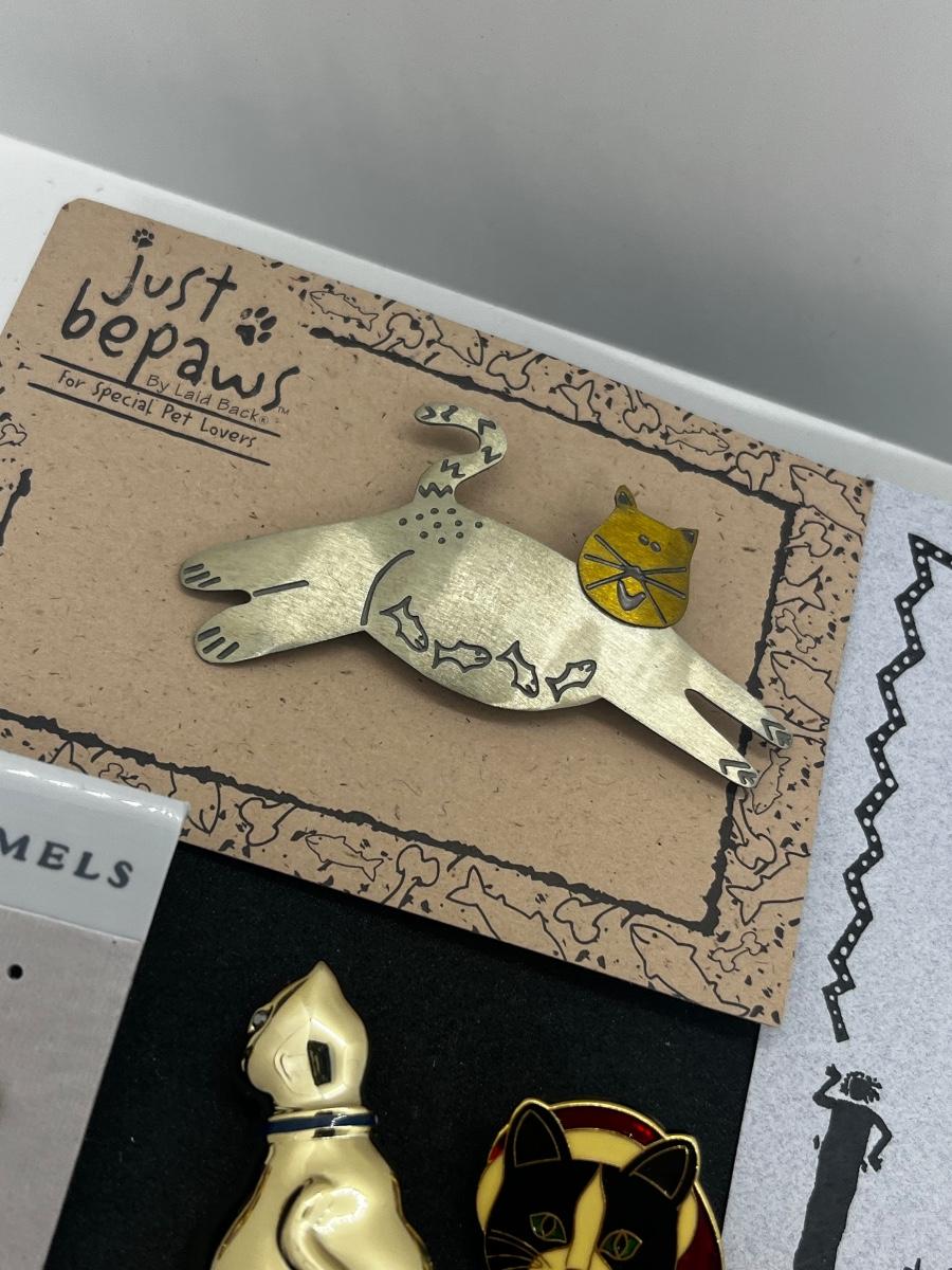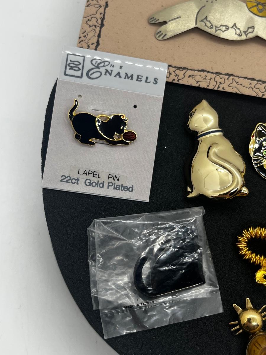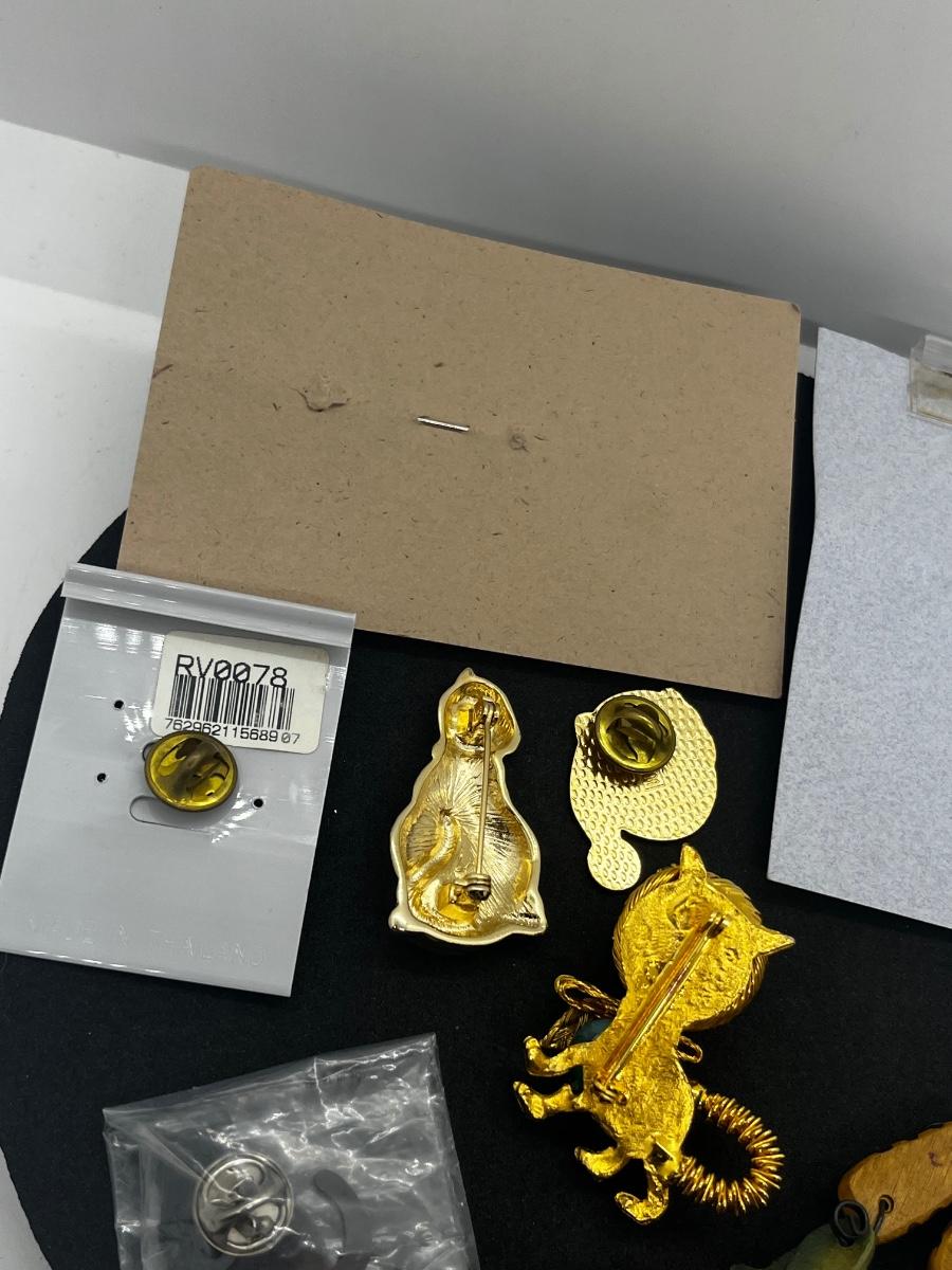 LOT 52: Vintage Cat Pin Lot - 1/20 12K GF Tigers Eye Scarab Cat Pin and More