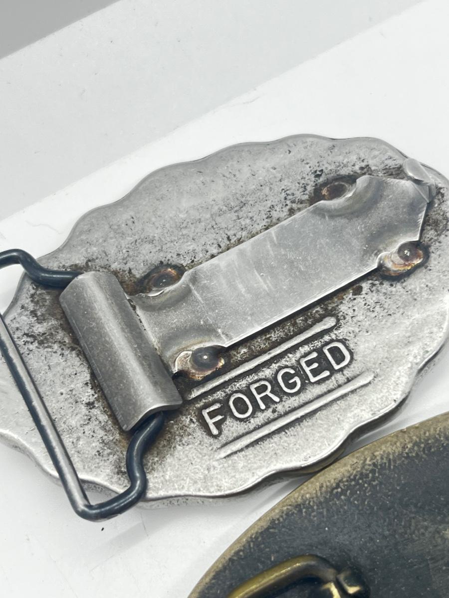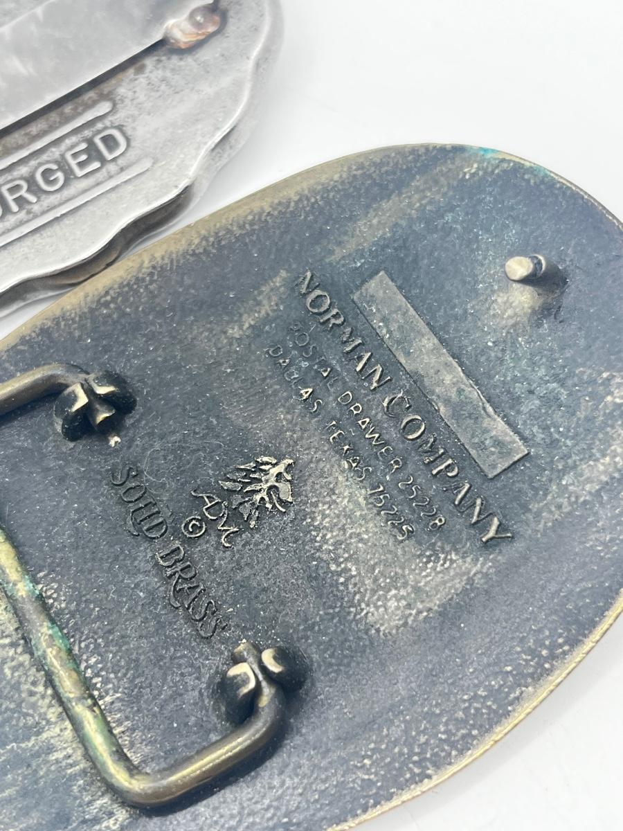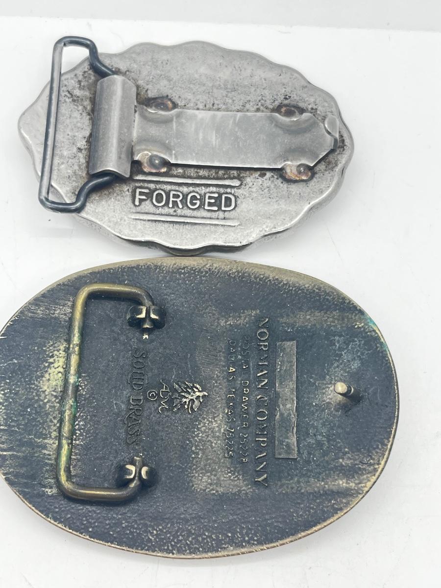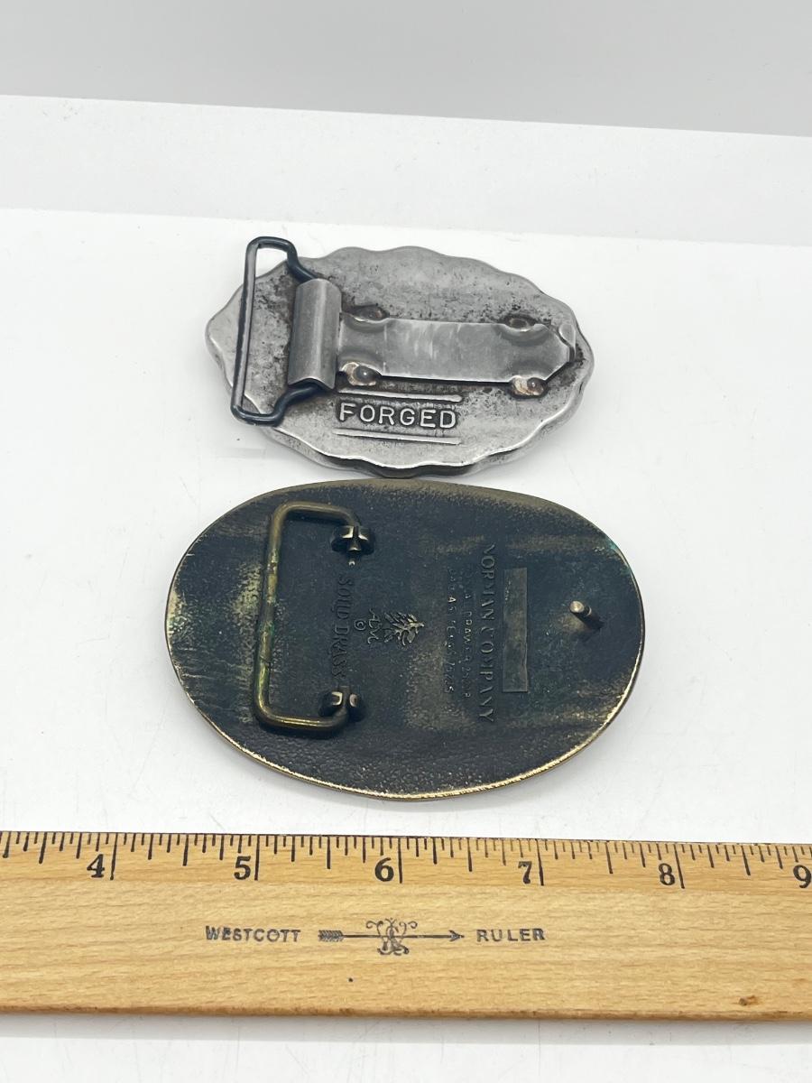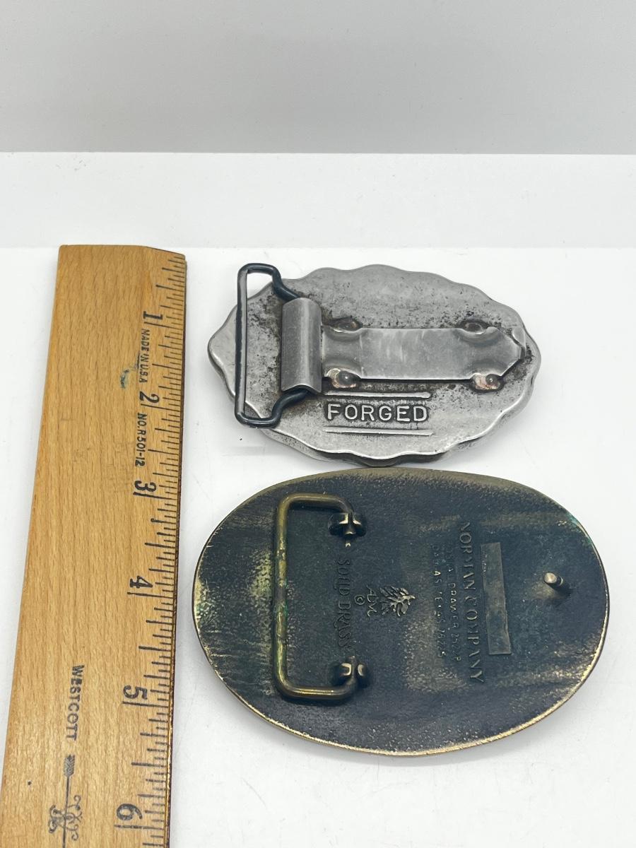 LOT 79: Big and Heavy Vintage Belt Buckles - National Rifle Association and The Americans Republic Steel