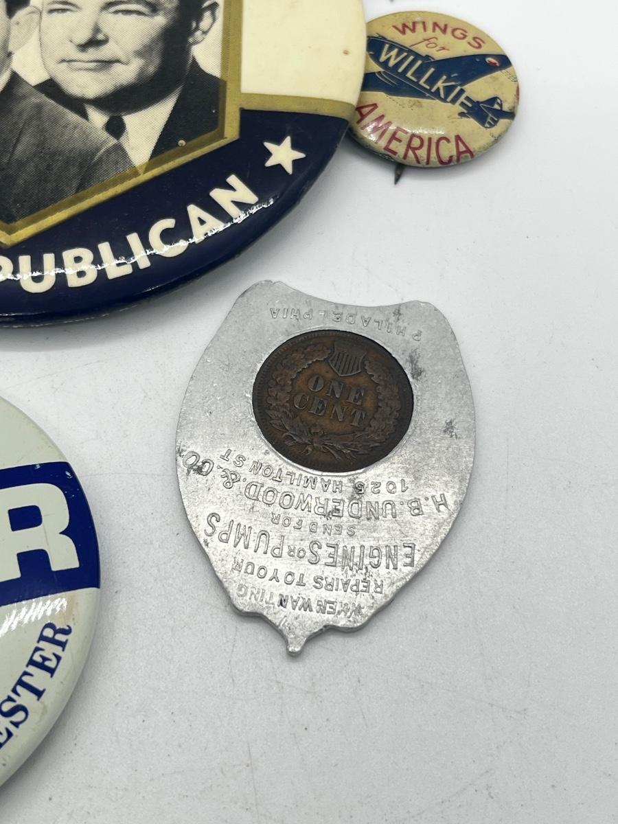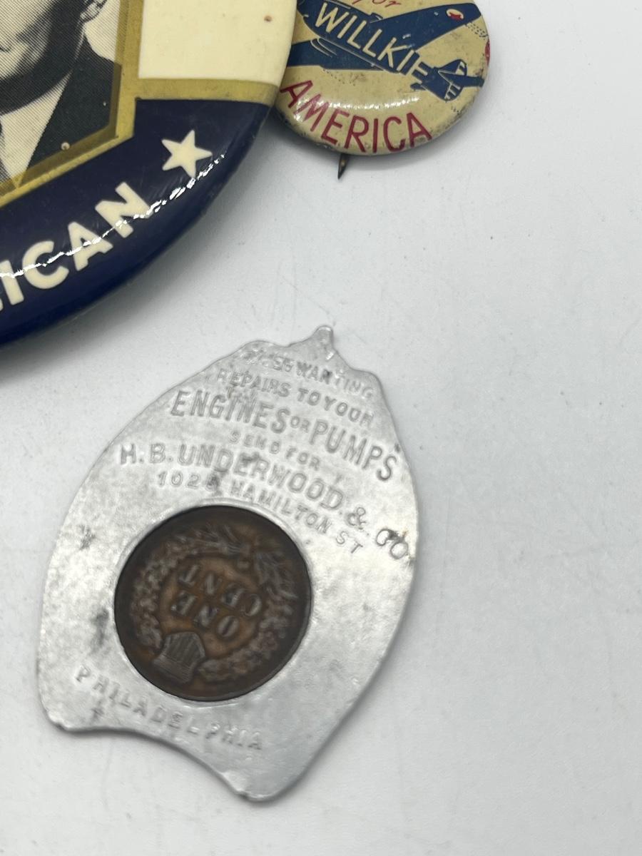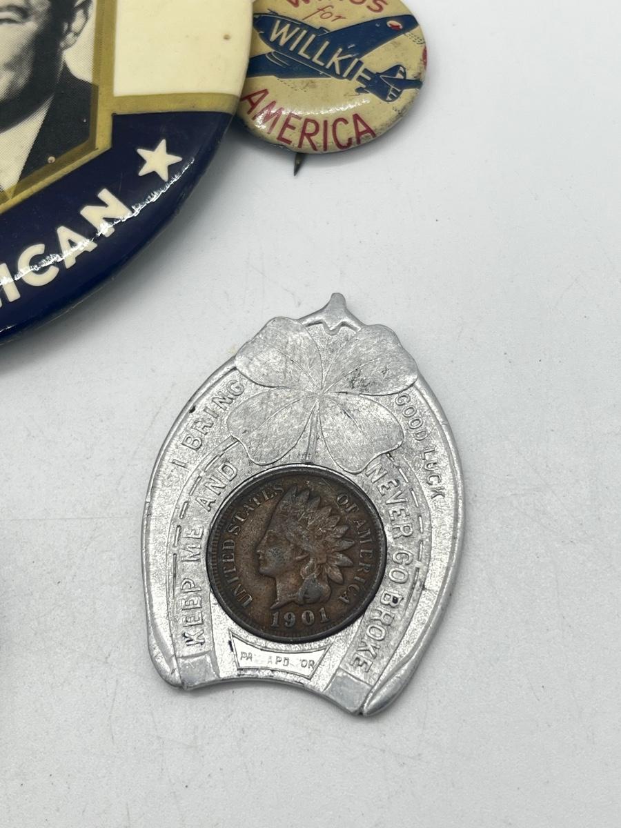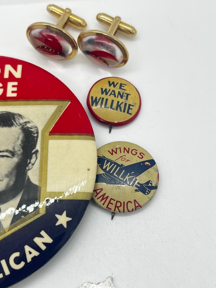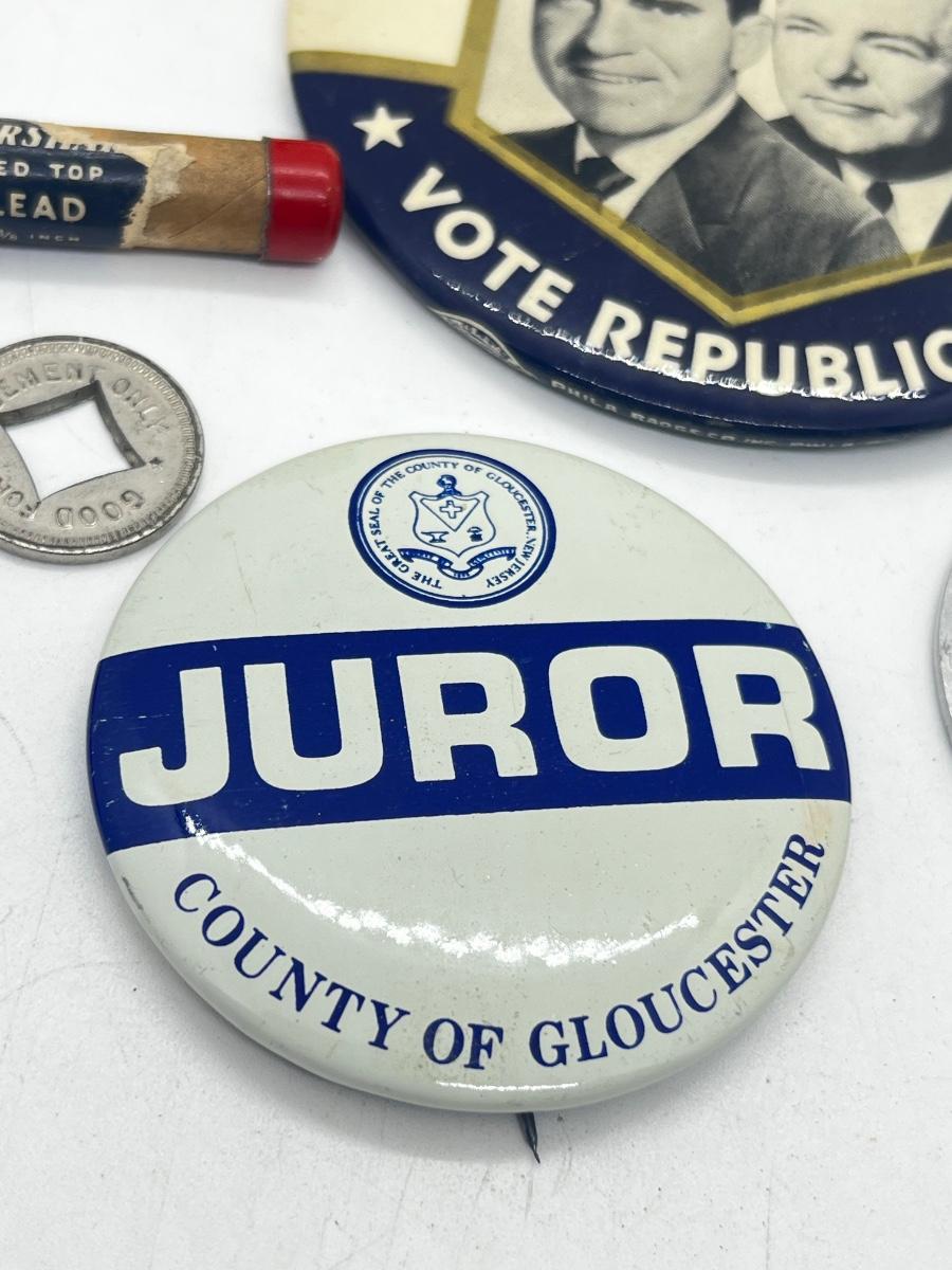 LOT 80: Vintage Odds and Ends: Political Button, Fish Hook Cufflinks, Lead Pencil and More!