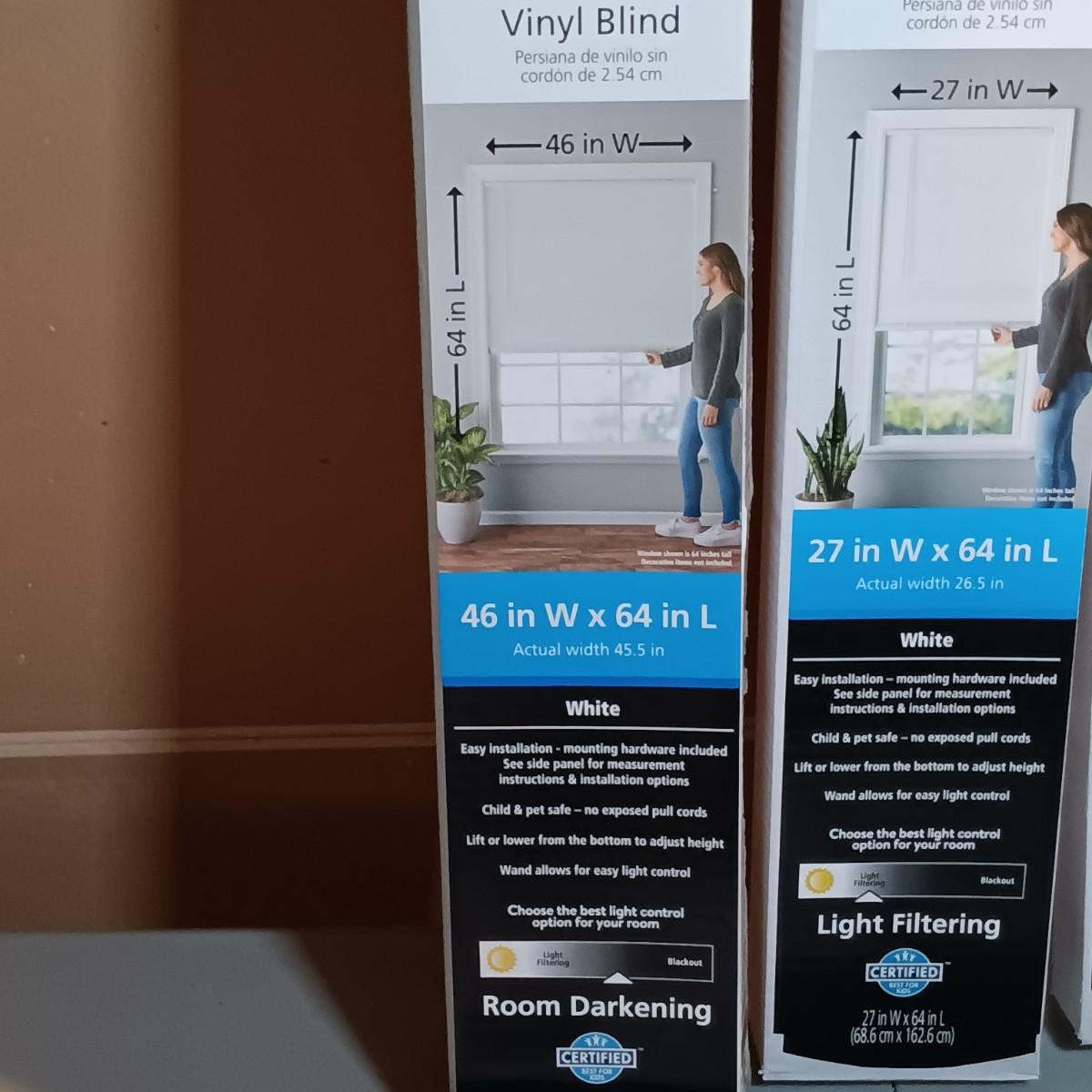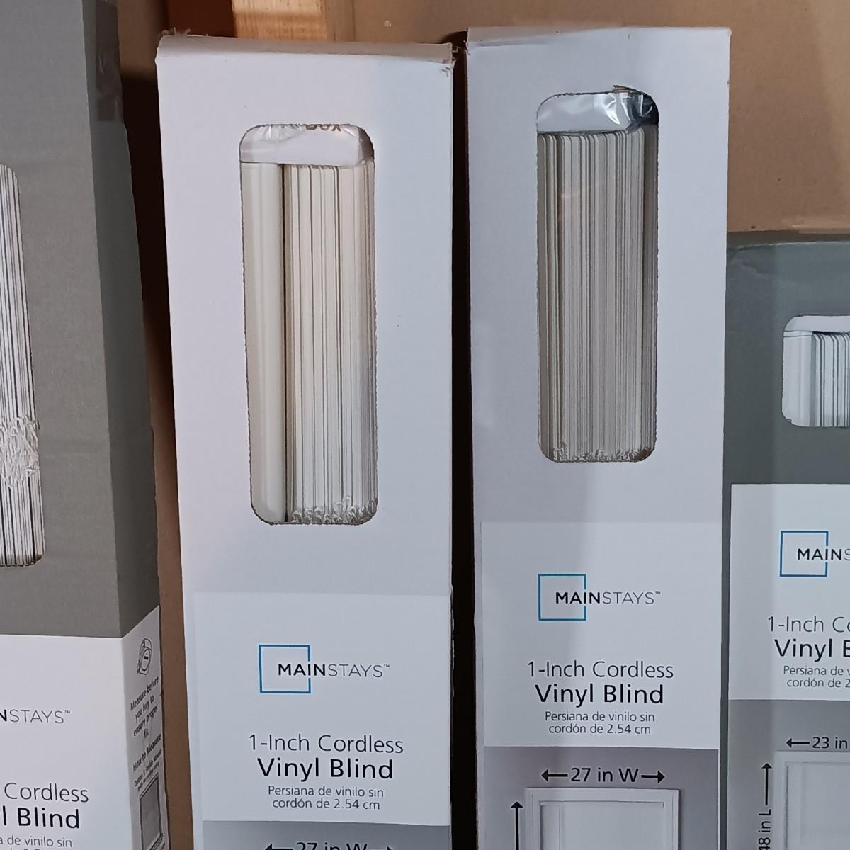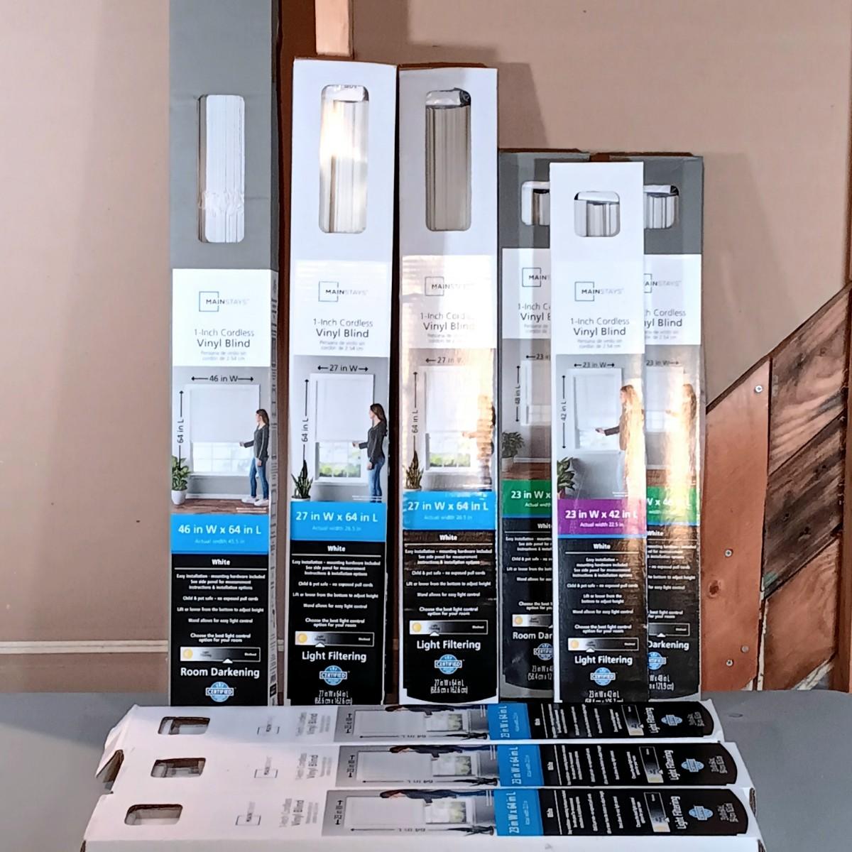 LOT 3: Set of (9) New in Package Vinyl Blinds in Various Sizes
