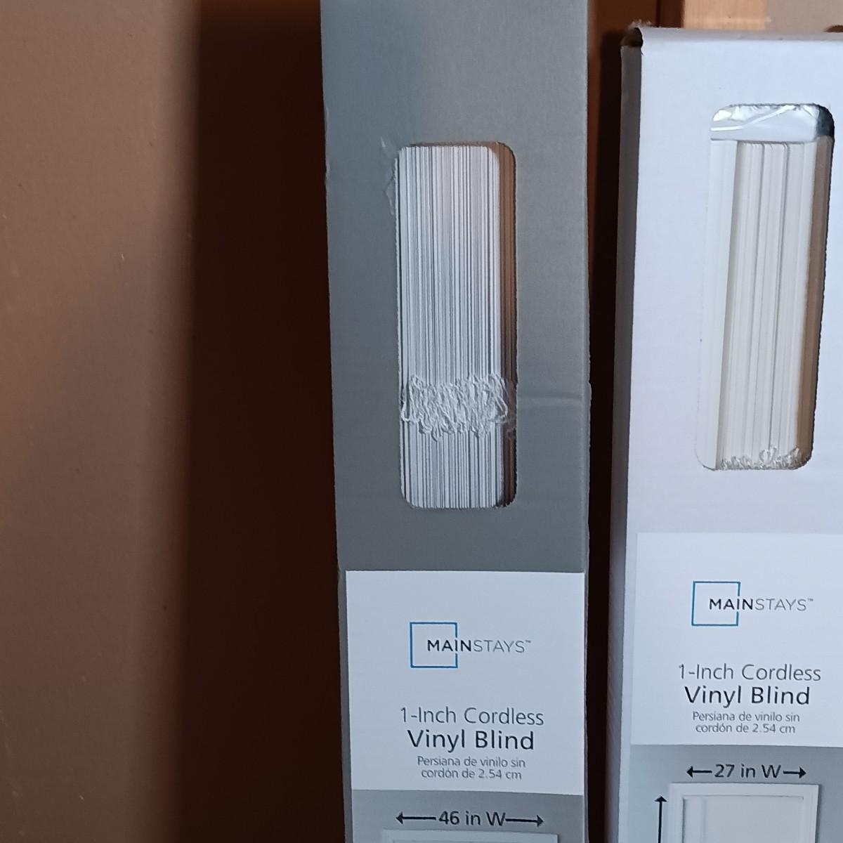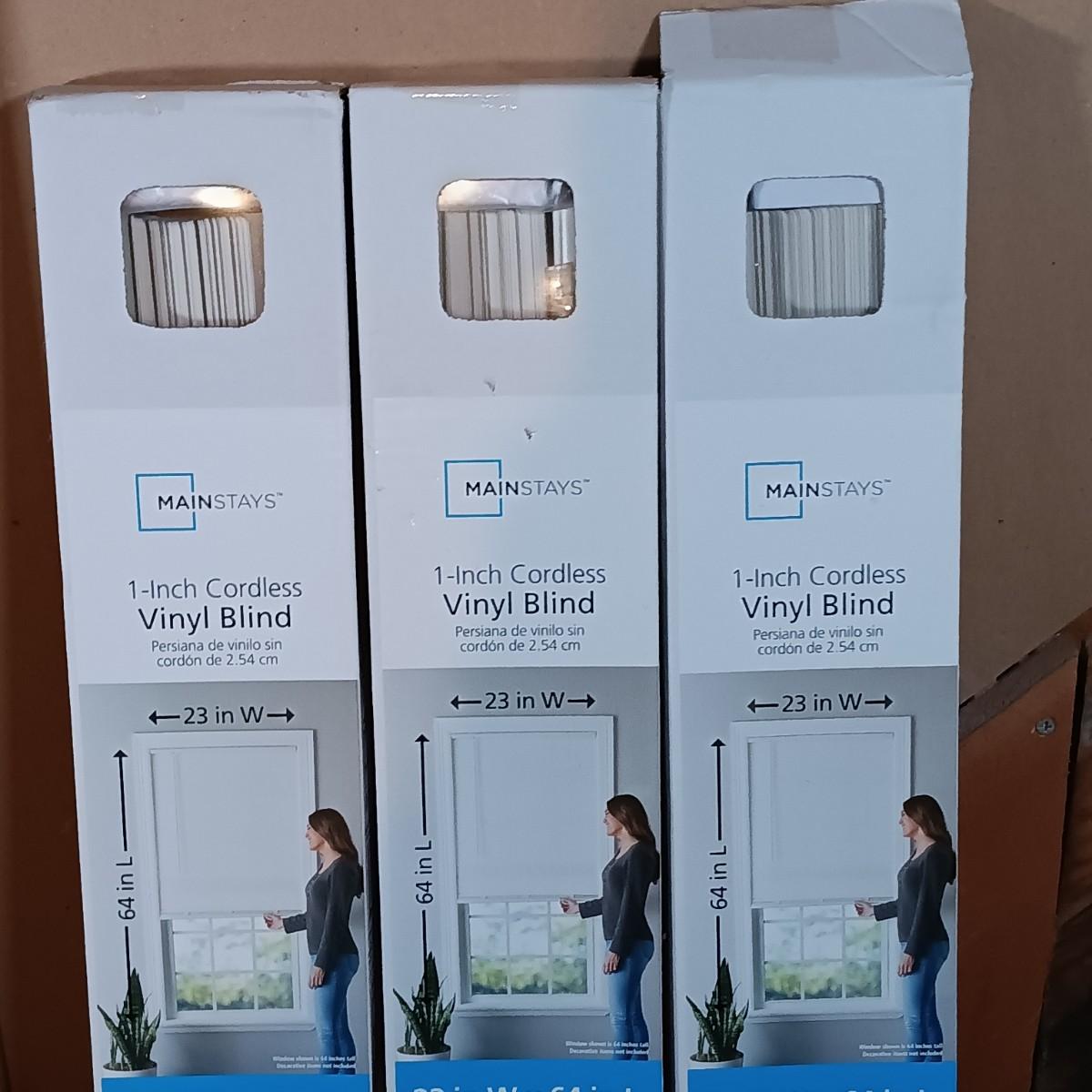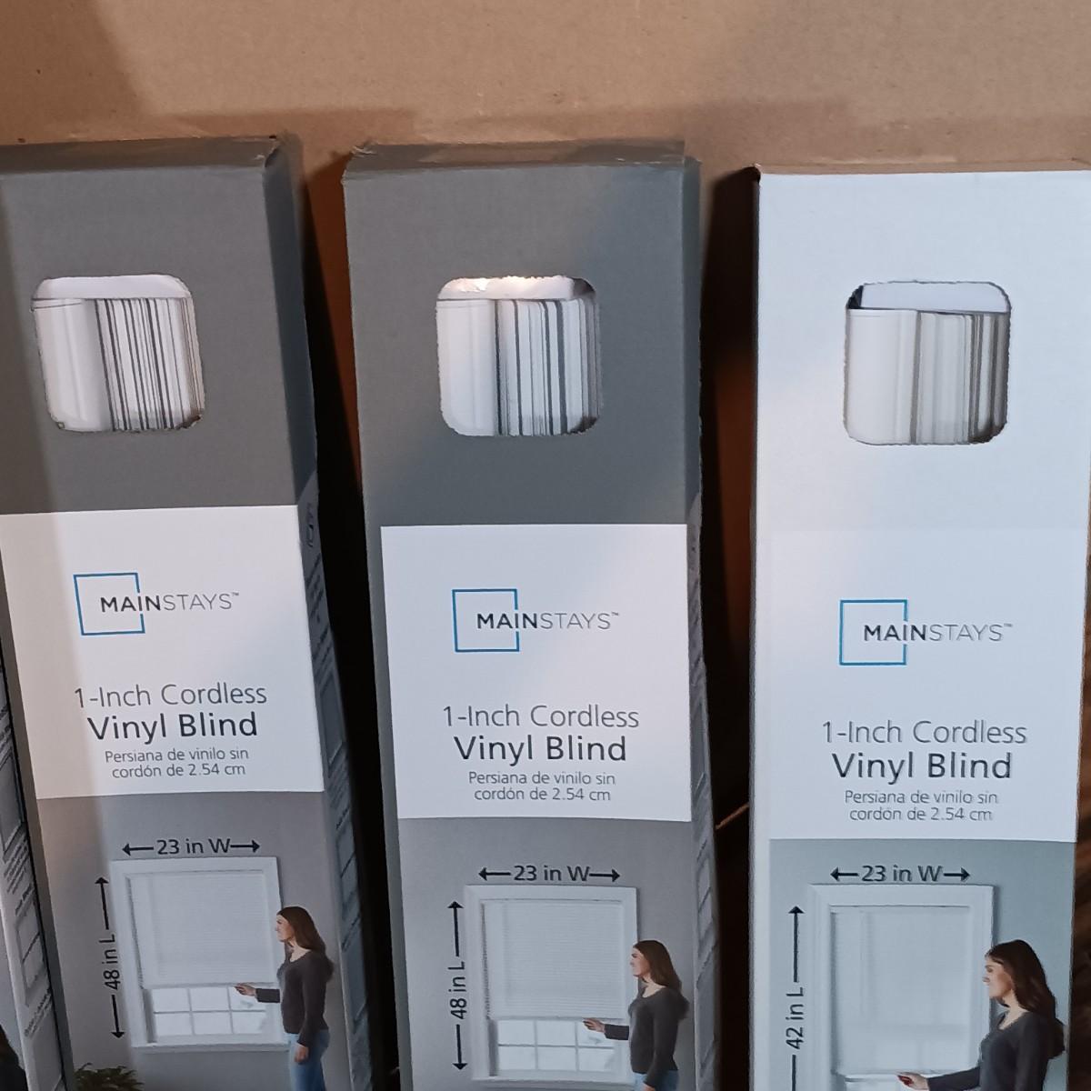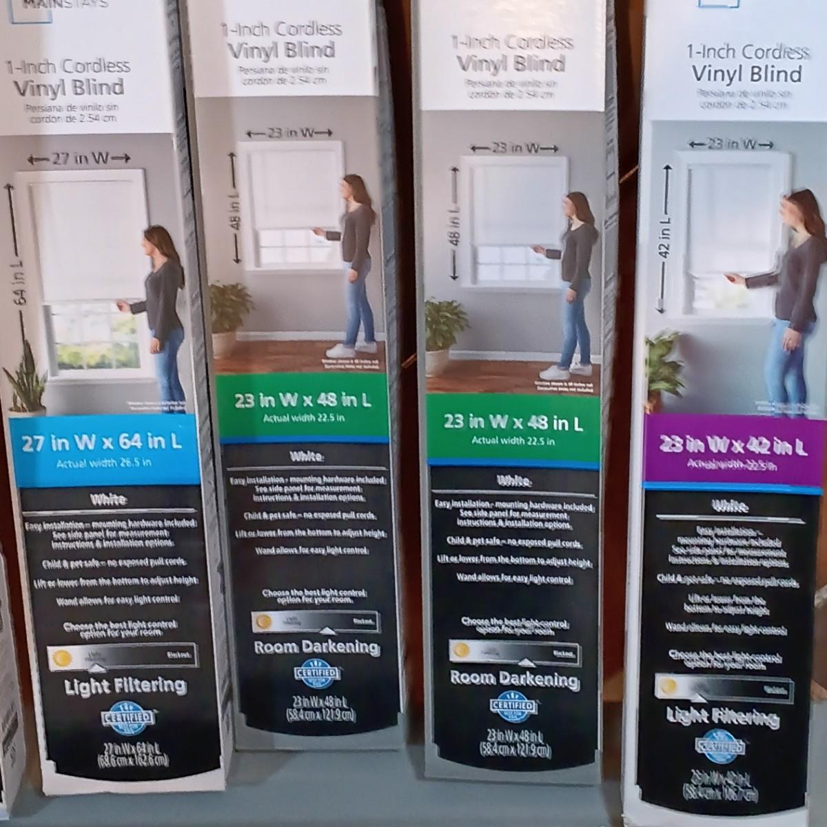 LOT 3: Set of (9) New in Package Vinyl Blinds in Various Sizes