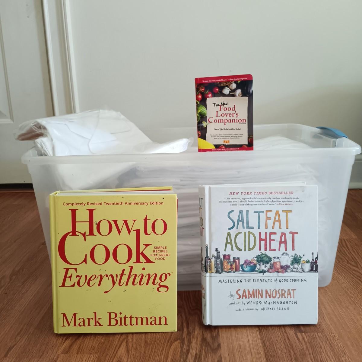 LOT 16: Set of (24) Fashion Seal White Chef's Coats Size 2XL with Cook Books