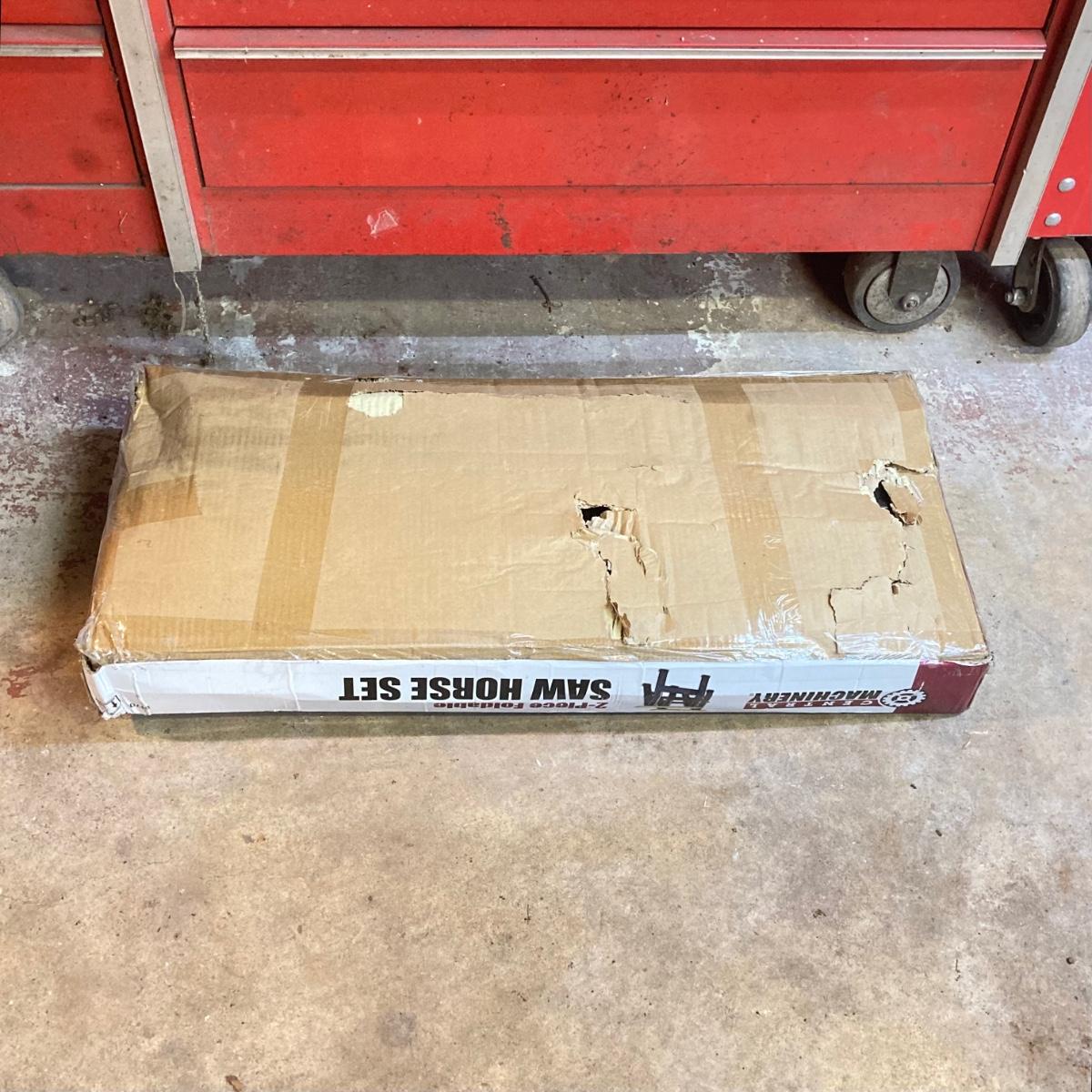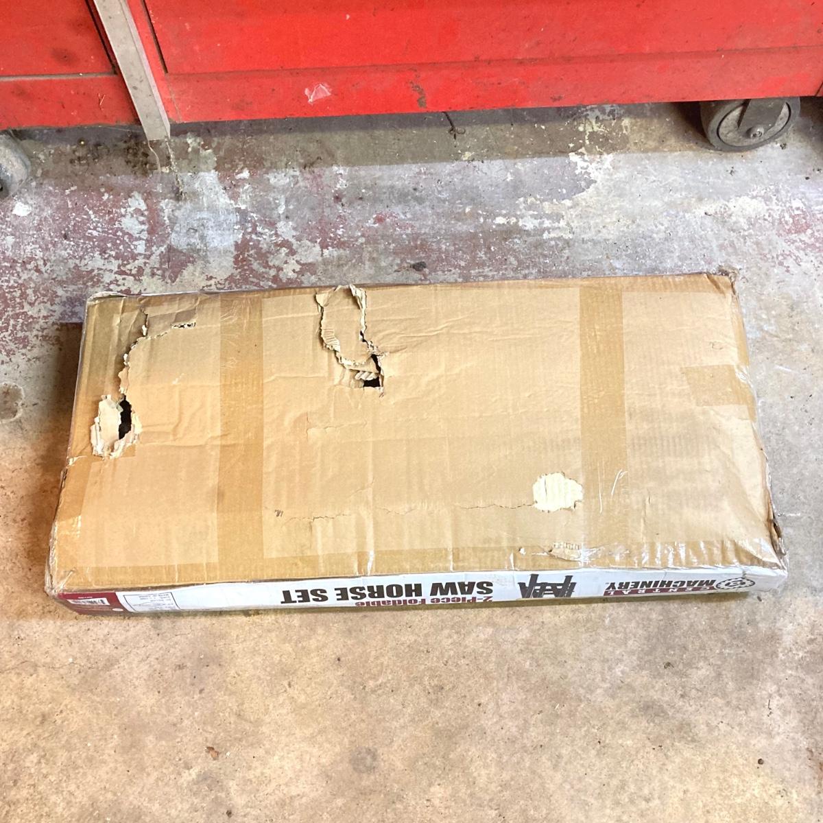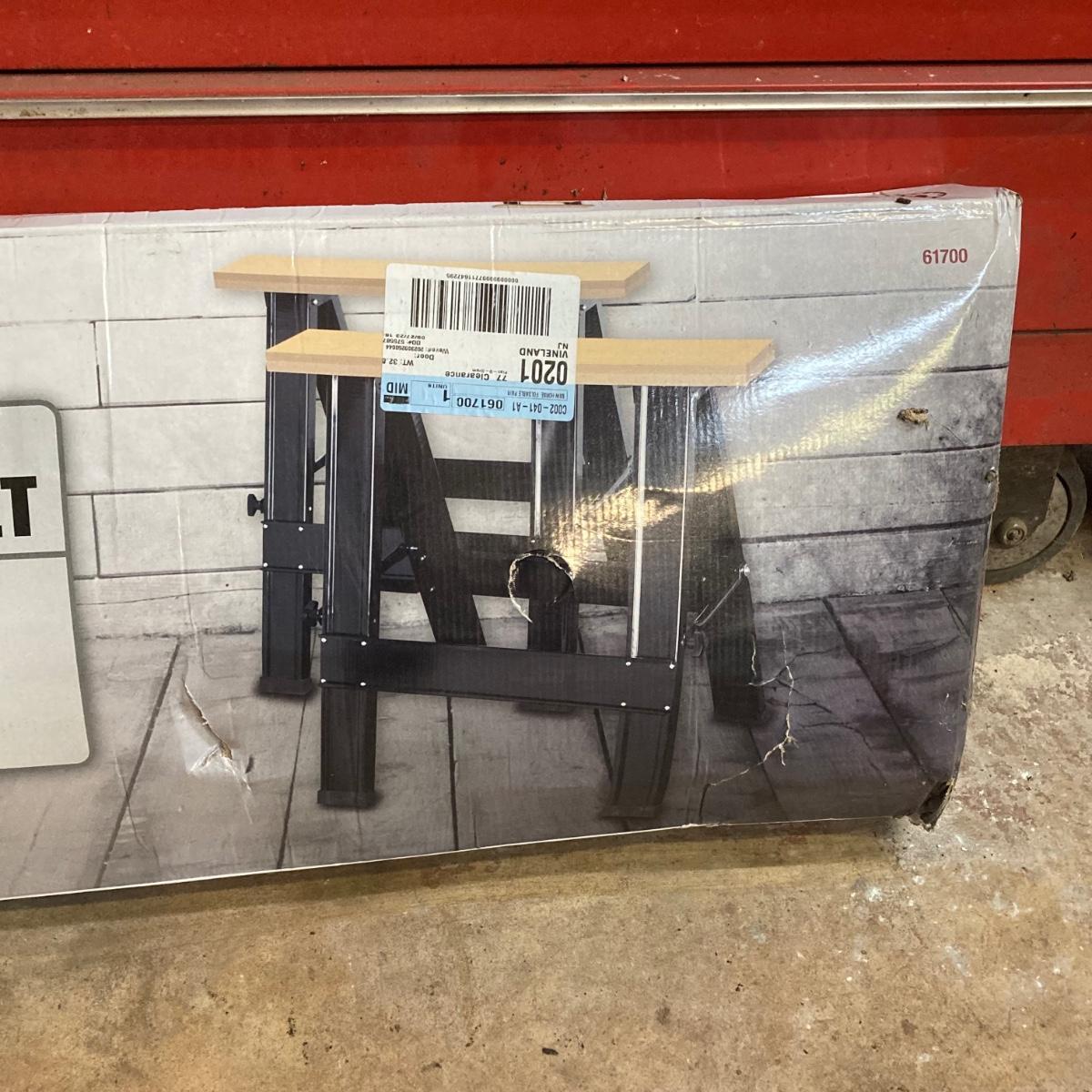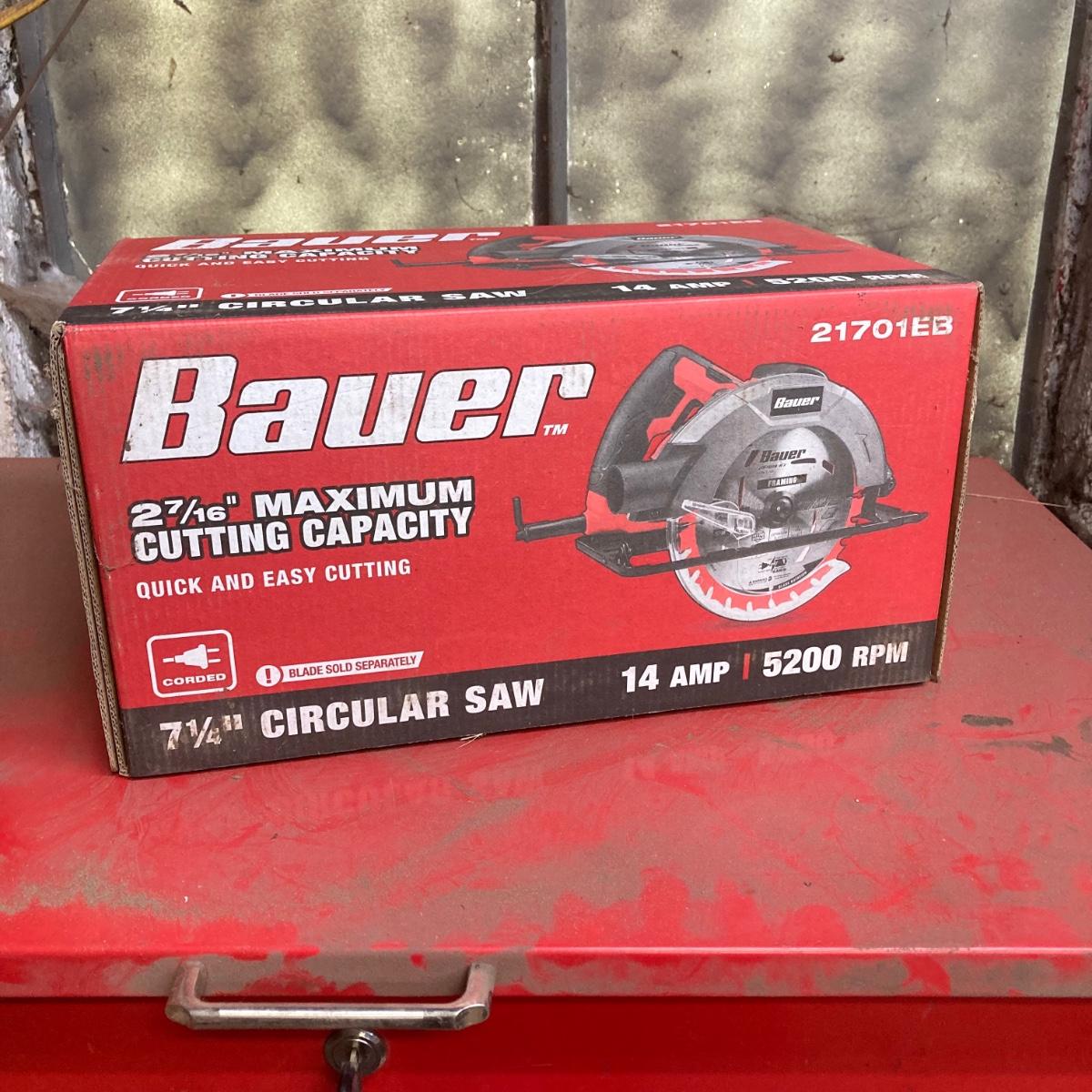 LOT 58: Bauer 7 1/4" Circular Saw 21701EB (New in Box) and Central Machinery 2-Piece Foldable Saw Horse Set in Original Box