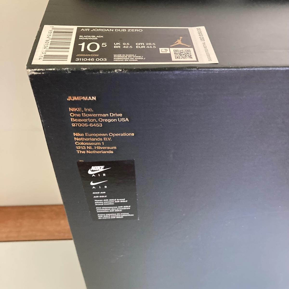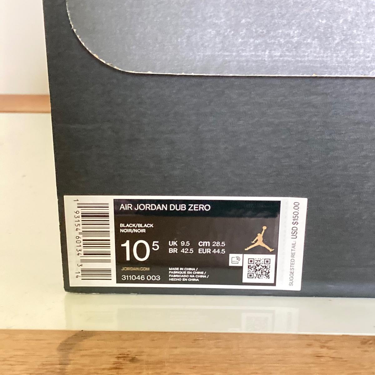 LOT 70: Nike Air Jordan Dub Zero Black Sneakers - US Size 10.5 in Original Box 311046 003