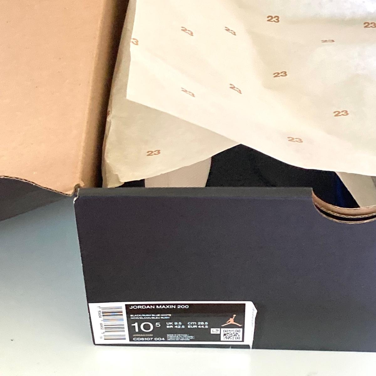 LOT 71: Nike Jordan Maxim 200 Black / Rush Blue - White Sneakers - US Size 10.5 in Original Box CD6107 004