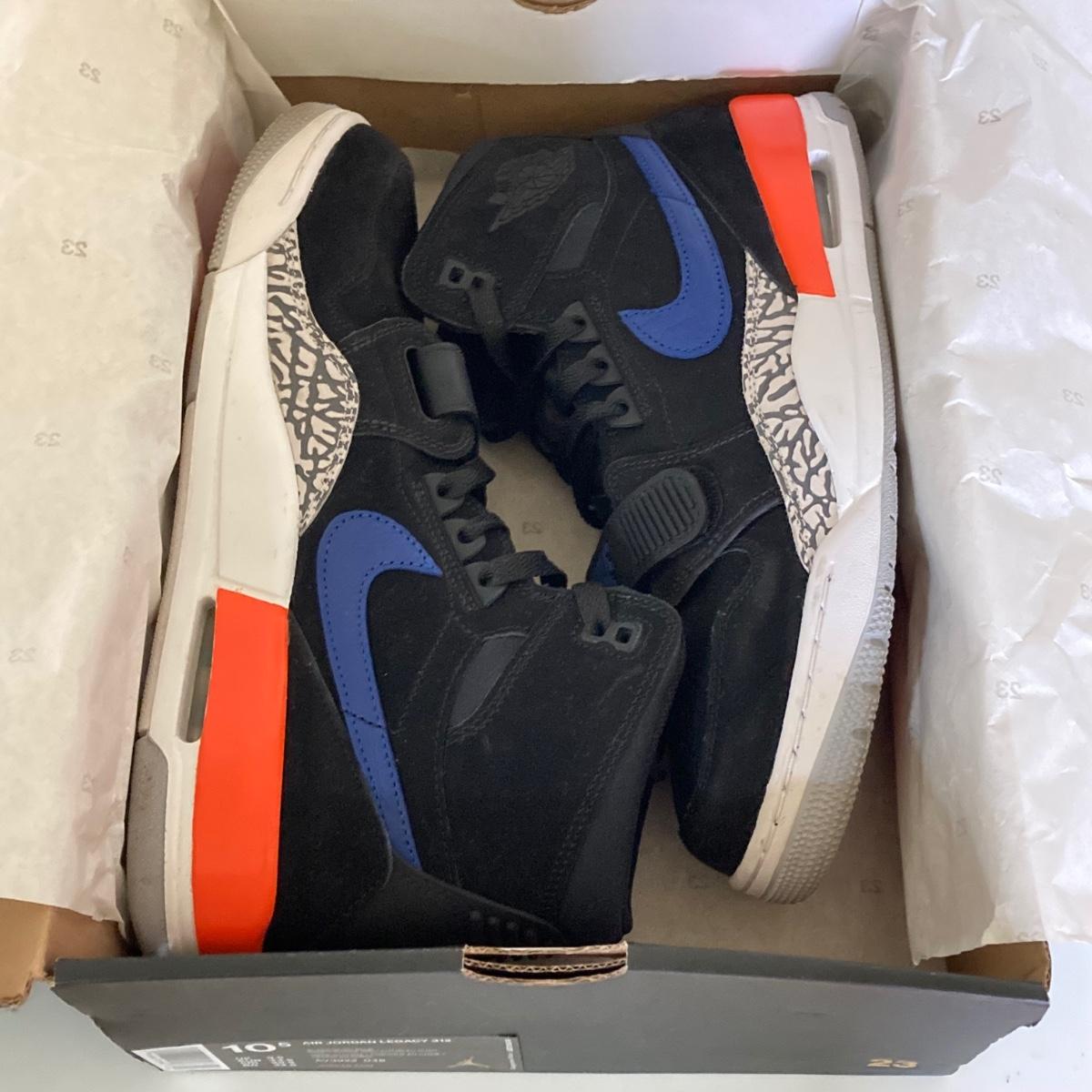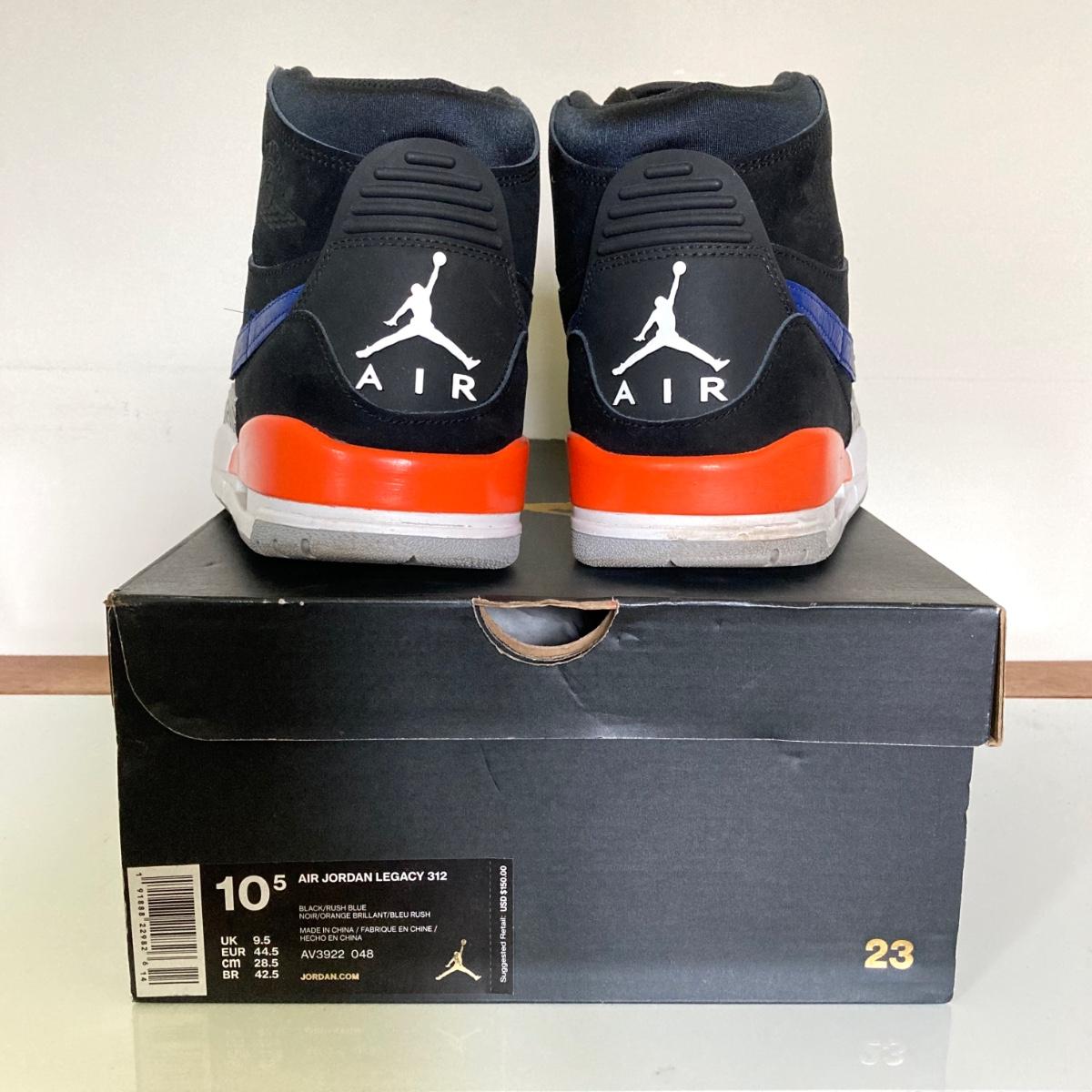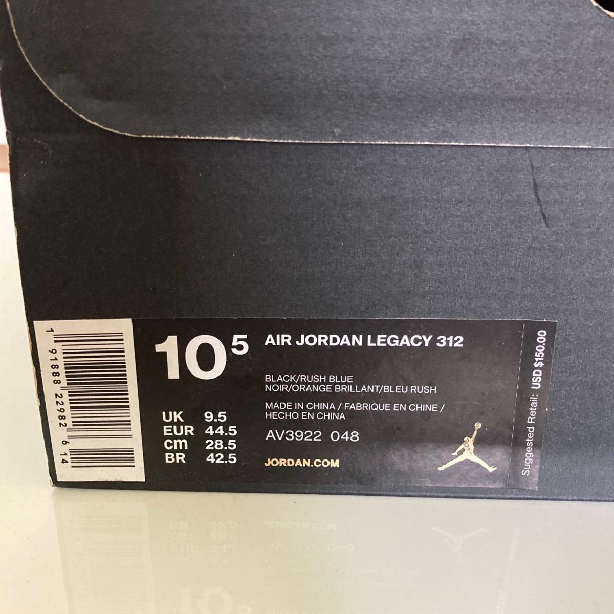 LOT 74: Nike Air Jordan Legacy 312 Black / Rush Blue Sneakers - US Size 10.5 in Original Box AV3922 048