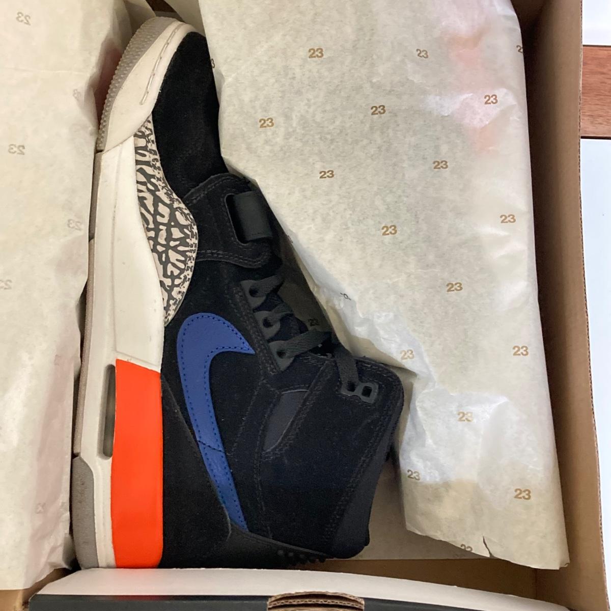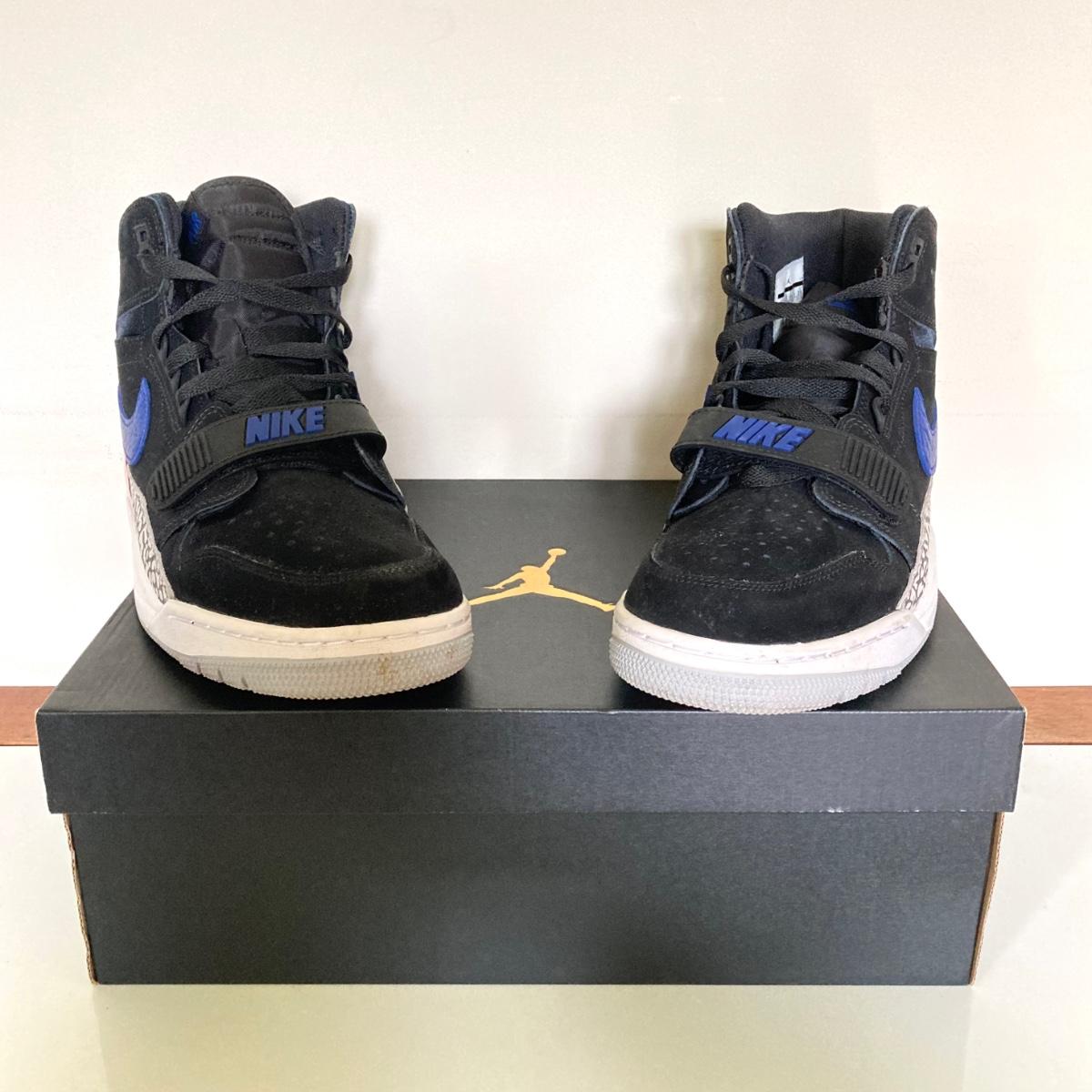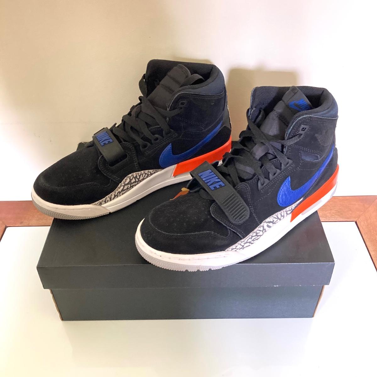LOT 74: Nike Air Jordan Legacy 312 Black / Rush Blue Sneakers - US Size 10.5 in Original Box AV3922 048