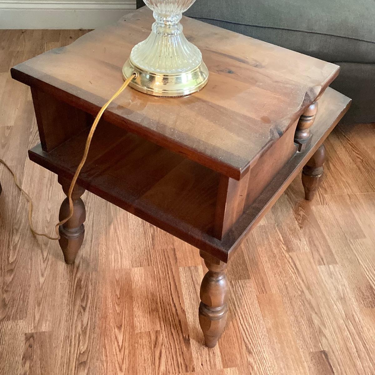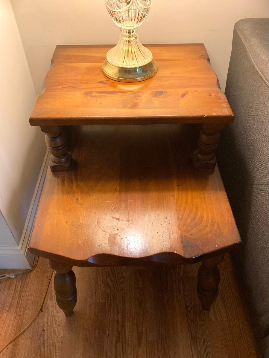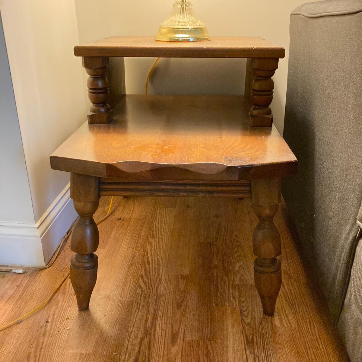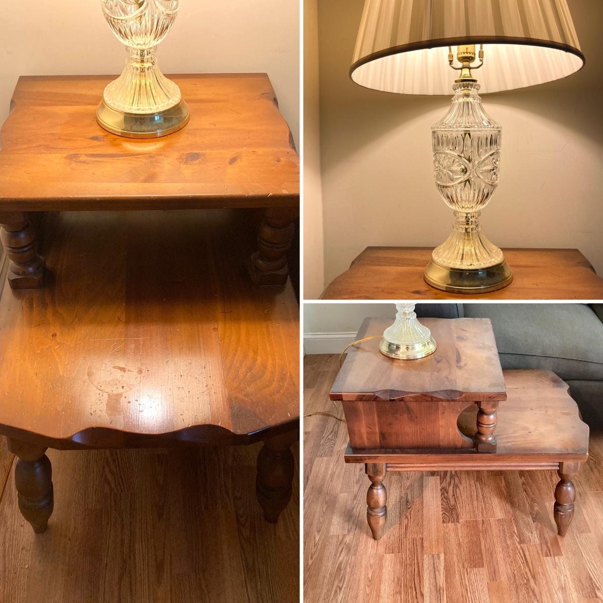LOT 78: Vintage Wooden 2-Tier End Table with Glass Table Lamp