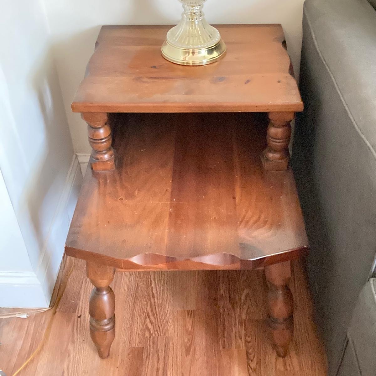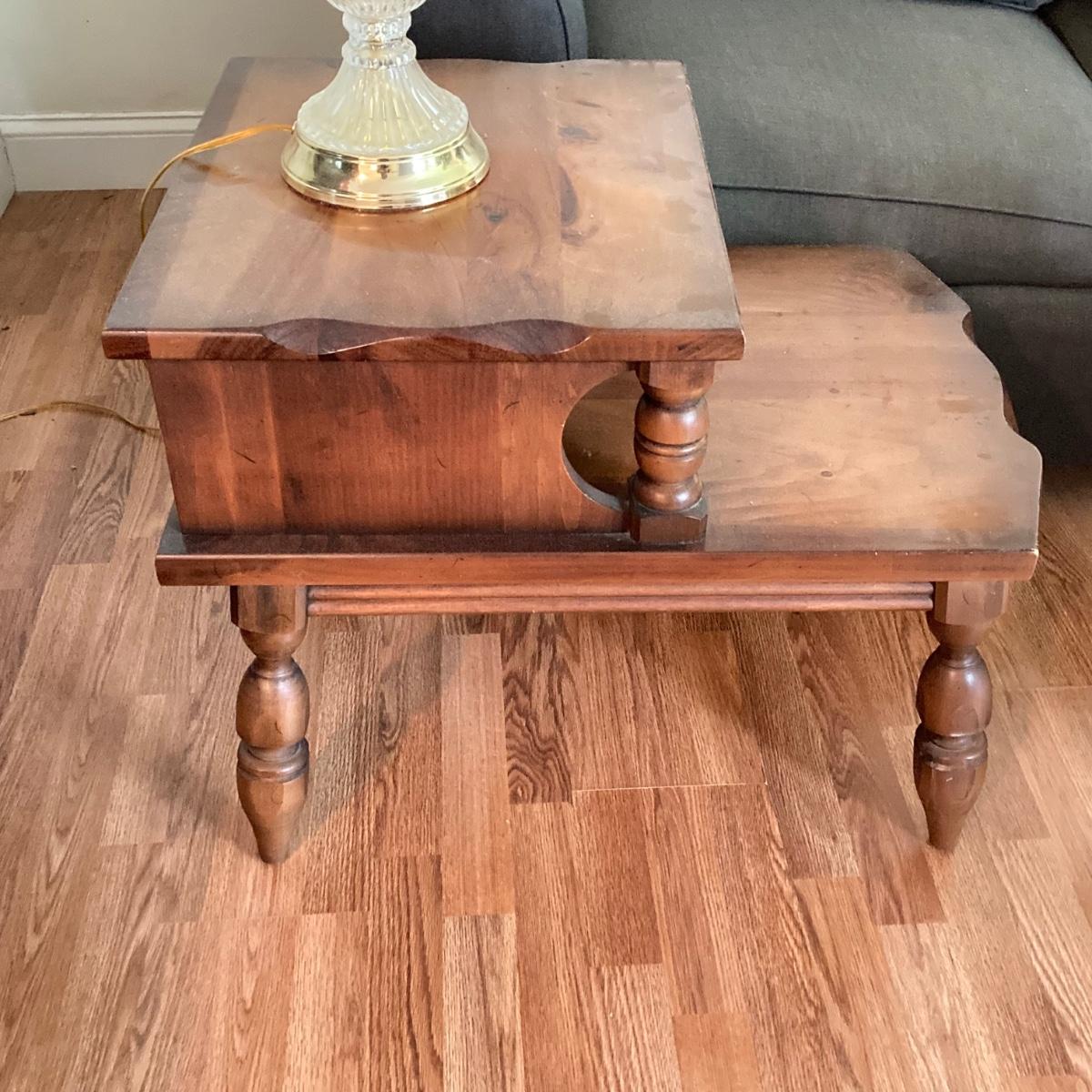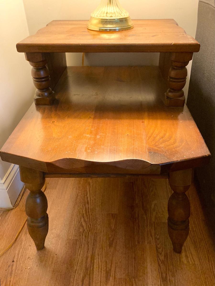 LOT 78: Vintage Wooden 2-Tier End Table with Glass Table Lamp