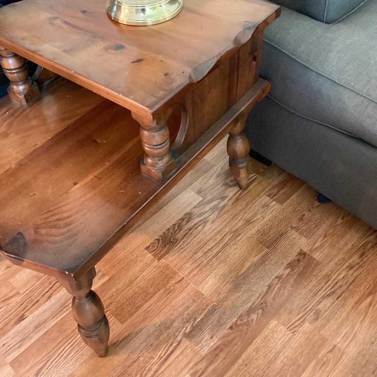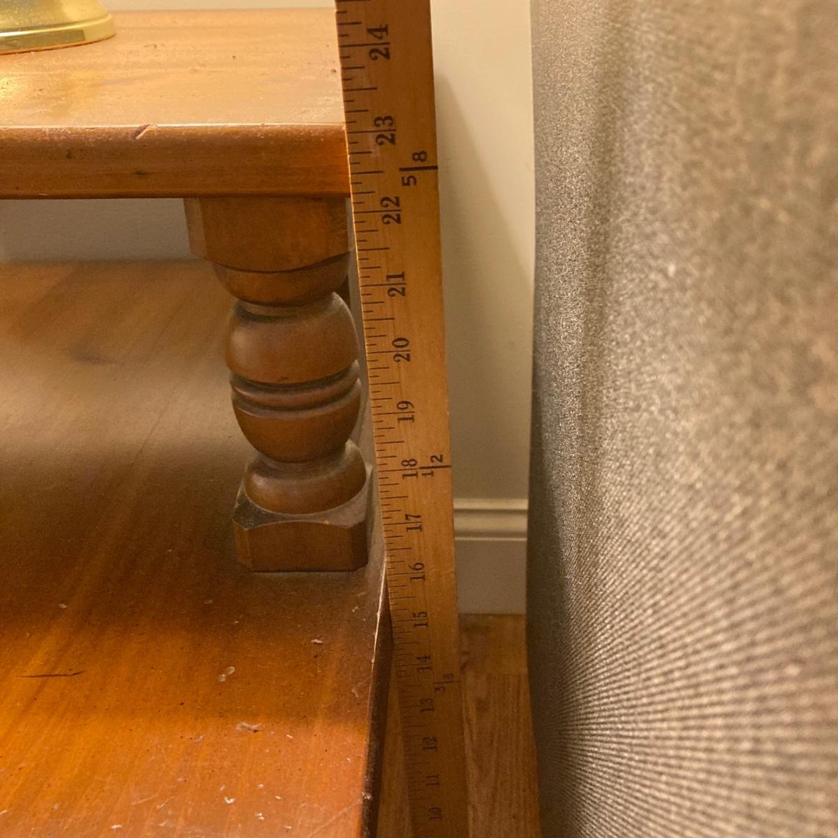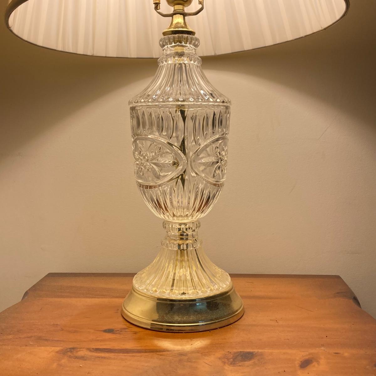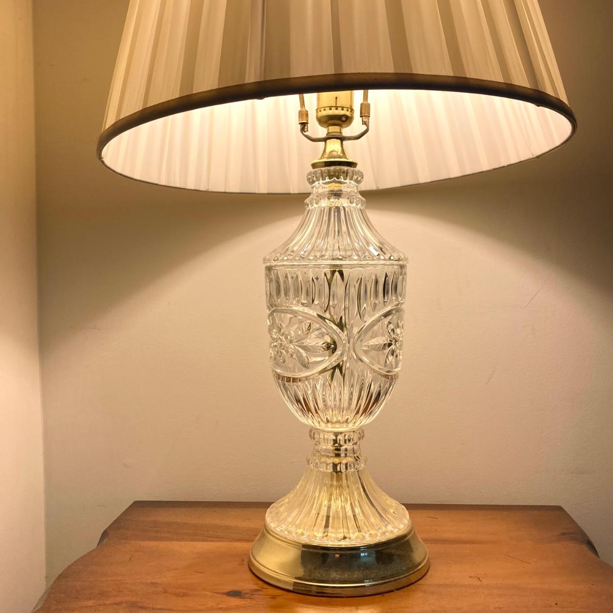 LOT 78: Vintage Wooden 2-Tier End Table with Glass Table Lamp