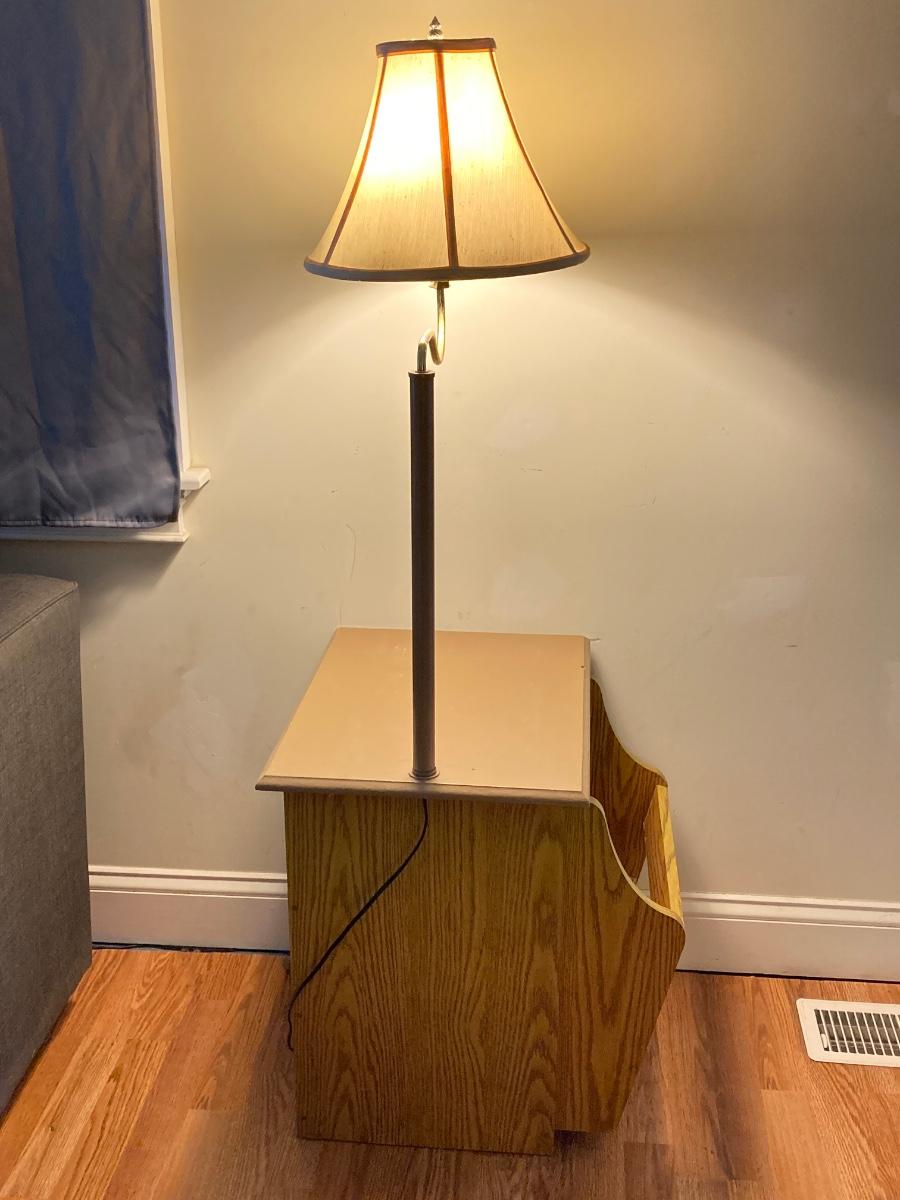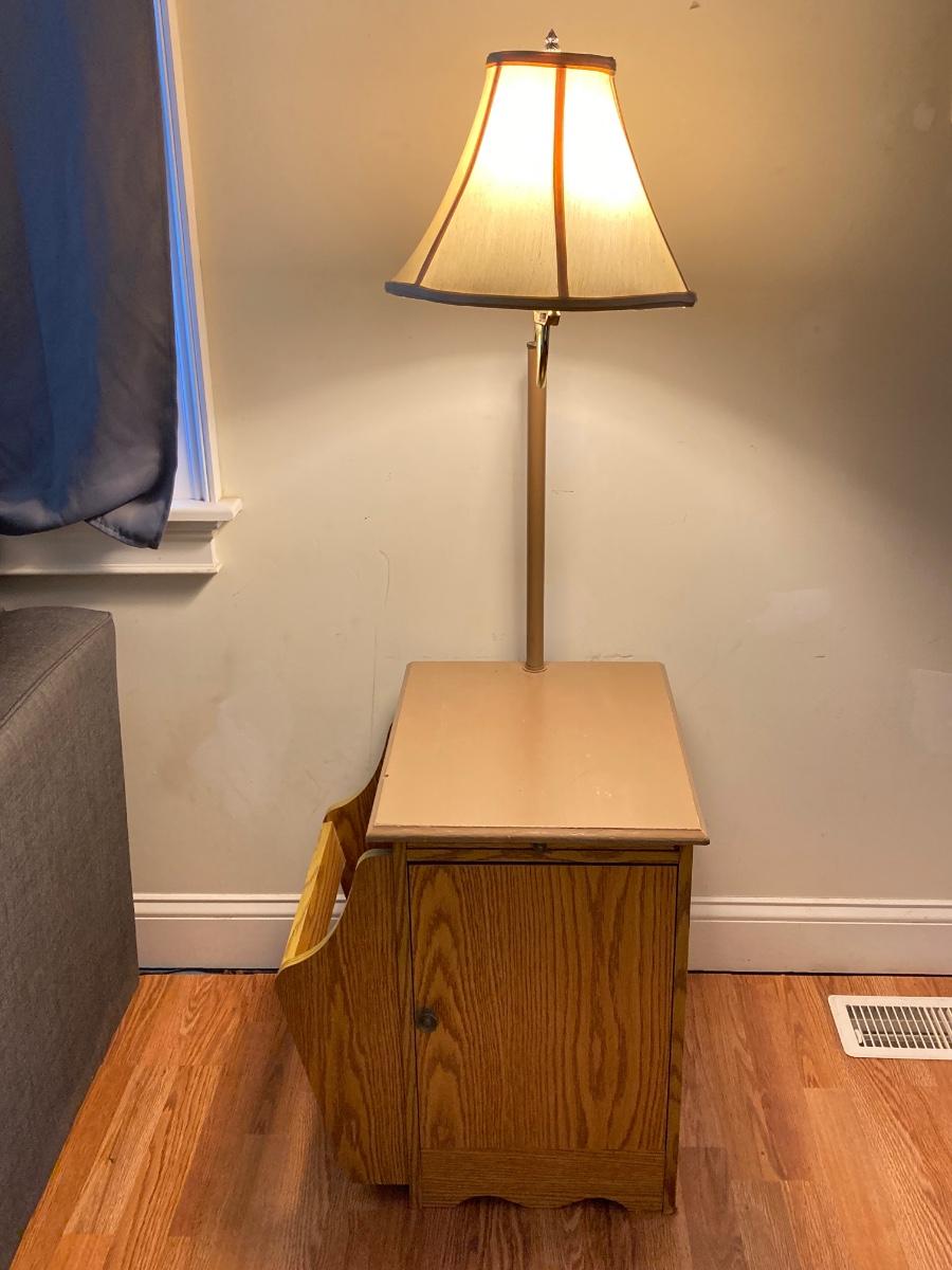 LOT 80: End Table Floor Lamp Cabinet Rack Combo
