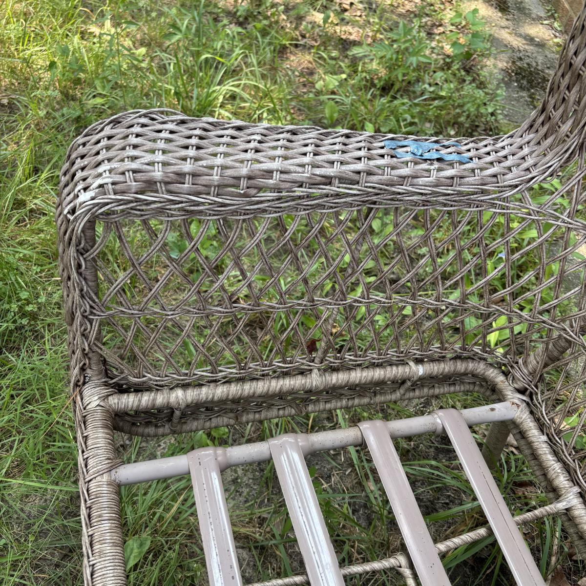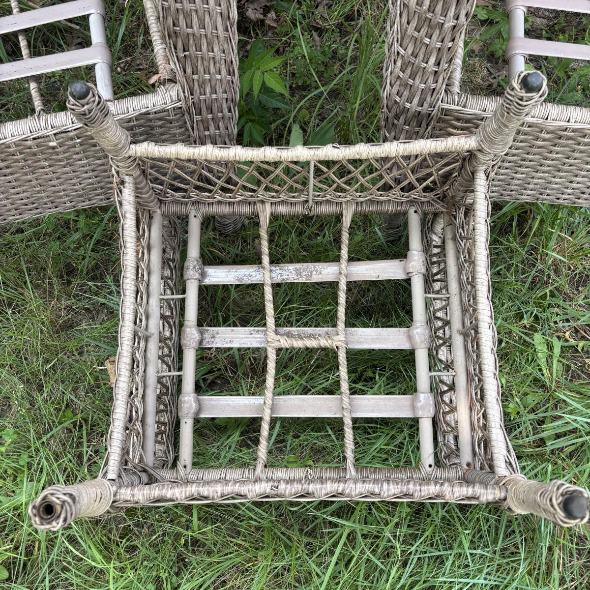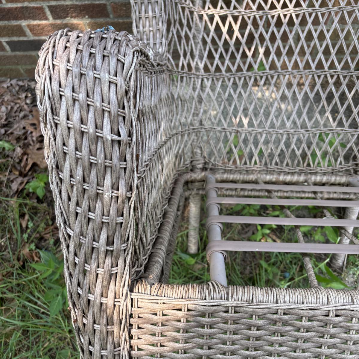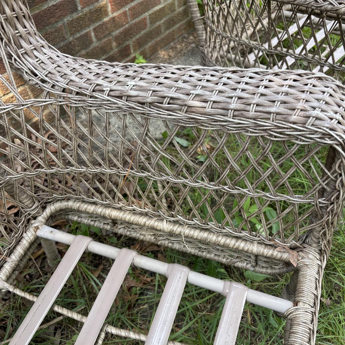 Furniture is in as found condition: there are a few breaks in the wicker as pictured, it will need a little refurbishing to restore to original beauty.