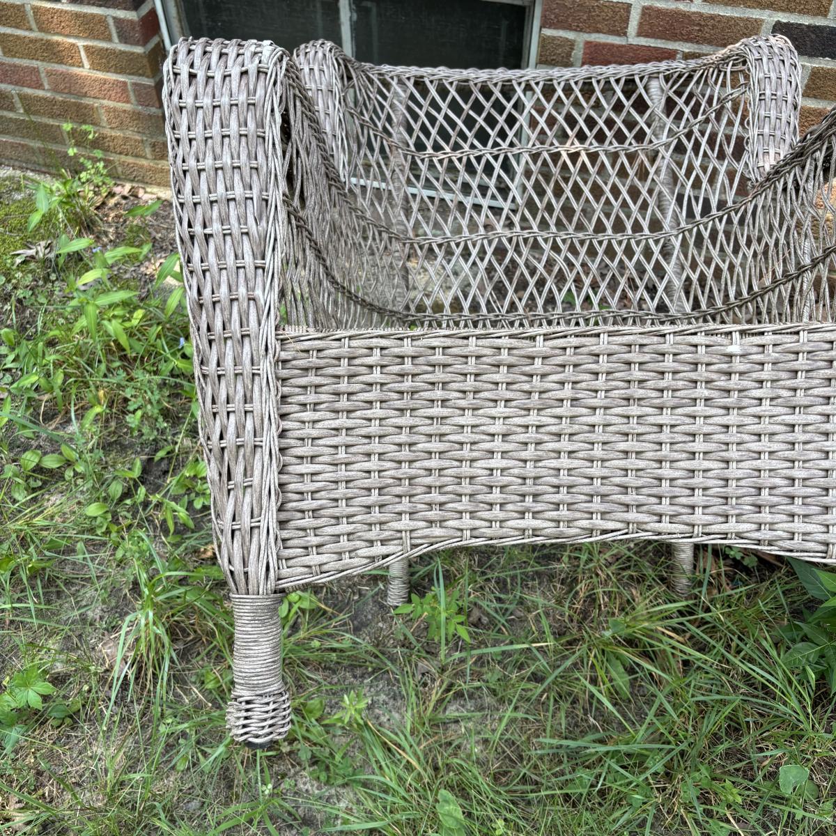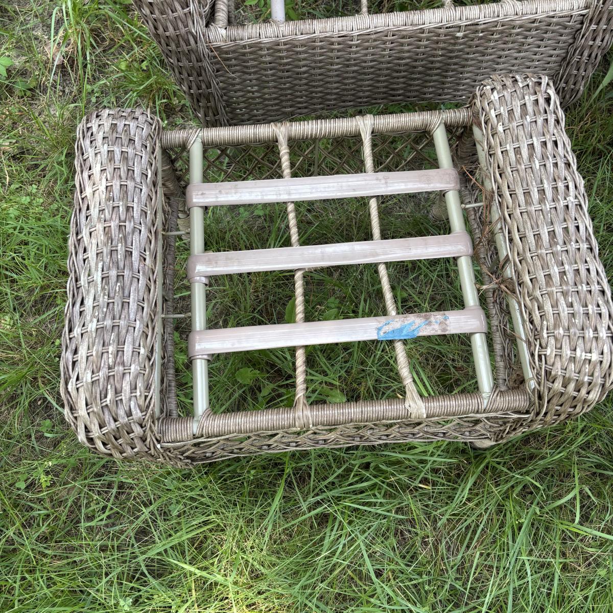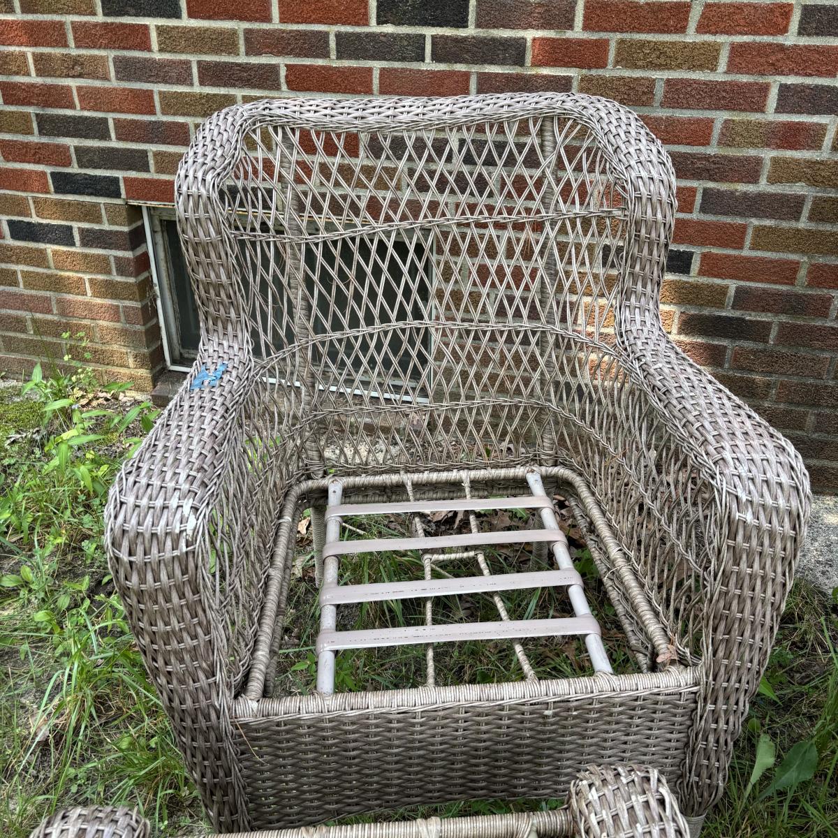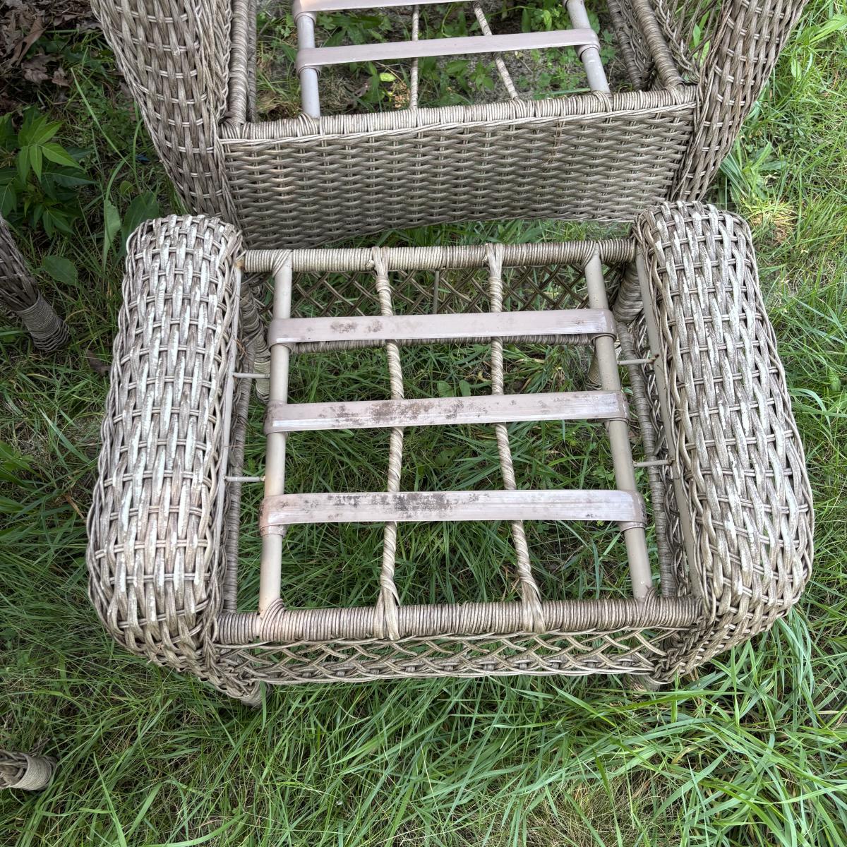 Furniture is in as found condition: there are a few breaks in the wicker as pictured, it will need a little refurbishing to restore to original beauty.