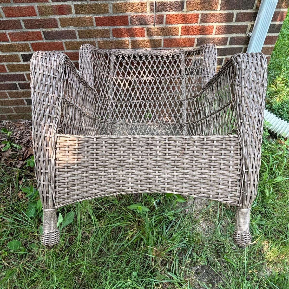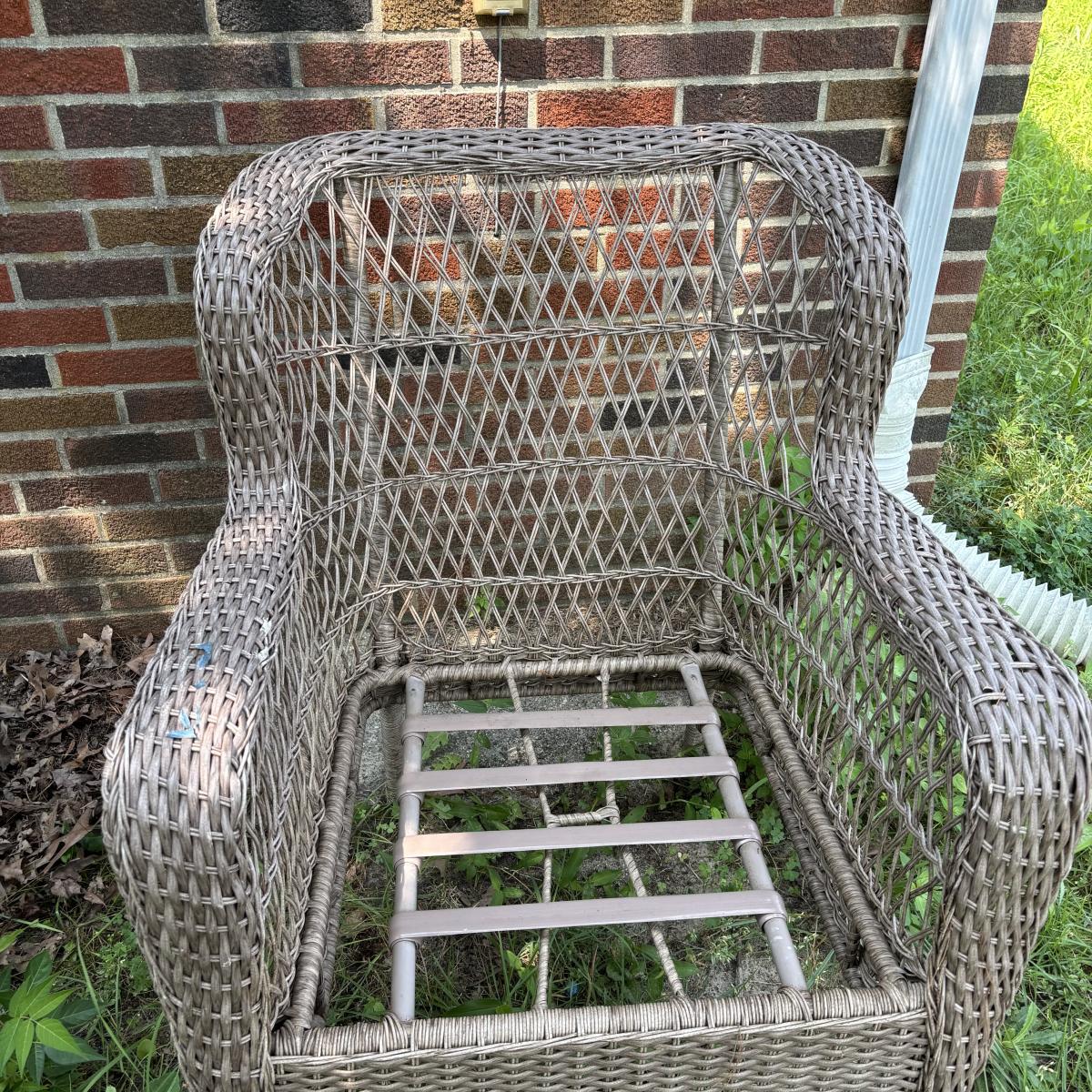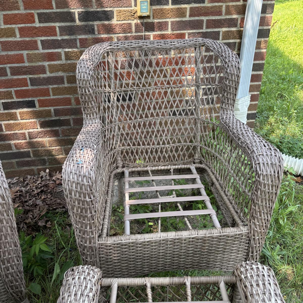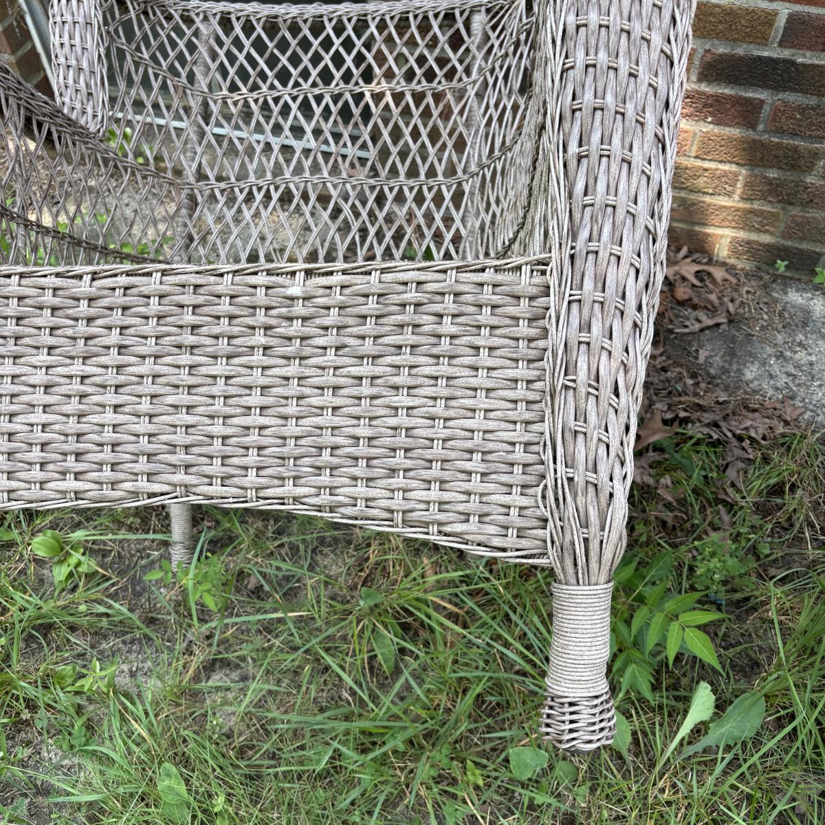 Furniture is in as found condition: there are a few breaks in the wicker as pictured, it will need a little refurbishing to restore to original beauty.