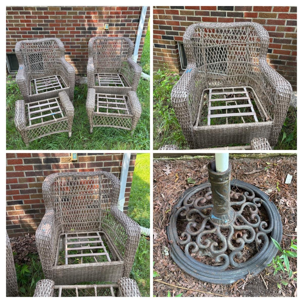 LOT 88: Wicker Patio Furniture & Umbrella Stand
