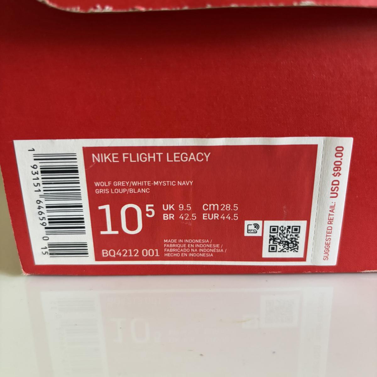 LOT 96: Nike Flight Leacy, Wolf Grey/White-Mystic Navy, Sz 10.5