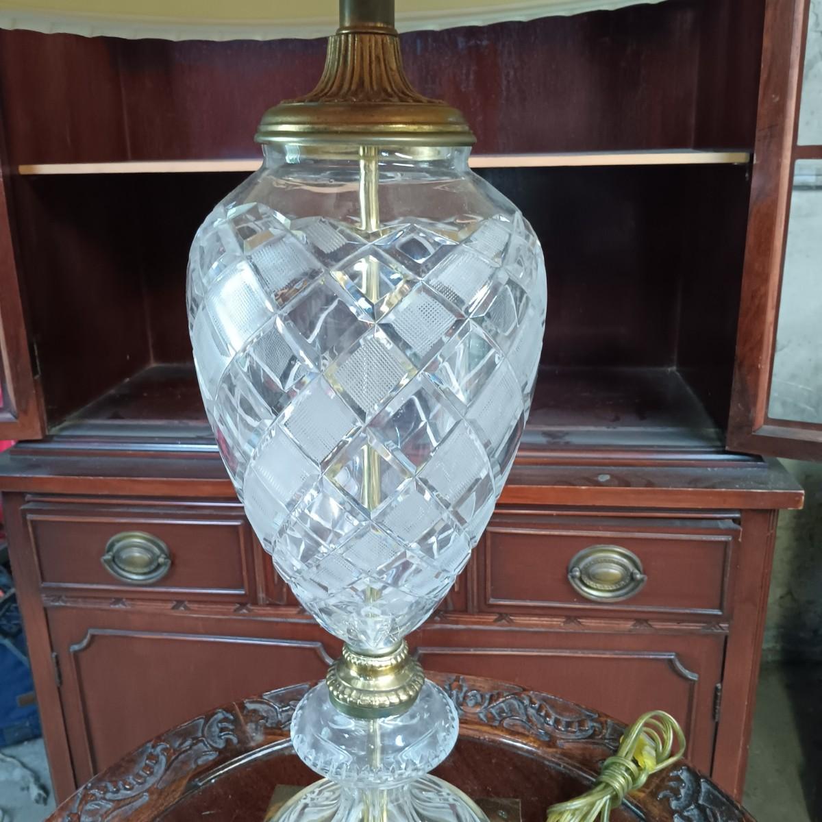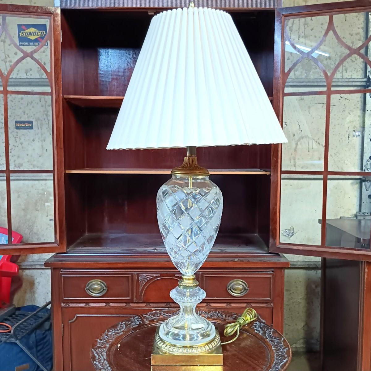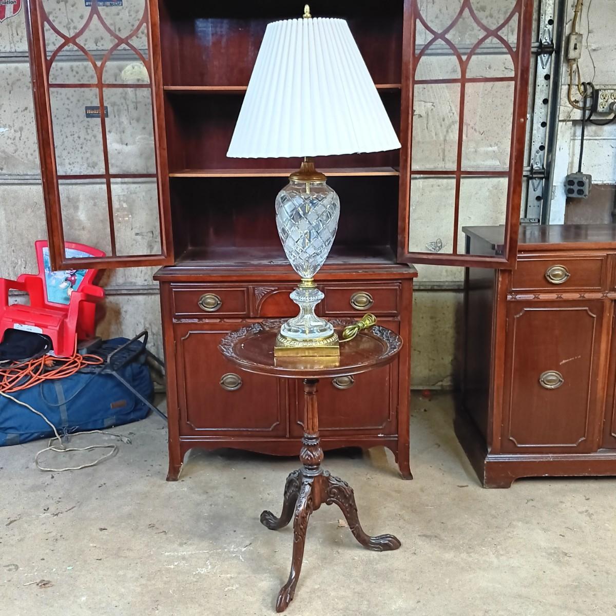 LOT 116: Western Germany Handcut Crystal and Metal Lamp with Antique Side Table