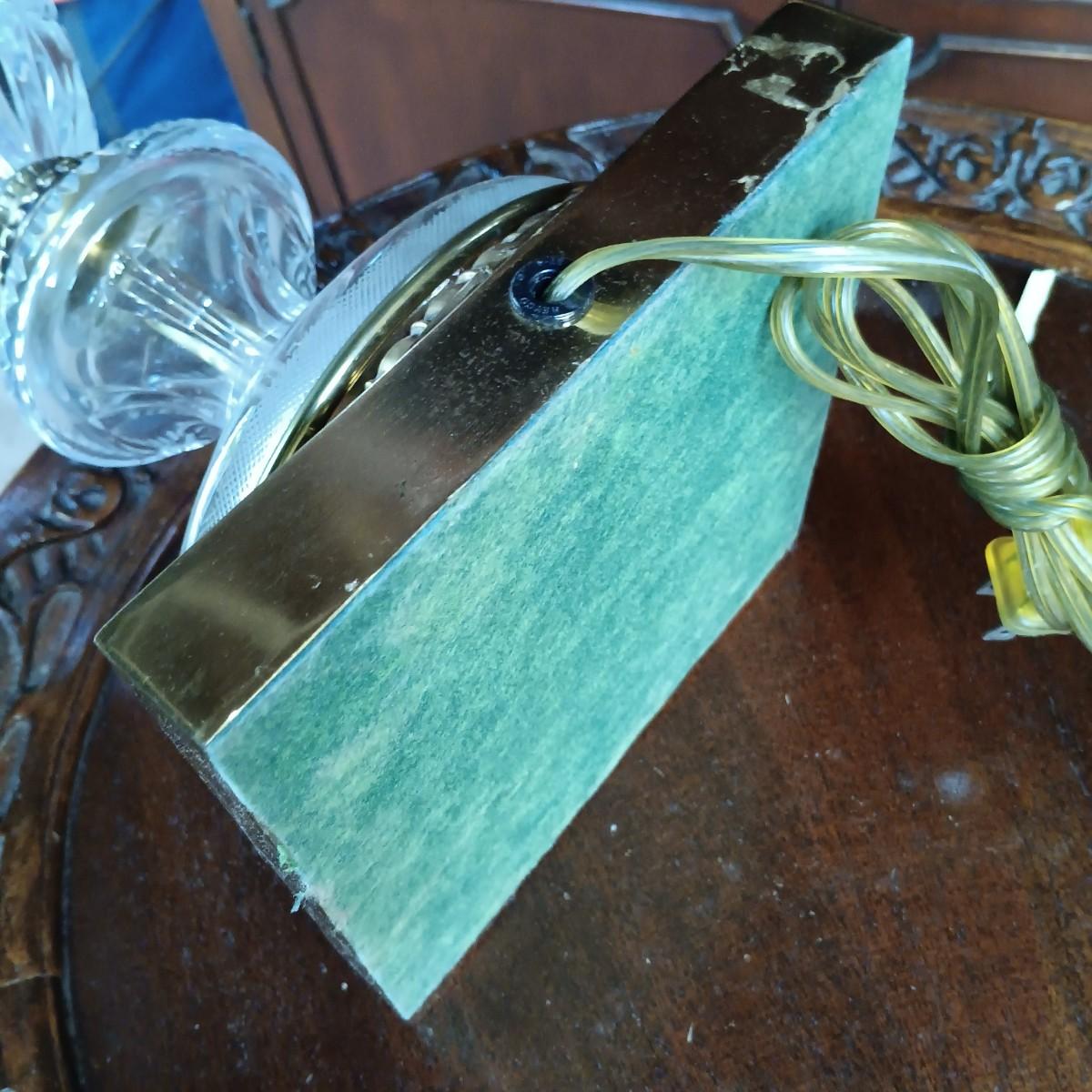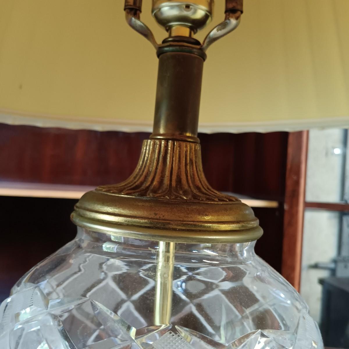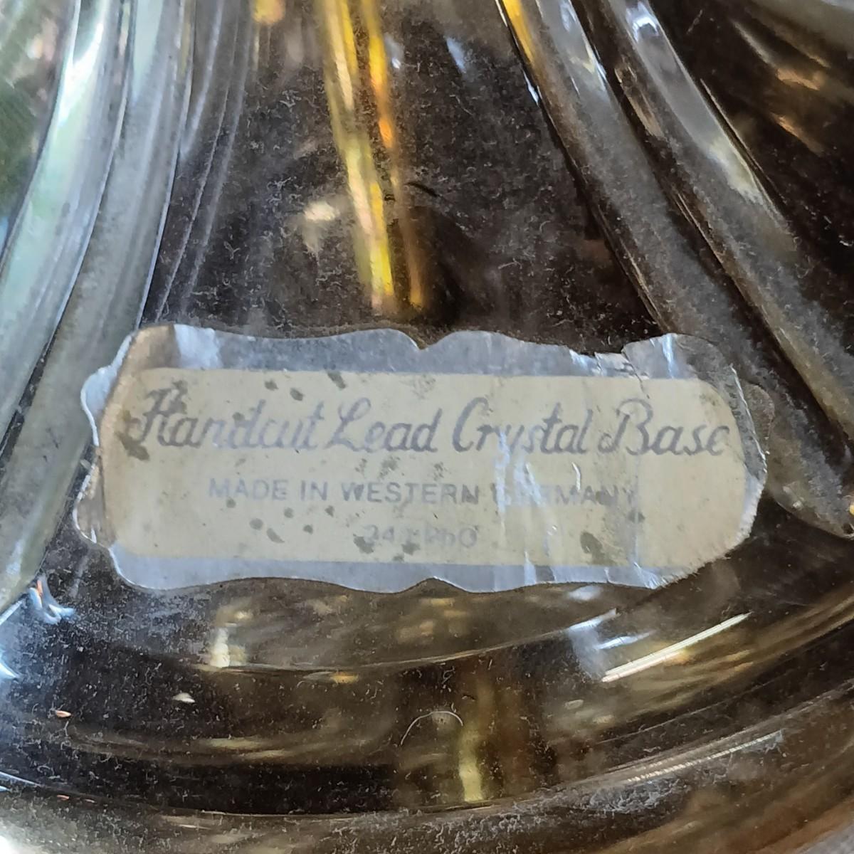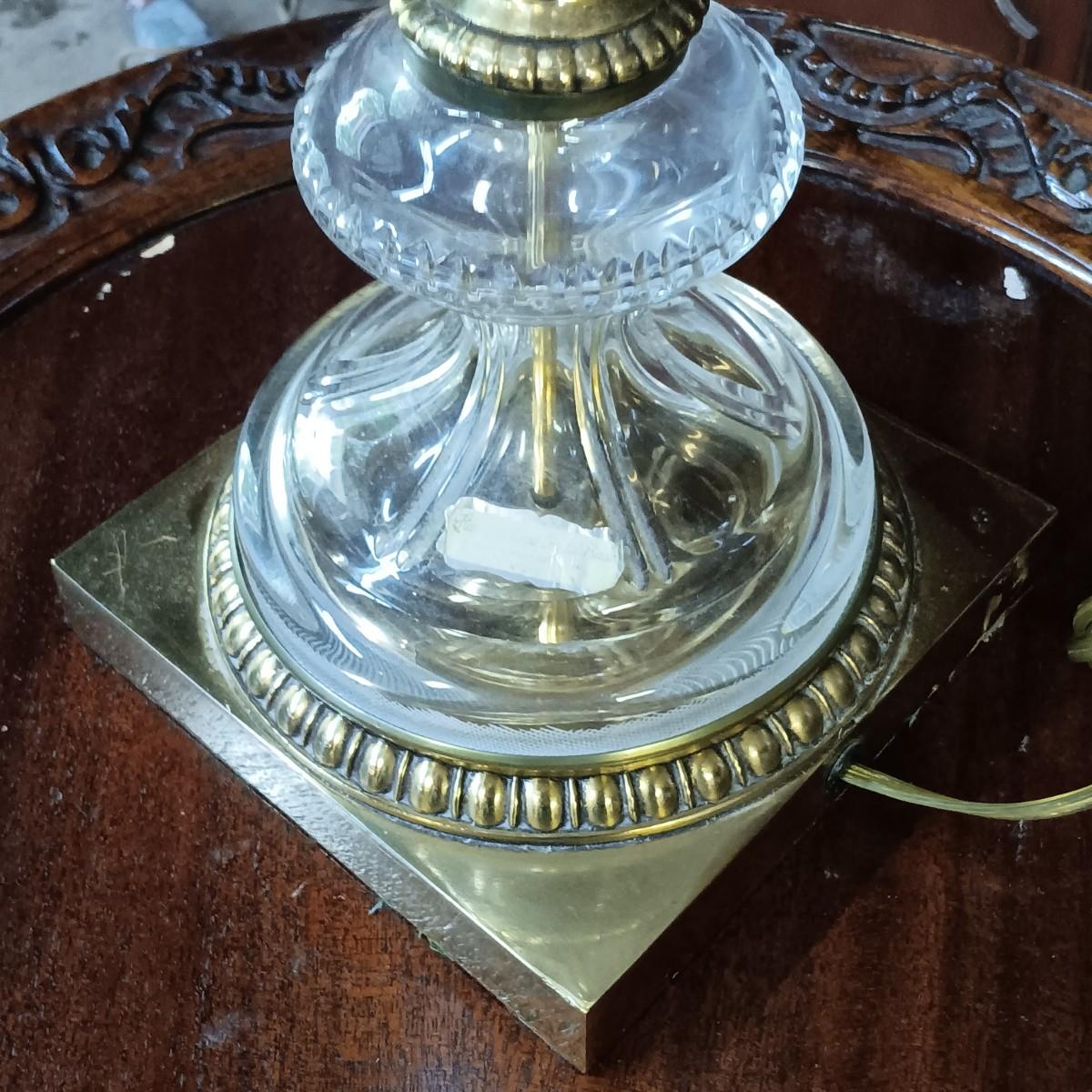 LOT 116: Western Germany Handcut Crystal and Metal Lamp with Antique Side Table