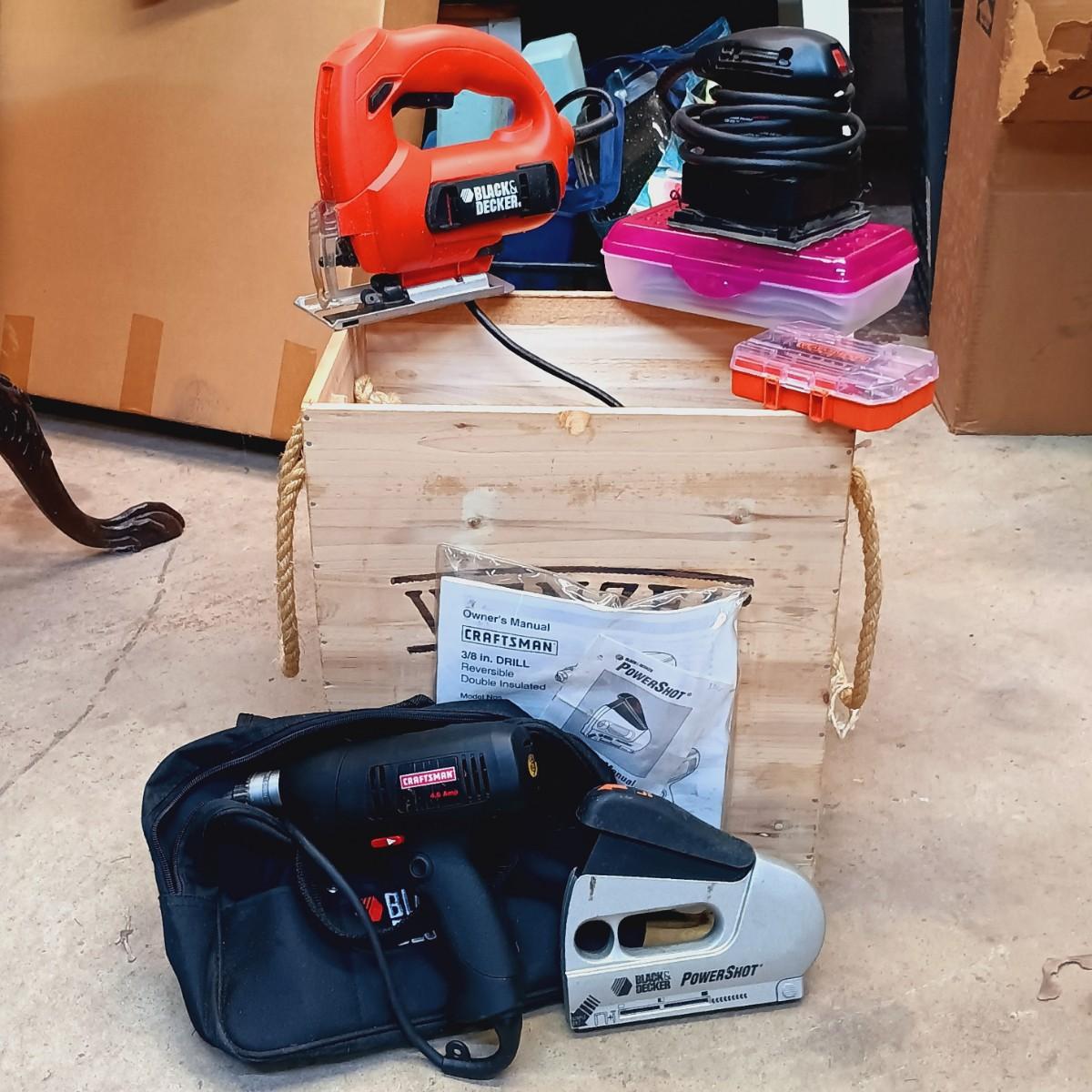 LOT 120: Black&Decker JS500 Jigsaw, Craftsman 1/4 Sheet Sander, Craftsman 3/8" Corded Drill & More