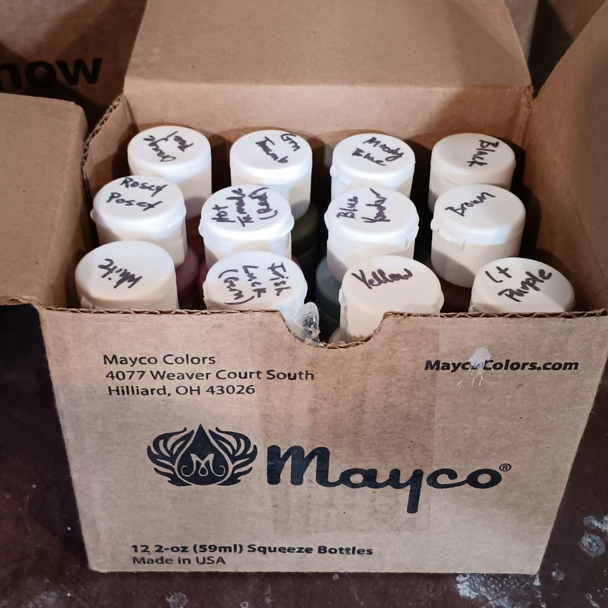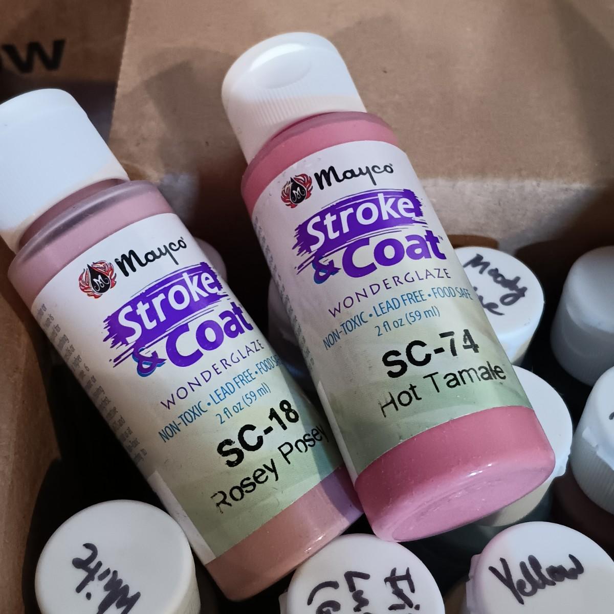 LOT 124: Standard Clay Co. C/4-6 Brown Clay, NIP Wire and Pipes, Marco Wonderglaze Paints, Work Table & More