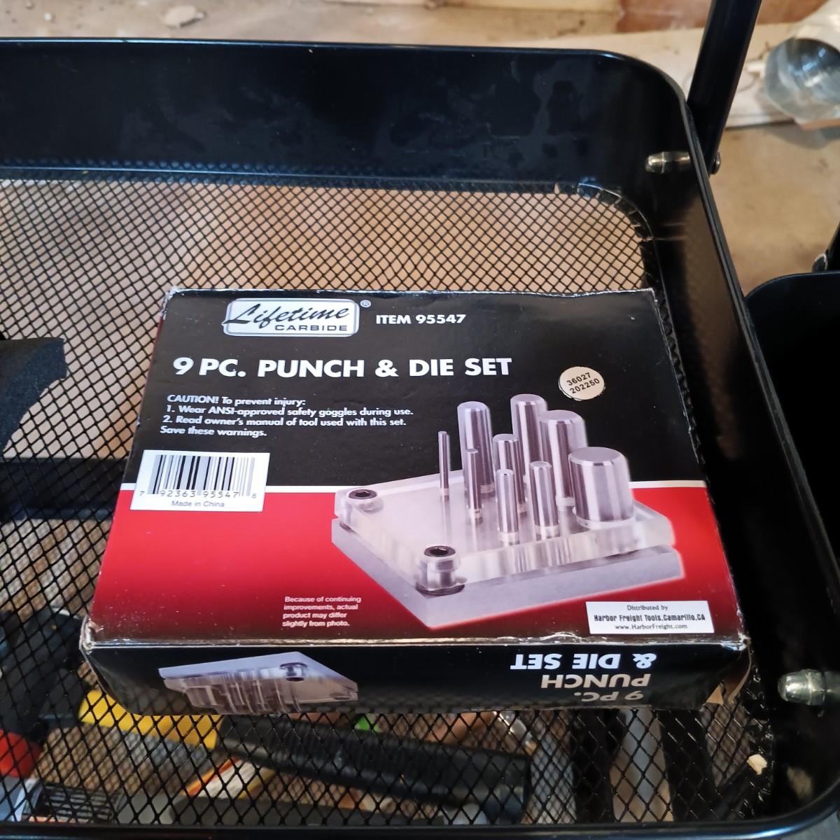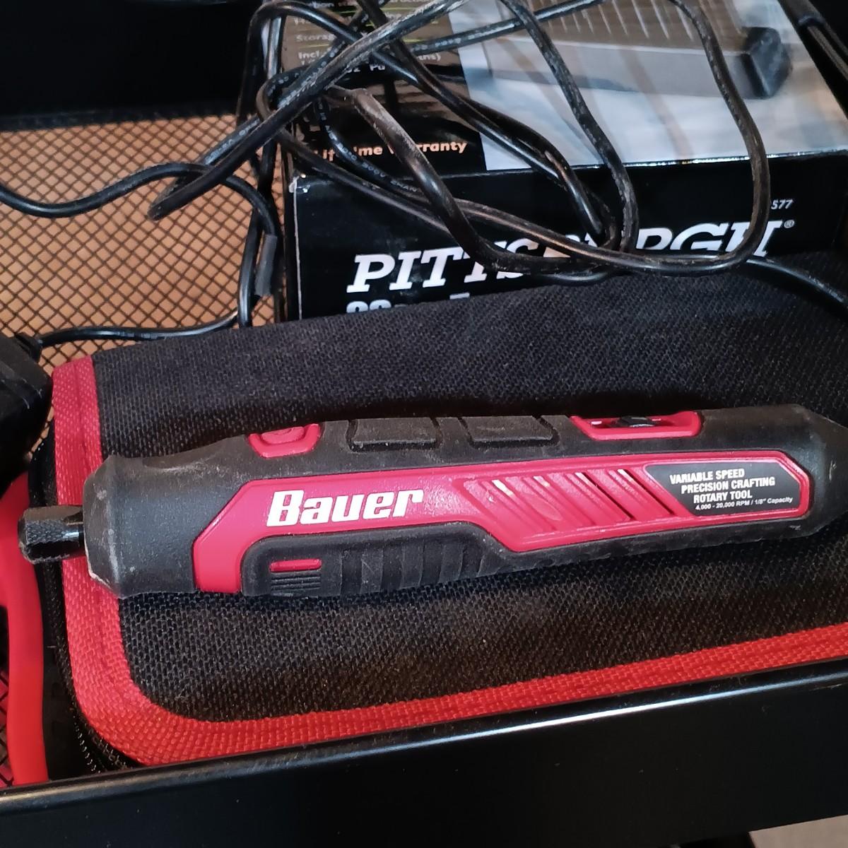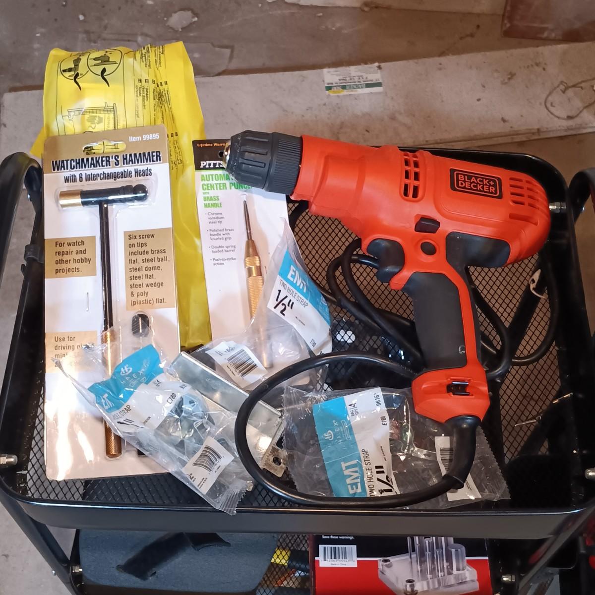 LOT 125: Pair of Metal Trolleys with Bauer Rotary Tool, Punch Sets, Black&Decker 3/8" Corded Drill & More