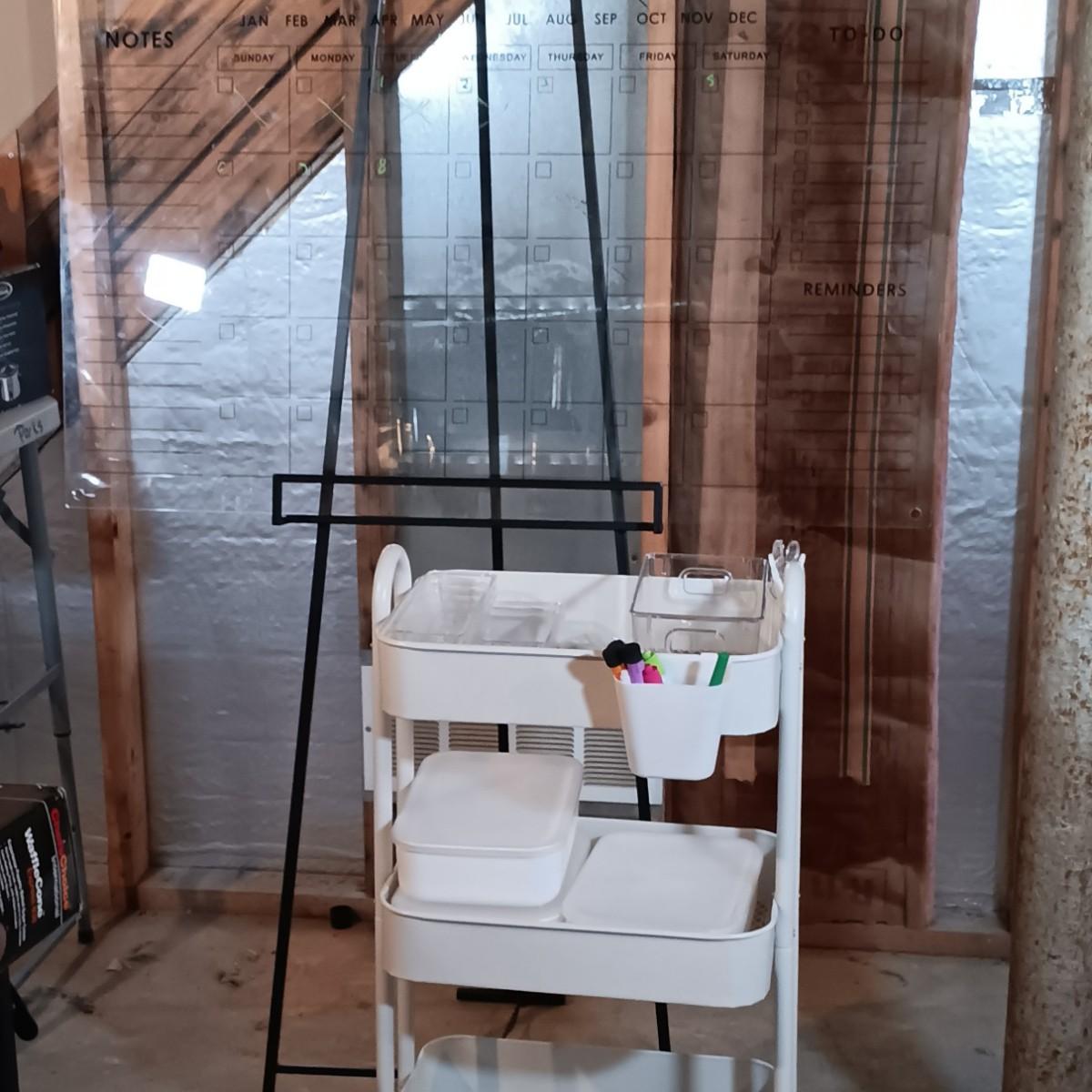 LOT 127: Large Acrylic Dry Erase Board Calendar with Easel, Metal Trolley & More
