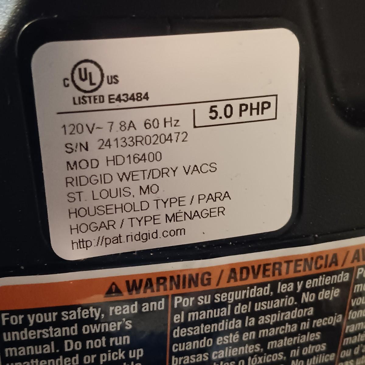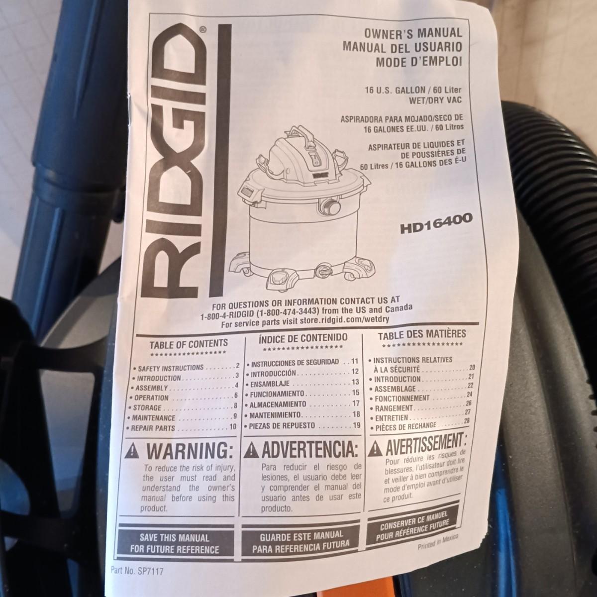 LOT 129: Ridgid HD16400 Wet Dry Shop-Vac