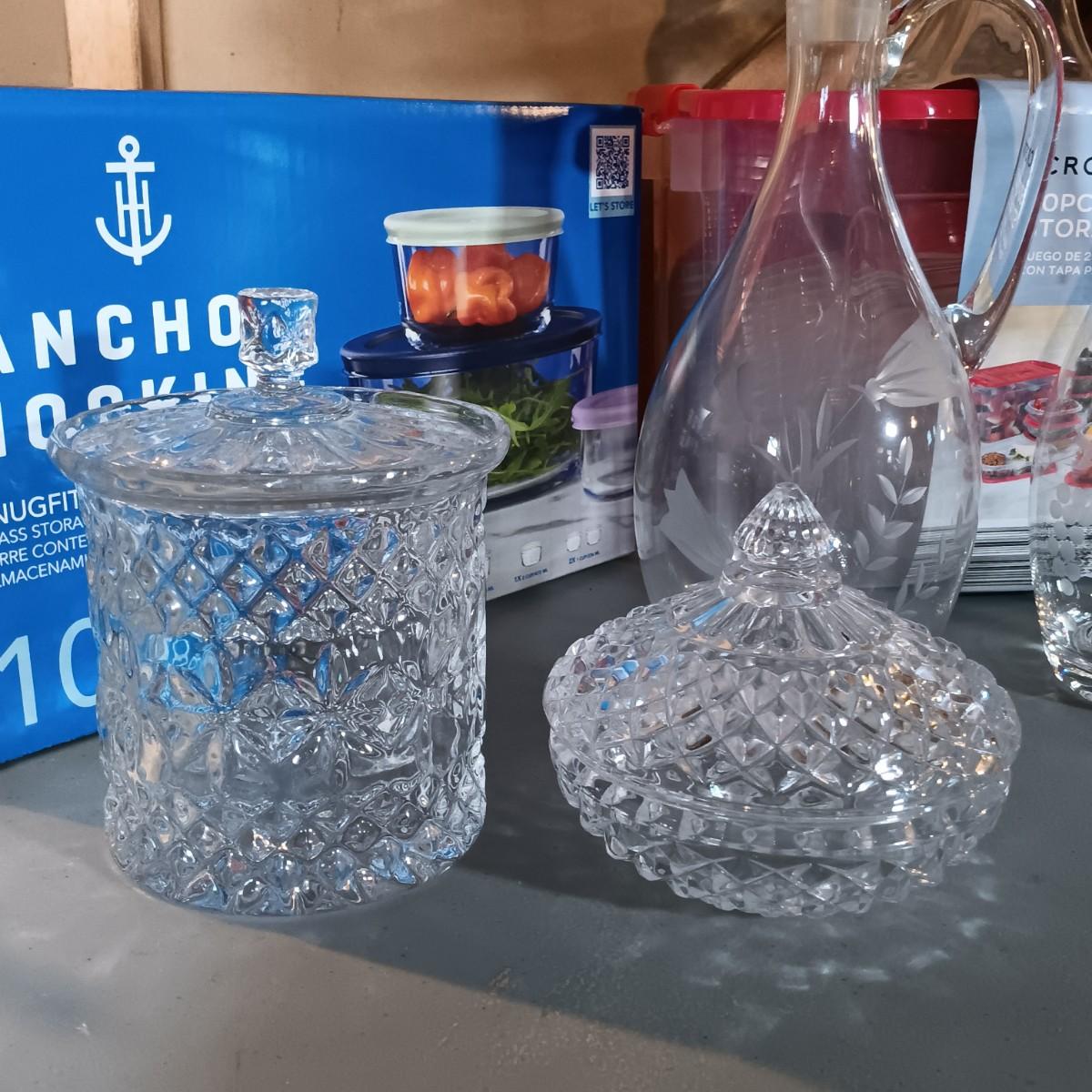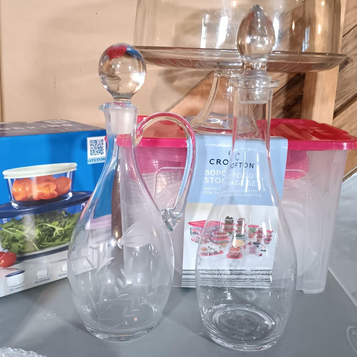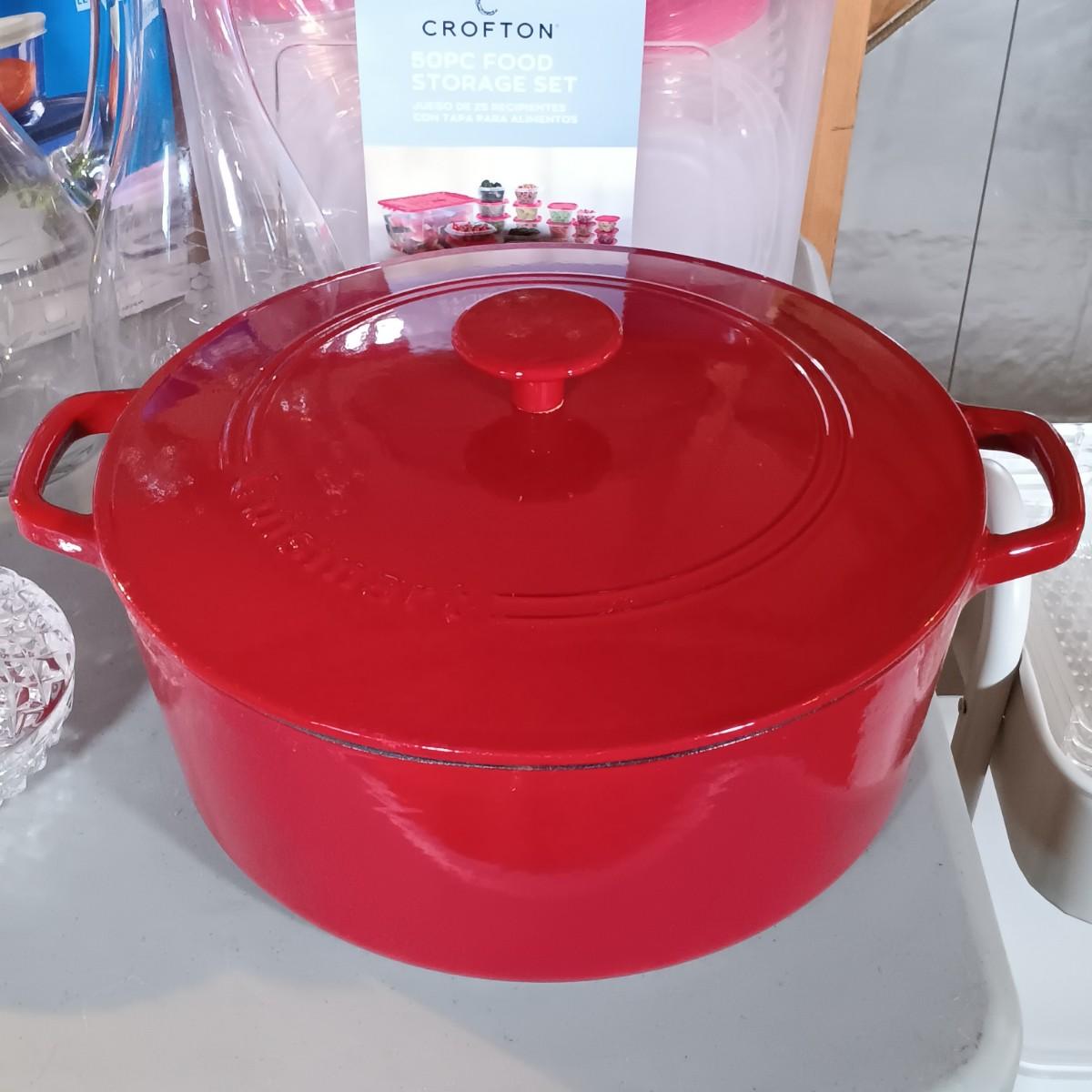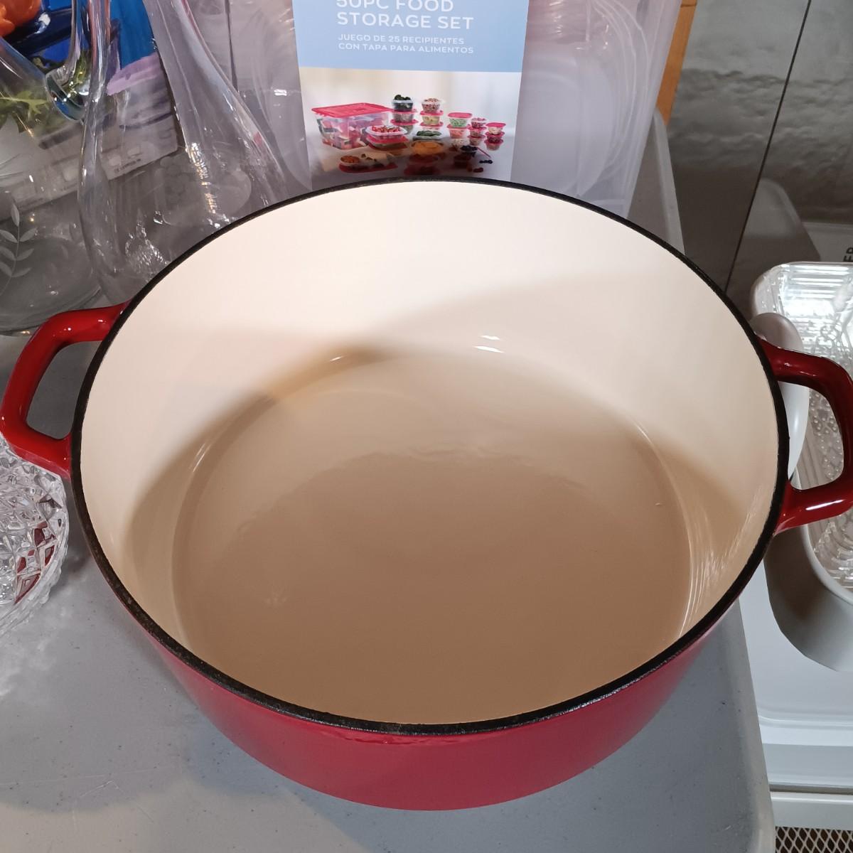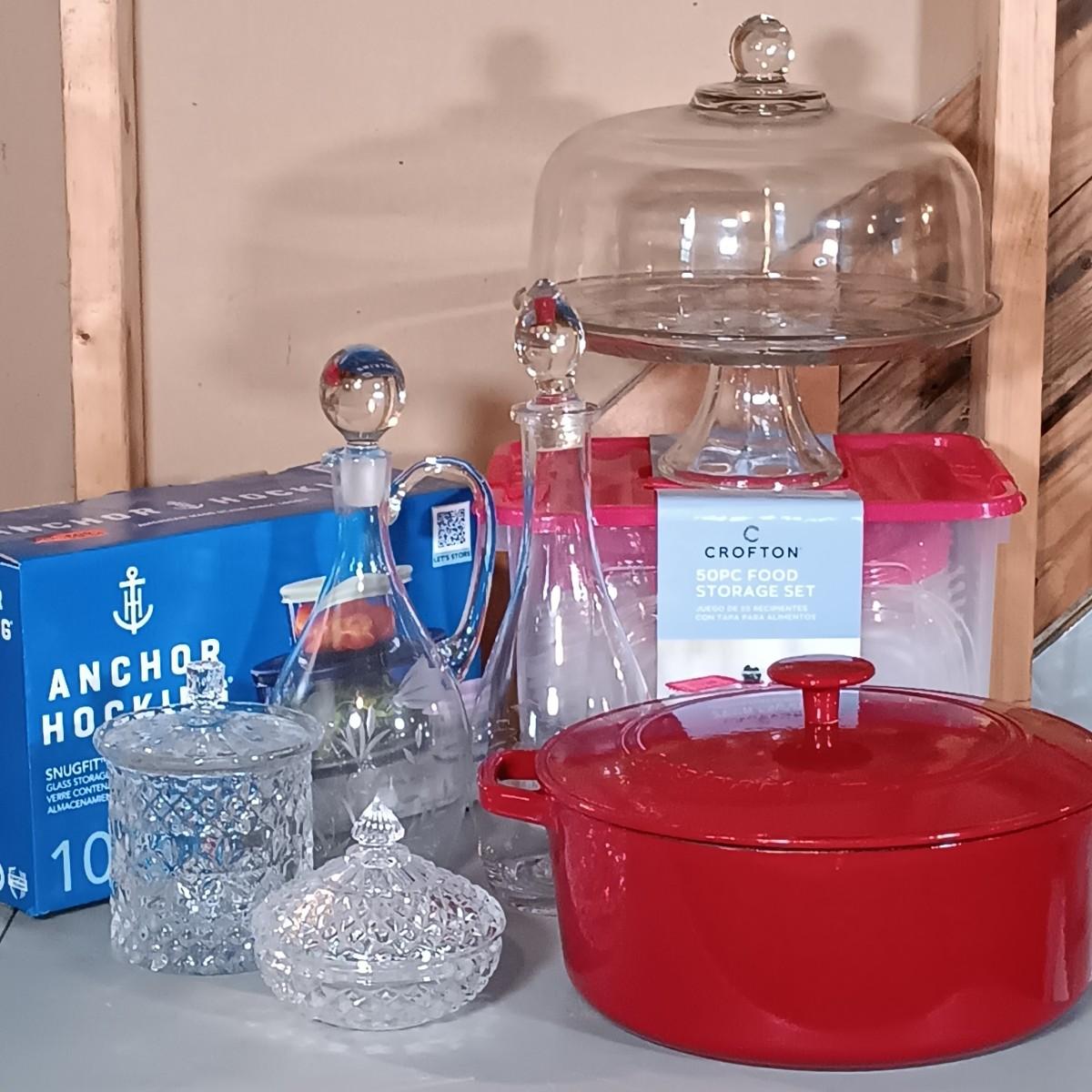 LOT 130: Cuisinart 7qt Enameled Cast Iron Casserole Dish with NIP Storage Containers & Glassware
