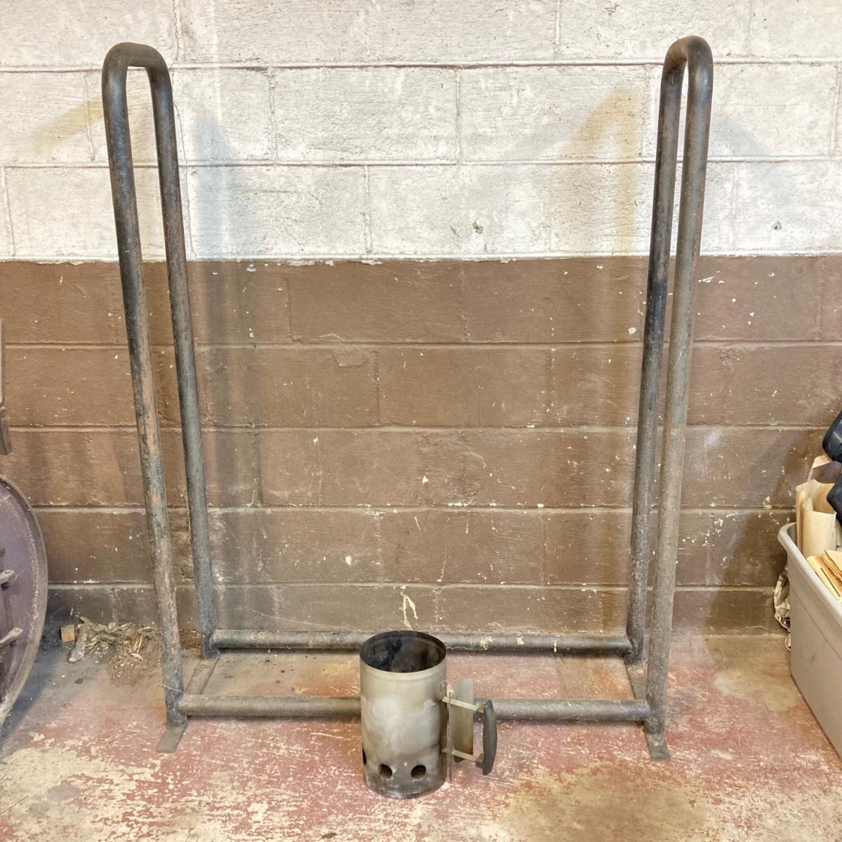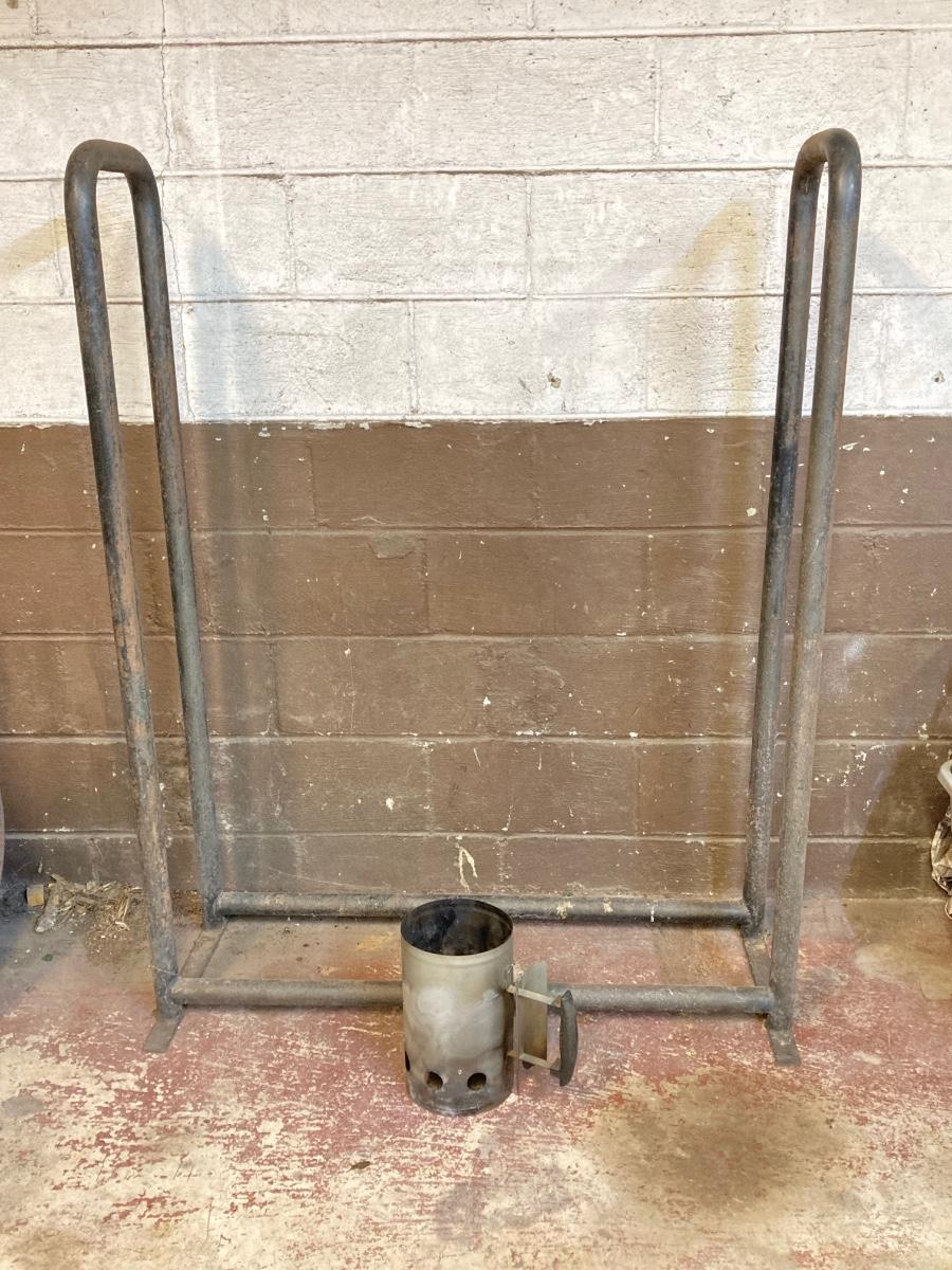 LOT 220: Heavy Duty Metal Firewood Log Storage Rack with Charcoal Chimney Starter