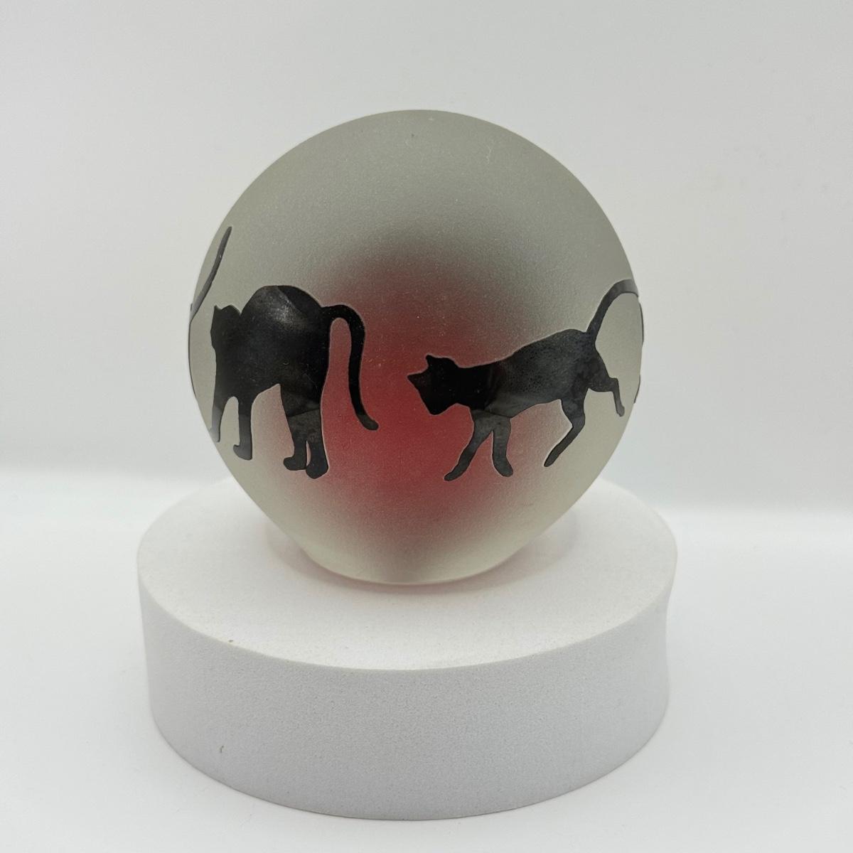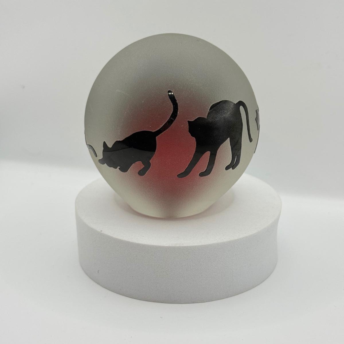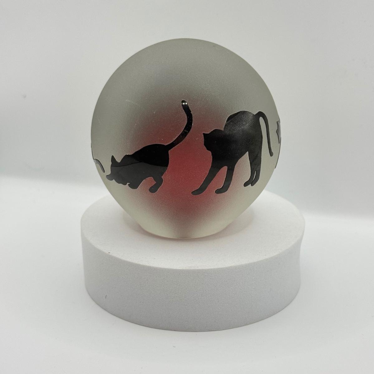 LOT 6K: Signed Stretching Cat Glass Globe Paperweight