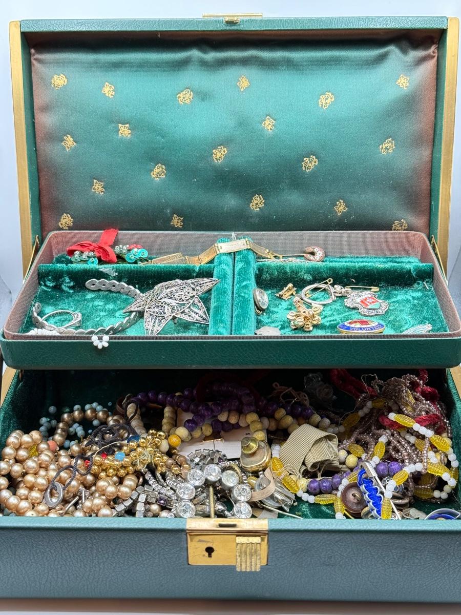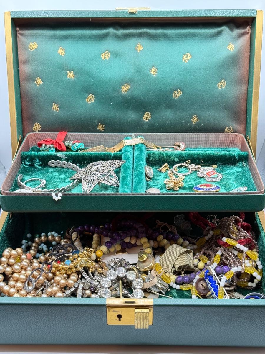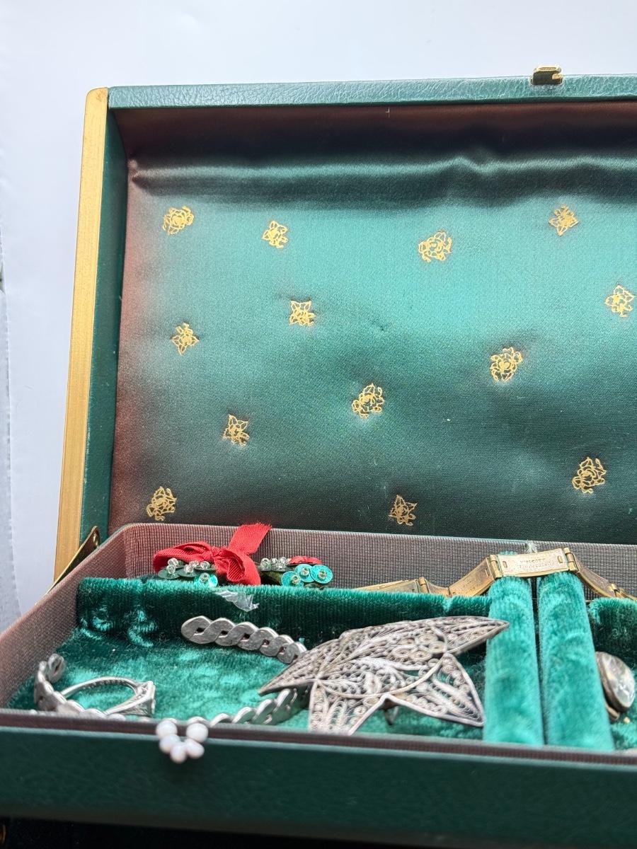 LOT 11K: Craft Jewelry Lot in Vintage Green Jewelry Box