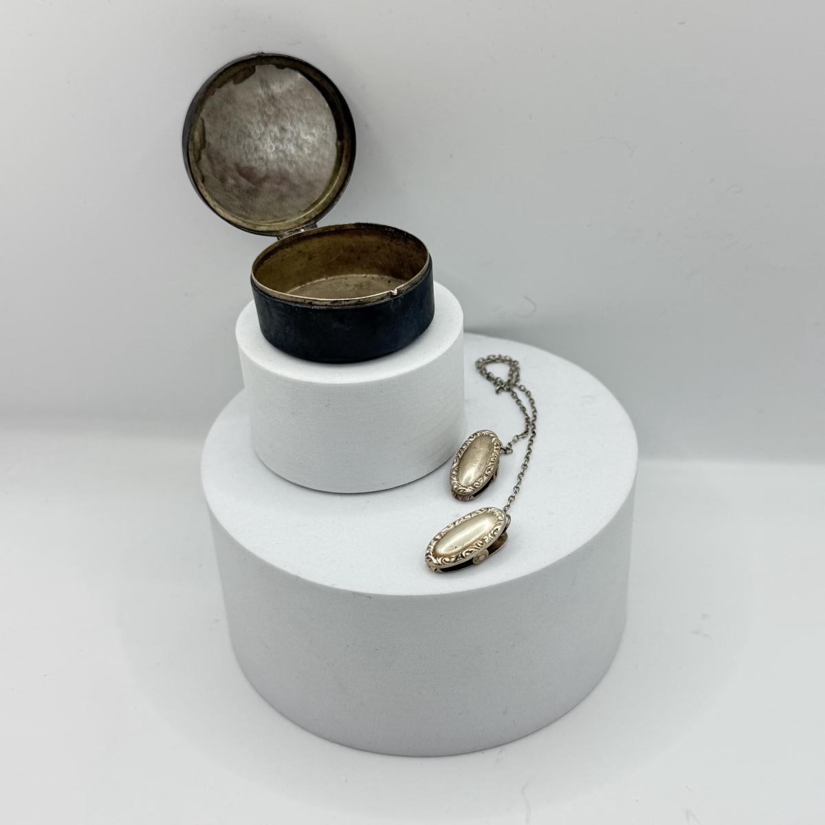 LOT 12J: Vintage Sterling Silver Pill Case / Compact & Sweater Clip (30.79gtw)
