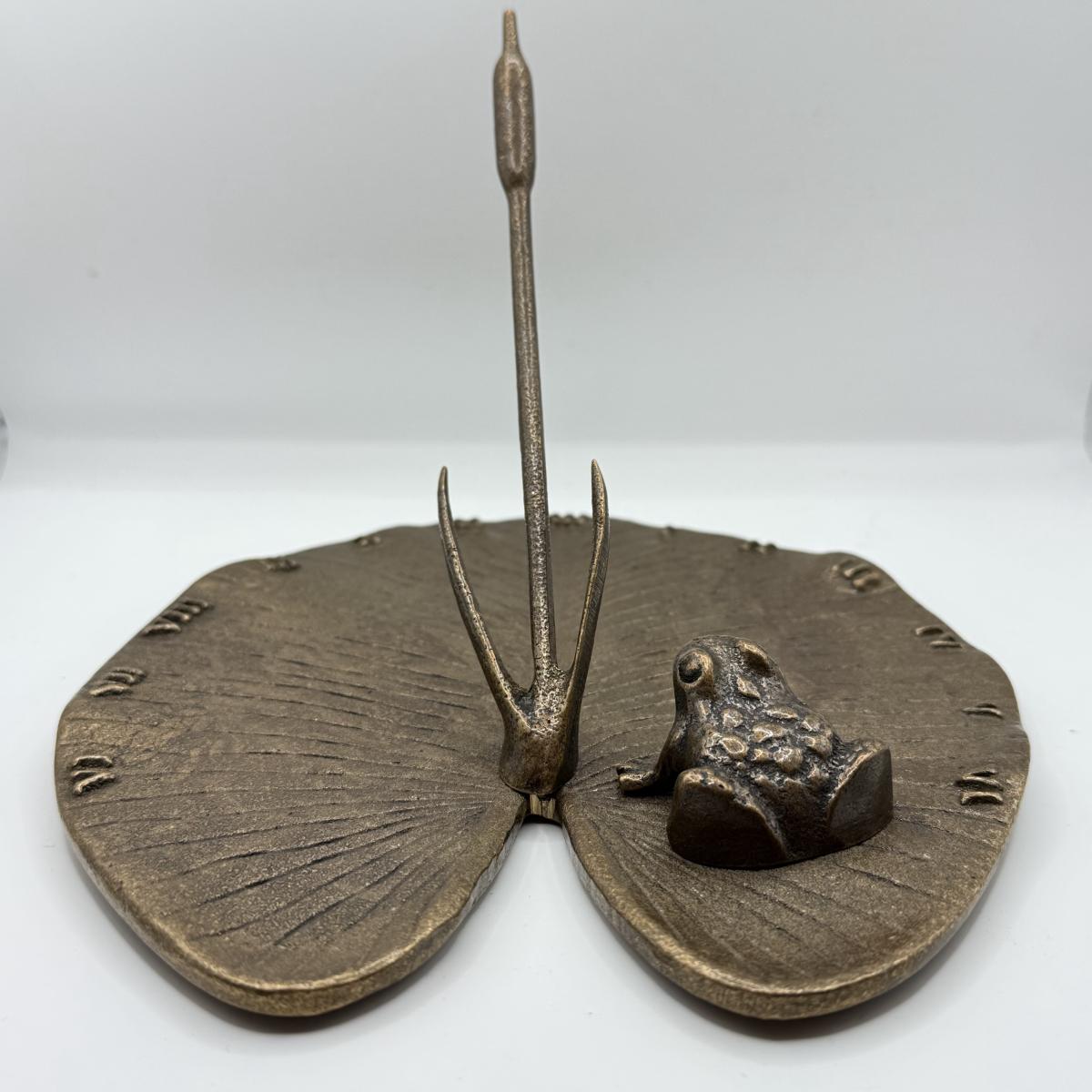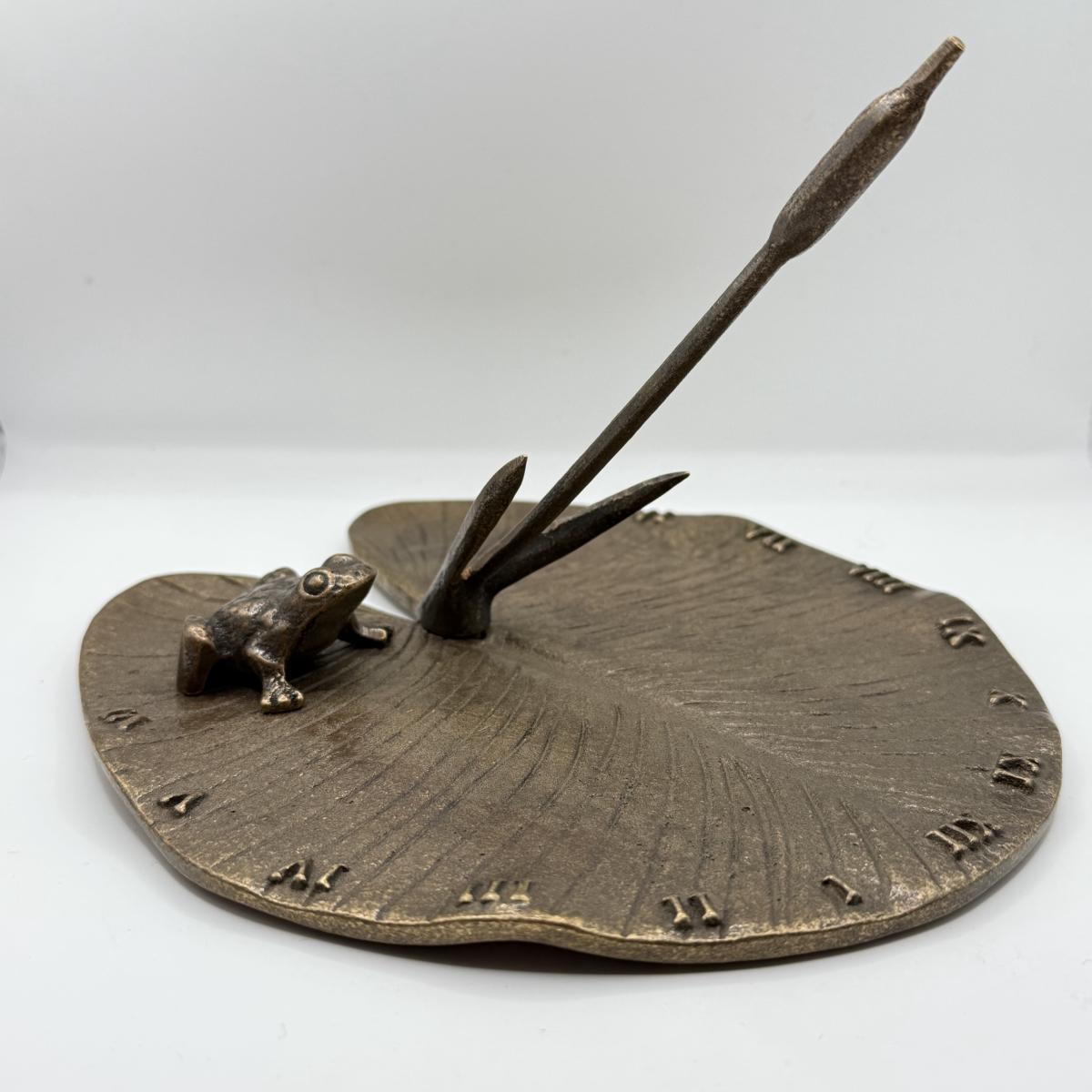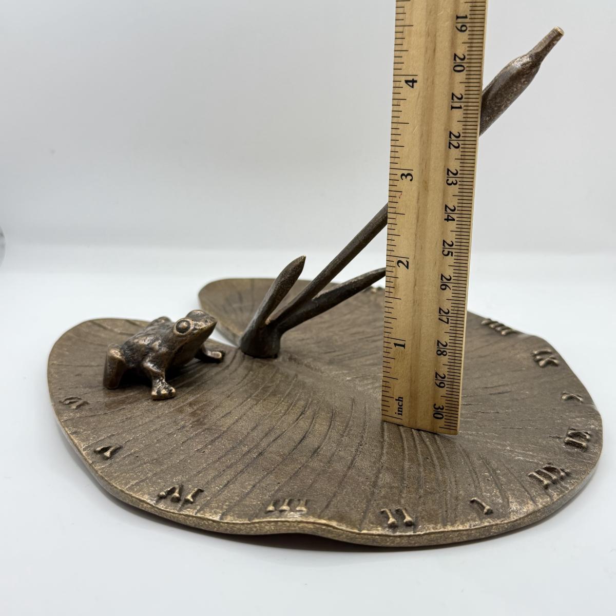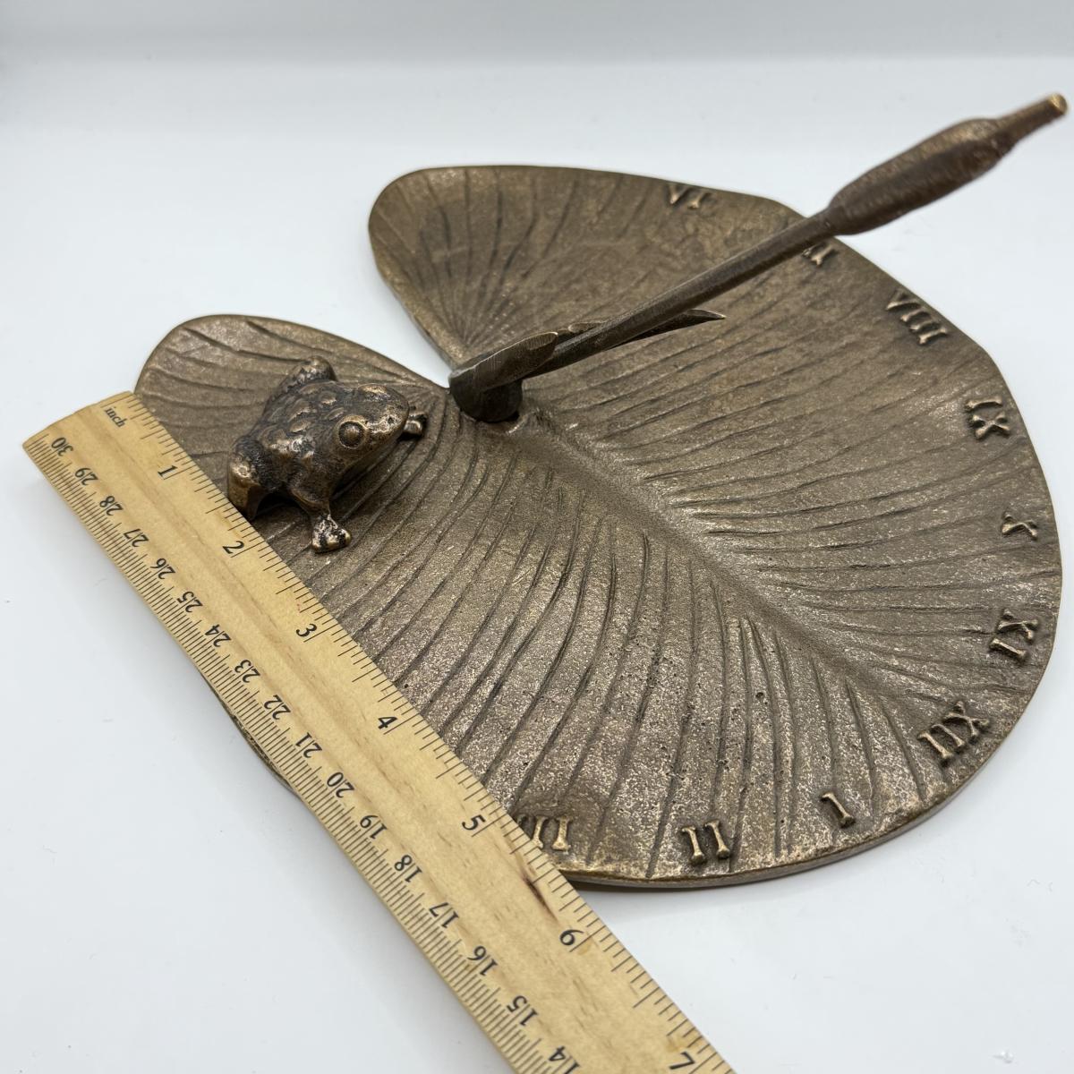 LOT 19L: 1986 White Swan Brass Lily Pad Sun Dial w/ Cattail & Frog